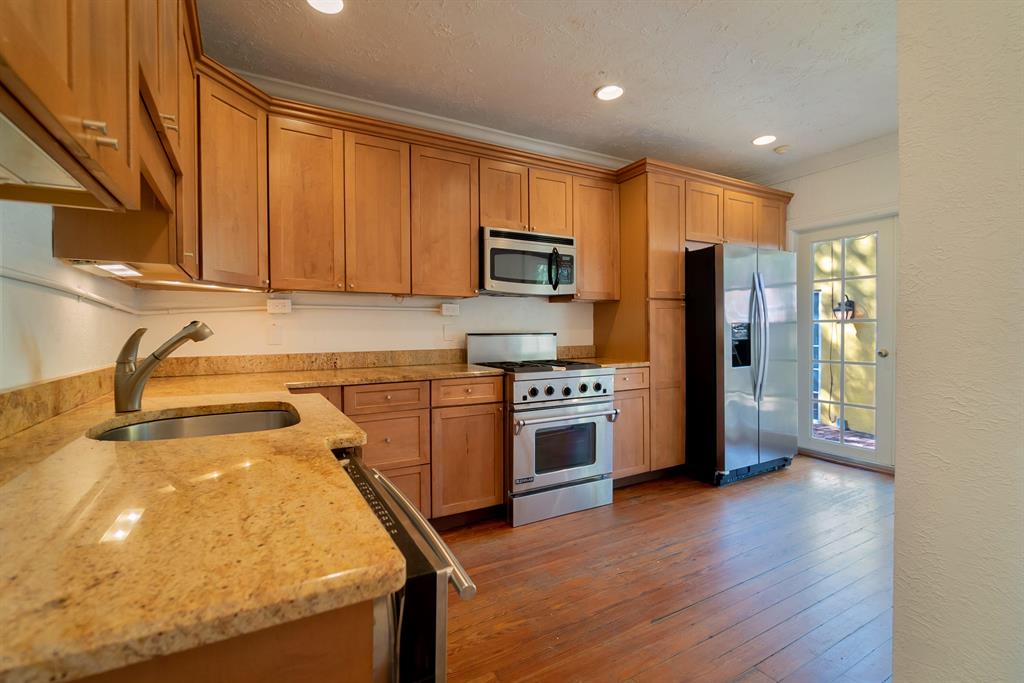 Main House is a 2/1 and Cottage is 1/1 with private access. 1 STORY SPANISH STYLE HOME W/BEAUTIFUL HARDWOOD FLRS, UPDATED KITCHEN W/GRANITE CNTRS, STAINLESS STEEL APPL, WOOD CABINETS, FIREPLACE, DEN,DINING ROOM, FNCD YARD.