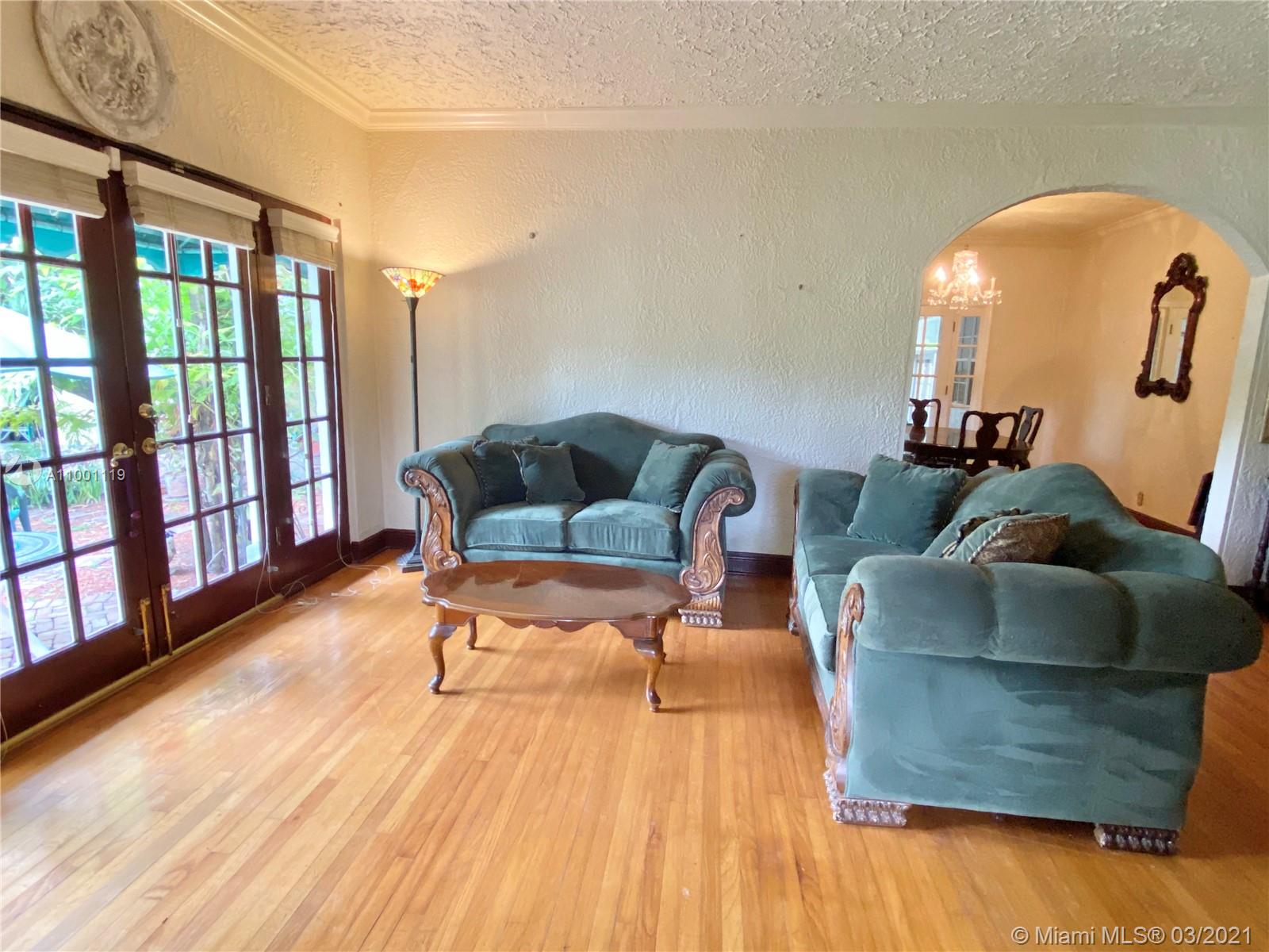 Charming 1925 Old Spanish featuring 3 Bed/2 Bath, 2 office/dens plus 1 car attached garage. Property boasts 2400 sf of living space on a 10,000 sf lot. Located just off Lejeune Road, between Coral Way & Bird Road, this home is ready for a visionary to turn this gem into a masterpiece. With "Old World Charm" galore this home was built in an L shape with lots of French windows & doors facing a wonderful courtyard perfect for outdoor entertaining, relaxing with nature during your morning coffee or enjoying a peaceful evening with a glass of wine. This home is perfect for those wanting to be close to the famed Miracle Mile in the heart of Coral Gables, filled with high end boutiques and fine dining.