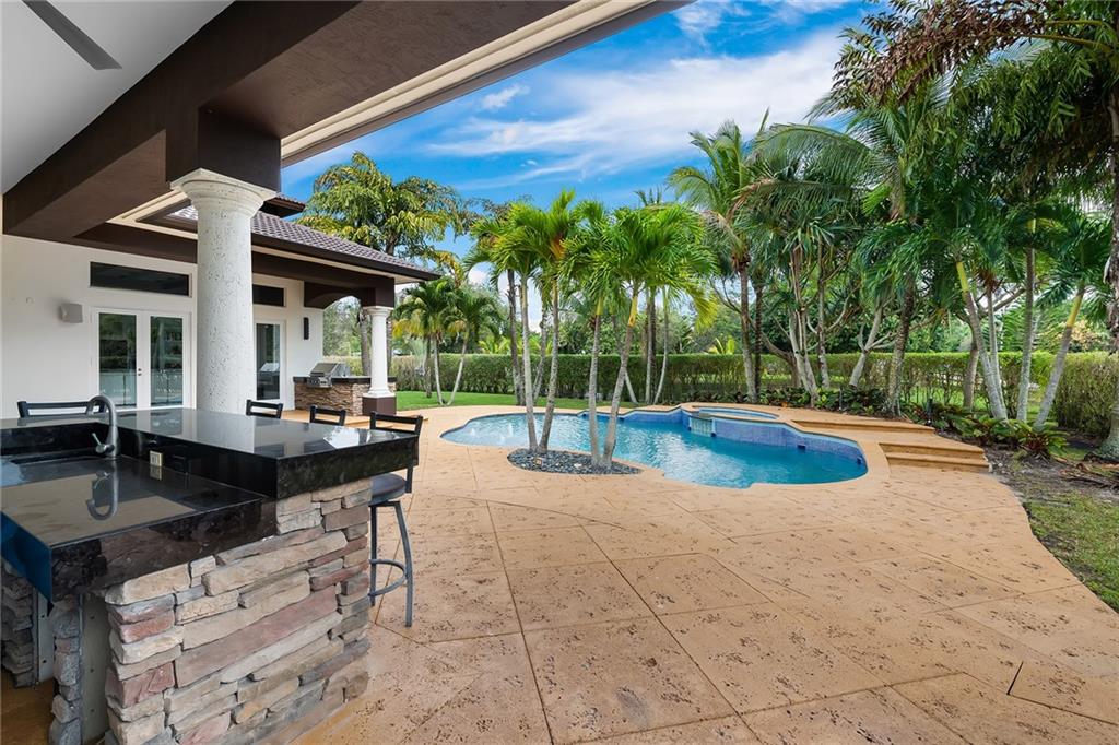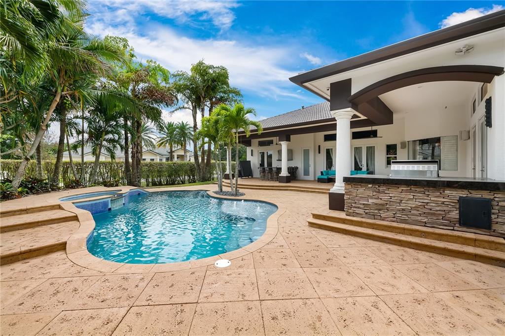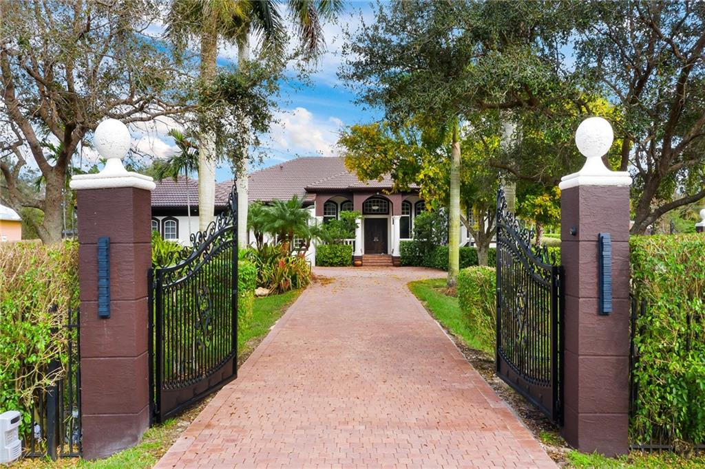 Newly updated 5 bed, 4 bath estate home on highly desirable corner lot w/ private gated entry in Plantation Acres! This one-of-a-kind home sits on a builders acre & features an entertainer's dream backyard w/ heated custom pool, paver patio, summer kitchen w/ Viking BBQ, sep wet bar & TV area! Step into your open concept home w/ brand new chef's kitchen w/ oversized island, quartz counters & 2020 Thermador appliances incl. 2 wine fridges! Spacious master w/ walk-in closets & brand new master bath w/ dual vanities, sep tub & steam shower! Upgrades galore incl. impact windows & doors, fully automated alarm system, LED ext. lighting, custom stone wall in living rm & much more! 8 camera system, custom stone flooring, impact windows, oversized crown molding, custom tray ceilings and more!