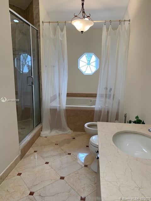 WATERFRONT! Watch $$$$ Yachts go by from your private master suite balcony! Beautiful updated home in guard gated Golden Pointe. Updated throughout with porcelain floors. Updated marble bathrooms. Master suite has in-suite bath with marble and a Jacuzzi tub, walk-in closet plus additional large closet, and private balcony overlooking the intracoastal and canal. House has 7 large closets! New custom eat-in kitchen with granite and SS appliances and custom arch opening that goes into dining room. Patio with private spa overlooking the canal that has new pump and new heater. Guard gated community with pool. Jogging path behind the home that leads to a beautiful marina and shops, restaurants, fitness. Walk to houses of worship. Close to Aventura Mall, Close to beaches.