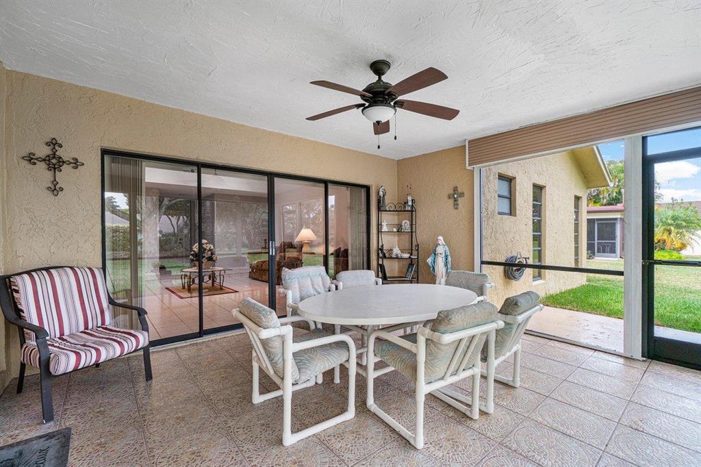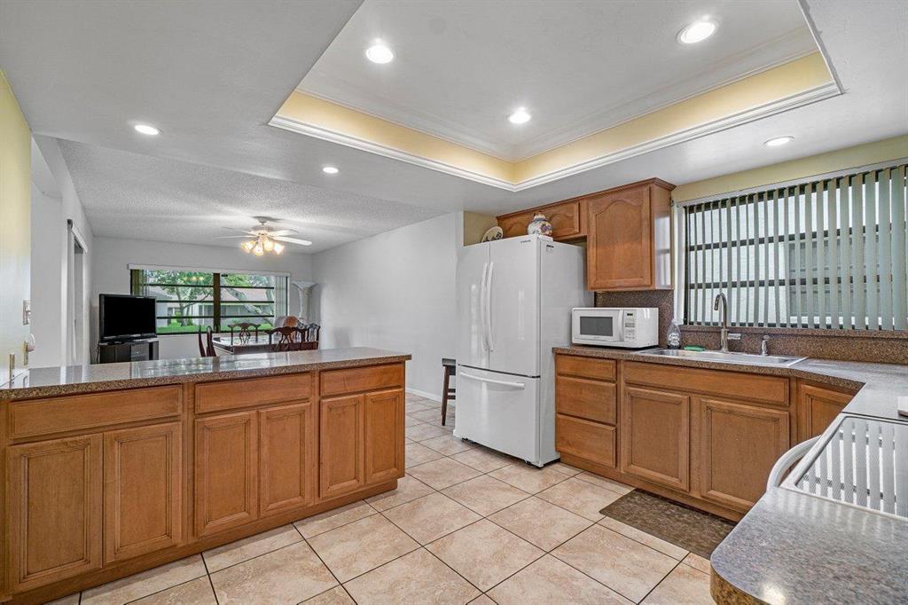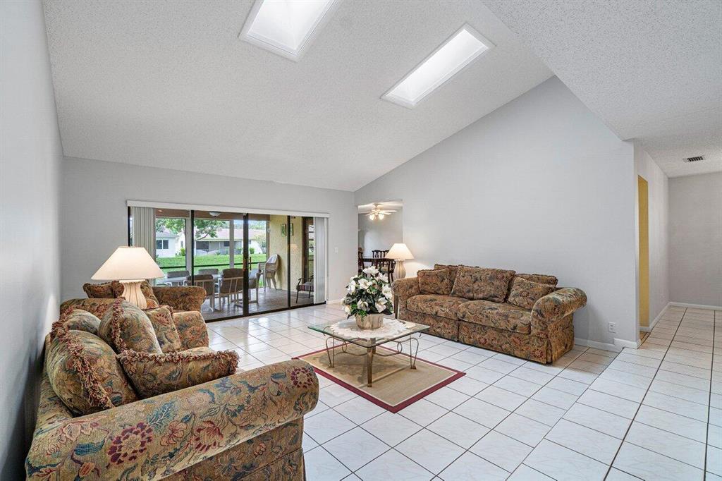 Brand new main roof, flat roof and skylights! Just installed. 55+ Single family home on a park view lot! 2 car garage. Greenbriar is a well maintained. low maintenance fee community with tennis courts and clubhouse (with pool) located in Boca Chase. Ceramic tile throughout. Large screened and tiled patio with a beautiful view. Eastern exposure in back for those shady afternoons. Updates include newer: Water Heater, Refrigerator, Cook Top Range/Oven, 4 ton A/C in 2014, Alarm system! Motion/light censored detectors in front & back of house! Whole interior of home freshly painted! Do not miss out on this one!