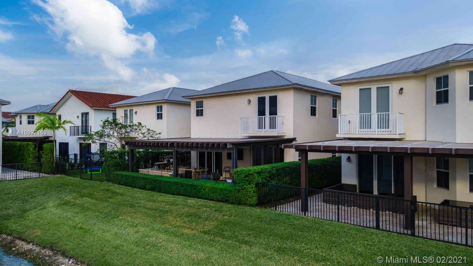 This luxurious contemporary waterfront Single-family home has been fully upgraded to create the wow factor. Built in 2014, this 5 bed/5 bath floor plan features double height entrance, high ceilings, large format porcelain tile floors in living areas, wood flooring in the second floors; modern floating stairs, exposed wine cellar, and fully upgraded 2 car garage.This spectacular backyard features an extended pergola with electrical shades, and an amazing bbq center island with teppanyaki grill & refrigerator built by LuxaPatio. This community offers a children's play area, fully equipped fitness center, clubhouse overlooking the community pool, saunas and the lake. Next to A+ School, in the desirable gated community Vintage Estates. At the city of Doral/Miami-Dade