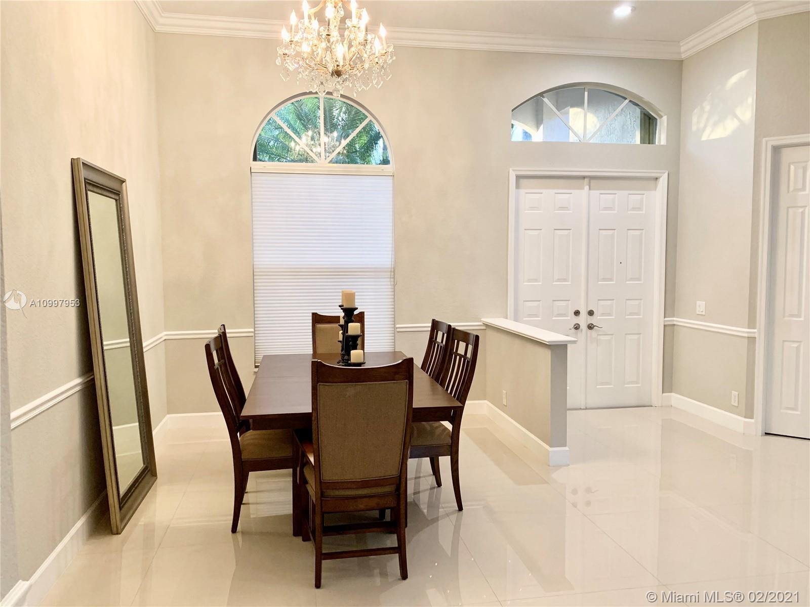 Beautiful home in Weston Hills, with spacious 1 story living, great pool in ample and very private backyard, tri-split bedroom design, 5th room is a den by the front door and next to the master bedroom, 2 big walk-in closets in the master bedroom. New porcelain floors throughout the whole house, new quartz counter top, completely remodeled cabana bathroom and guest bathroom, new shower in master bathroom, new toilets, tall ceilings, new LED ceiling lights, laundry room with sink; two year old stainless steel appliances. New diamondbrite in pool. Freshly painted. New accordion hurricane shutters. A must see!