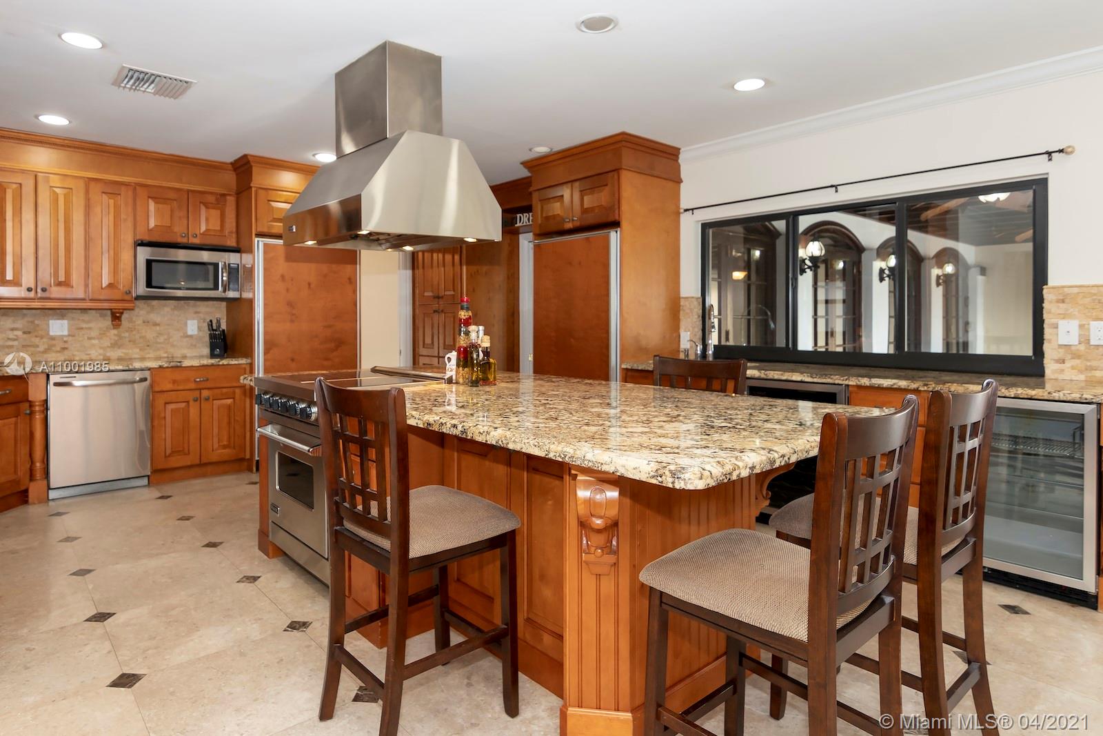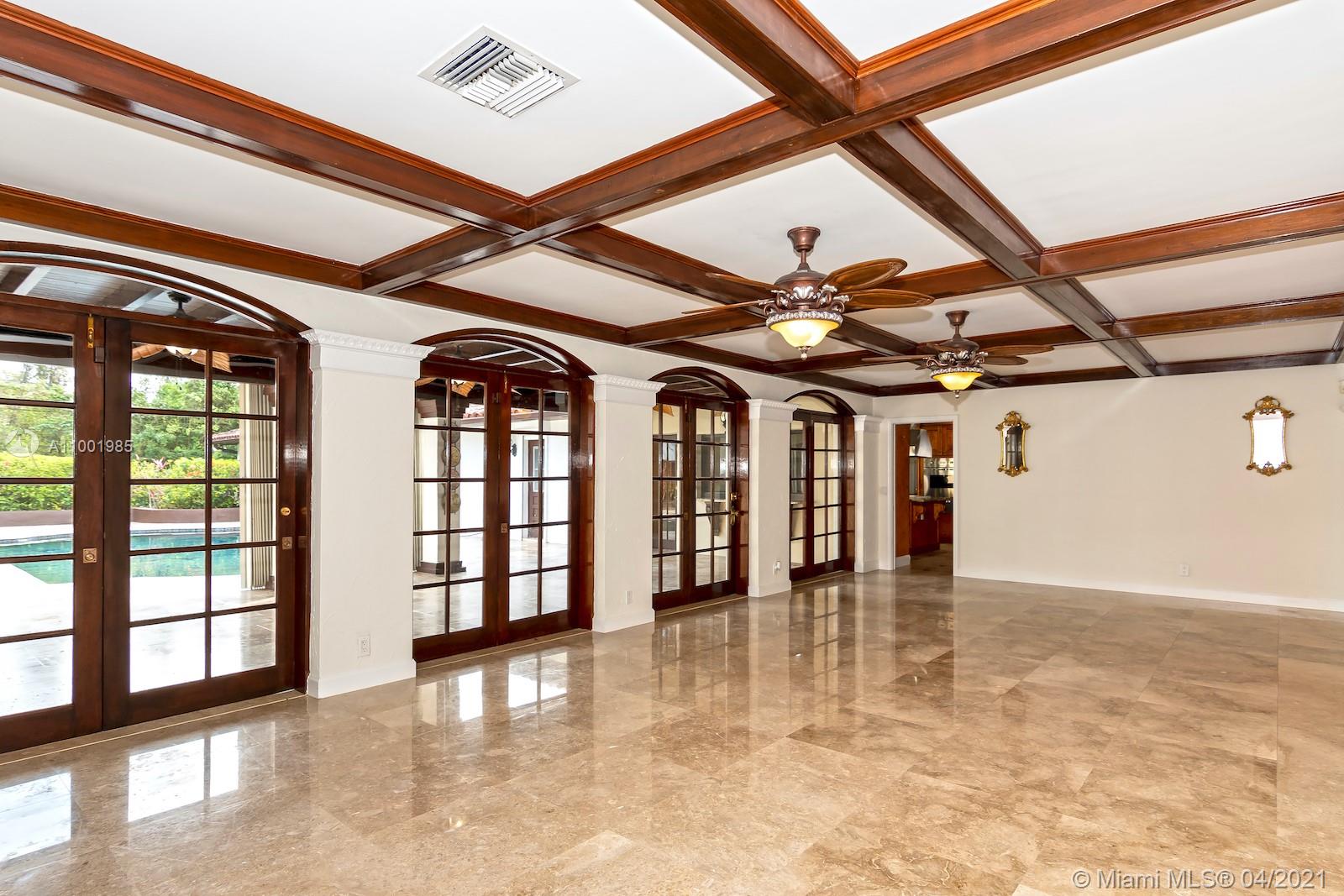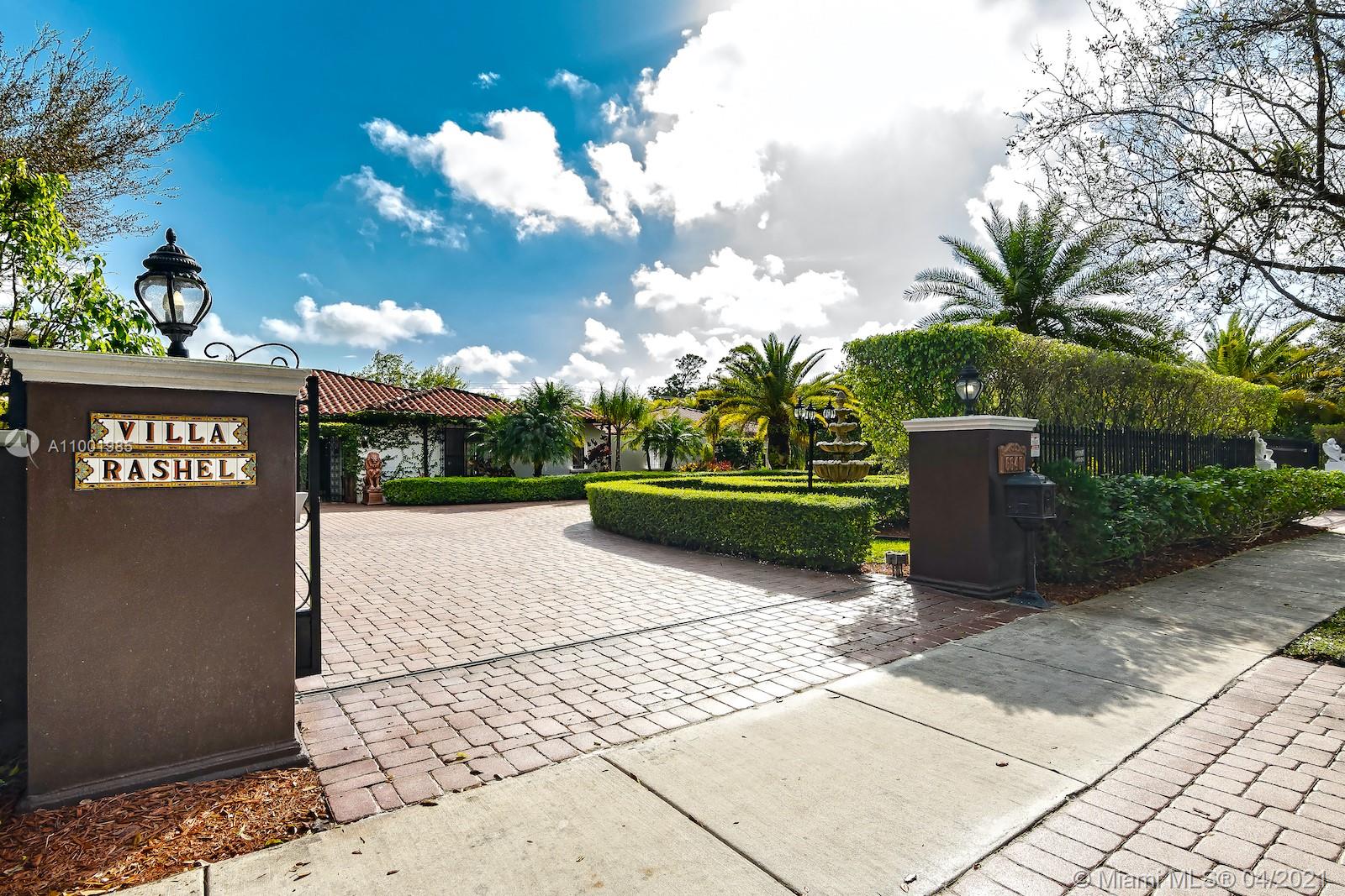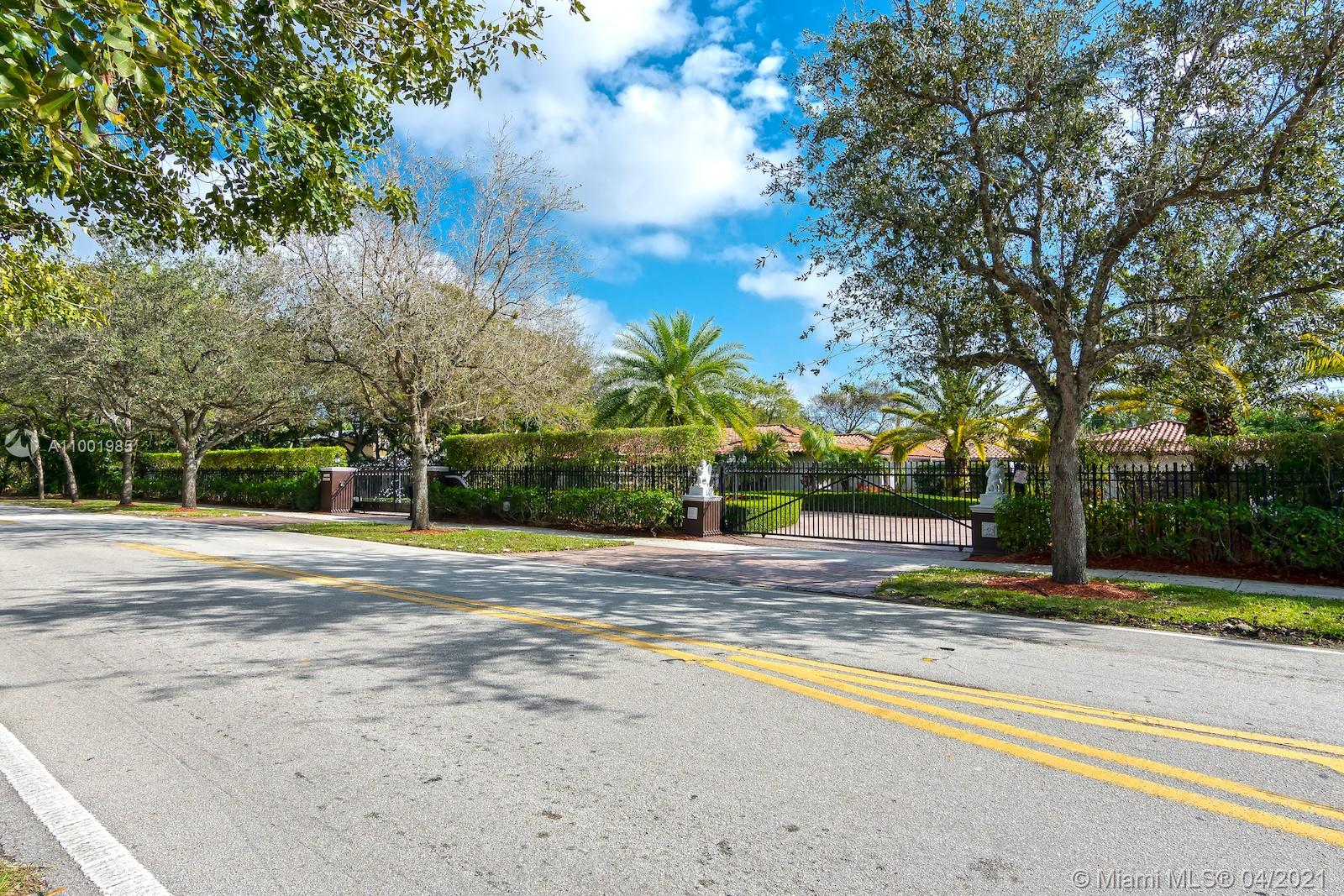 This amazing and secluded one story home located in the sought after N. Pinecrest area, 7,162 SqFt with a total of 6 bedrooms and 6 baths. A perfect venue for gatherings and celebrations, this gated gem is one of a kind. House can be use as two separate wings each with a master bedroom around a large saltwater pool. Large gourmet kitchen with subzero and Viking appliances. Handcrafted moldings, French doors, impact windows, room for a tennis court and space for a large boat. Enjoy a beautiful sunset and tropical breeze