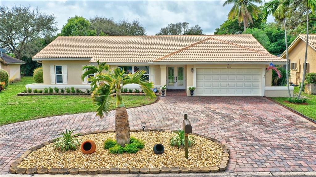 Welcome home to TROPICAL PARADISE! This 4/2 POOL HOME features split bedrooms for privacy. FULL IMPACT WINDOWS & DOORS. NO HOA! Enter into your foyer and notice the ceramic floors w/ mosiac medalion and SOARING CEILINGS. Lots of NATURAL LIGHT. Large living room. Dining room opens to patio for family gatherings. Entertaining is a BREEZE in your NEW KITCHEN boasting SAMSUNG S/S (fingerprint resistant) appliances, GRANITE counters w/ full backsplash, undermount sink and 36" coffee cabinets all flowing to your AMAZING outdoor space for guests. Take a dip in the sparkling, dome screened pool with big patio. Relax in the Spacious master suite w/ vaulted ceilings, split vanities. & cabana door. NEW A/C, NEW water heater, NEW paver circular dway. 2 CG! NEWER barrel tile roof. HUGE YARD. NO HOA