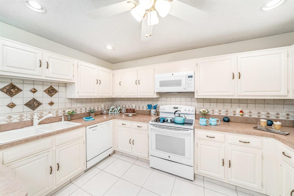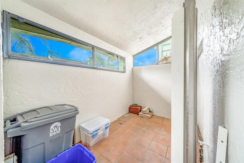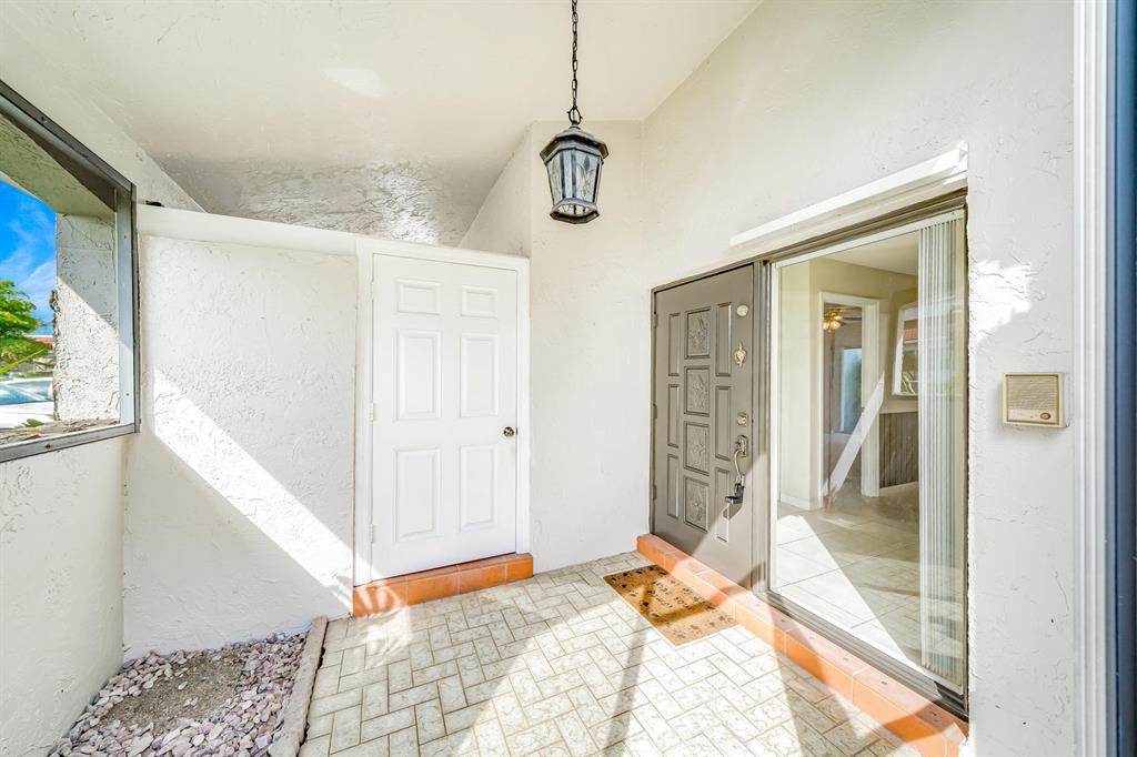 Clean & neutral townhome within walking distance to shopping, schools, parks, & houses of worship. Two Master Suites! One up/One down plus large loft for office/den w/huge closet that could easily be converted into 3rd bedroom. Open kitchen w/snack bar to eat in area and living room. Spacious with 2-story high ceiling living area...Private w/nice landscaping is the back courtyard with retractable Sunbrella awning. Balcony off master suite upstairs. Covered screened in porch/Entryway/large separate storage space plus big storage area under stairs. Inside laundry. Accordion and panel hurricane shutters. TWO parking spots + guest parking. Community Pool. LOW HOA fee. All ages welcome. Pet friendly. Walking distance to Del Prado A+ school and houses of Worship.