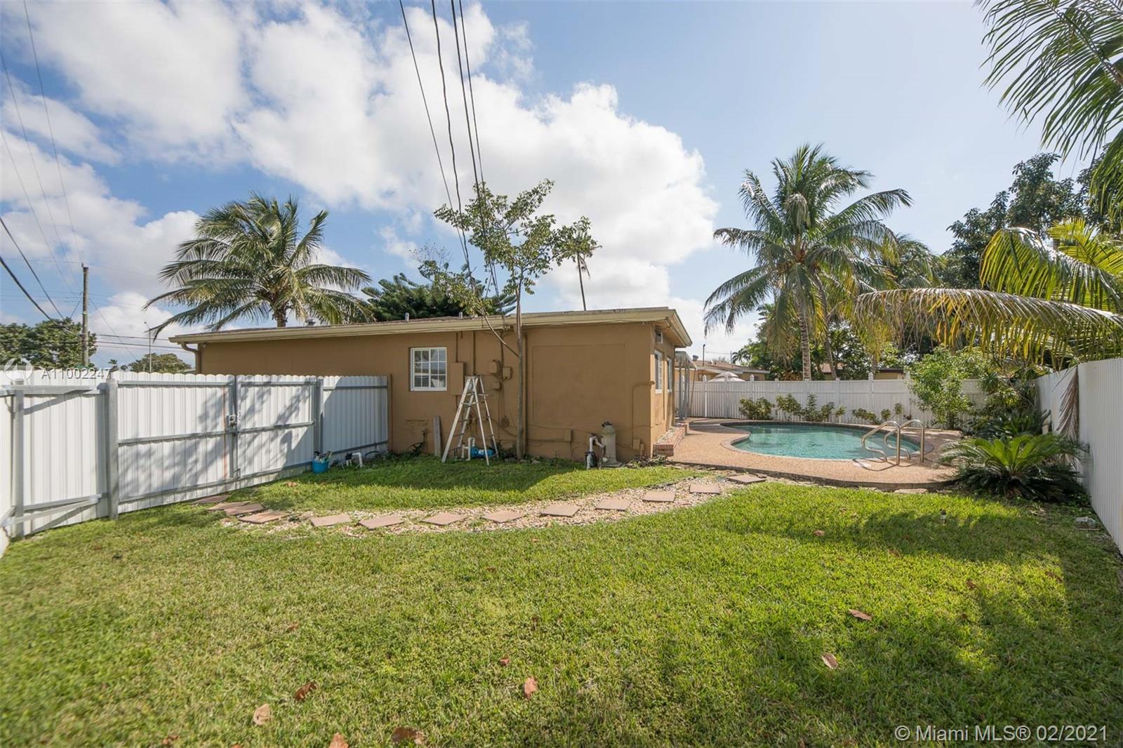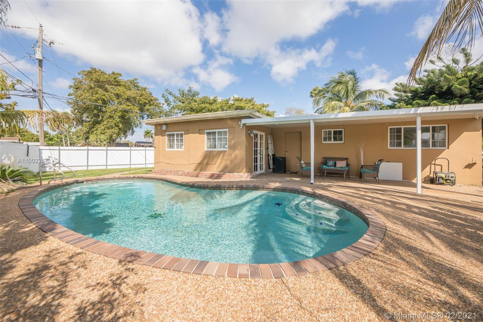 Beautiful 2/2 Ranch in the heart of Miramar w/ a Pool! Home features 2 Spacious Bedrooms and 2 Bathrooms, Spacious Kitchen with Stainless Steel Appliances, Antique Decorative Fireplace in Living Room, Hardwoods Floors throughout and 1 Car Garage. Enjoy the Spacious Fenced Backyard and Pool, perfect for entertaining.