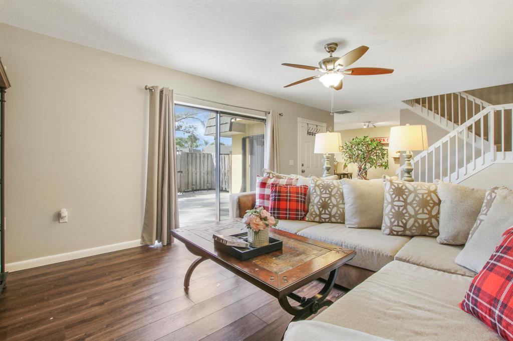 This 2 bedroom, 2.5 bath DiVosta Townhouse has been beautifully updated with all new flooring, granite countertops, stainless steal appliances, double stainless steal sink and nice lighting and fan fixtures. Both the master suites offer ample closet space and en-suite full bath. The downstairs bathroom has a nice newer LG full-size washer & dryer. Other notable features include large fenced private patio nicely landscaped, 2 assigned parking spaces in addition to close guest parking spots. The property is in walking distance to the park, playground, volleyball, handball, tennis, basketball, pool, hot tub, picnic areas, and more!
