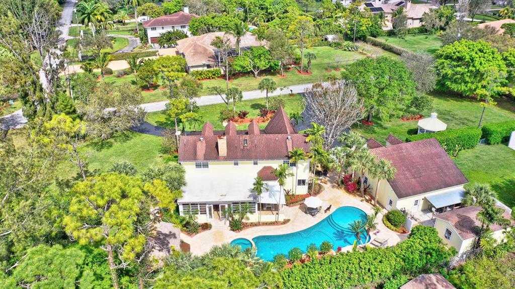 Outstanding Key West Style home with 5,000 SF of Living area, situated on nearly 2 acres in Pine Tree Estates. Wood Floors thru out the first floor area with remodeled kitchen including propane cooktop, oven and over sized refrigerator/Freezer. Huge Heated Salt water pool with spa and beach entry. Large Patio area with Fire Pit and grill area along with a Seminole built Tiki Hut with wet bar, two refrigerators, large built in grill, bar stools, large TV and seating area. Guest house has large open area including full kitchen, bedroom and full bath. Large 3 car garage with laundry room with two sets of front loading washer and dryers. House is wired for Generator with slab and Propane in ground. Huge property including Gazebo with power, large workshop, fruit trees galore.