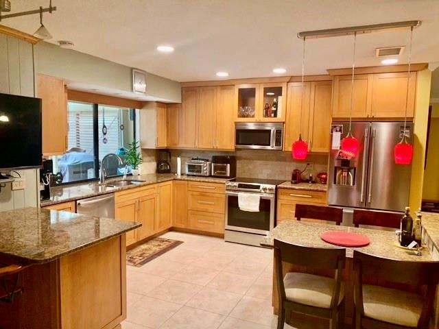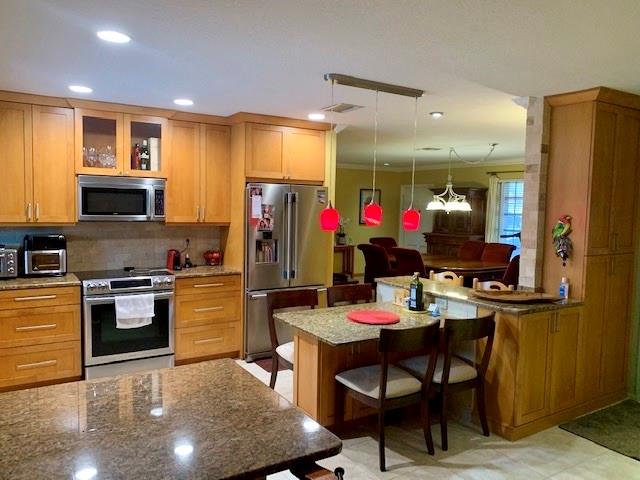 Lovely Hollywood Hills home with over 2,100 sq. ft. of living space. Close to world class shopping, restaurants and beaches. The interior boast soft close wood cabinetry, granite counter tops, stainless steel appliances, kitchen pass through window to a 600 sq. ft. lanai over looking pool, eat in kitchen, tile and engineered wood floors, lots of built ins for storage, newer ac and electrical box. Pool decking has been newly redone with stamped concrete and domed screening over pool and lanai for bug free outdoor entertaining. Enjoy the backstreet entrance with a newly installed sliding gate where you can park an extra vehicle on a concrete slab under a gazebo. You will also find a large air conditioned storage shed with cabinets and a custom build Aviary bird cage under a oak pergola.