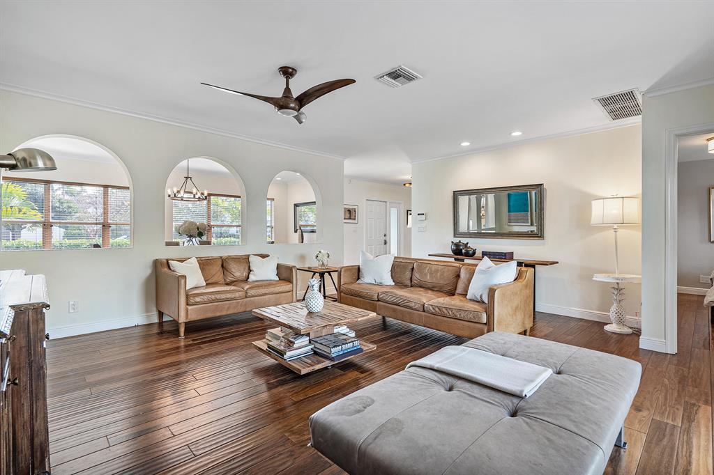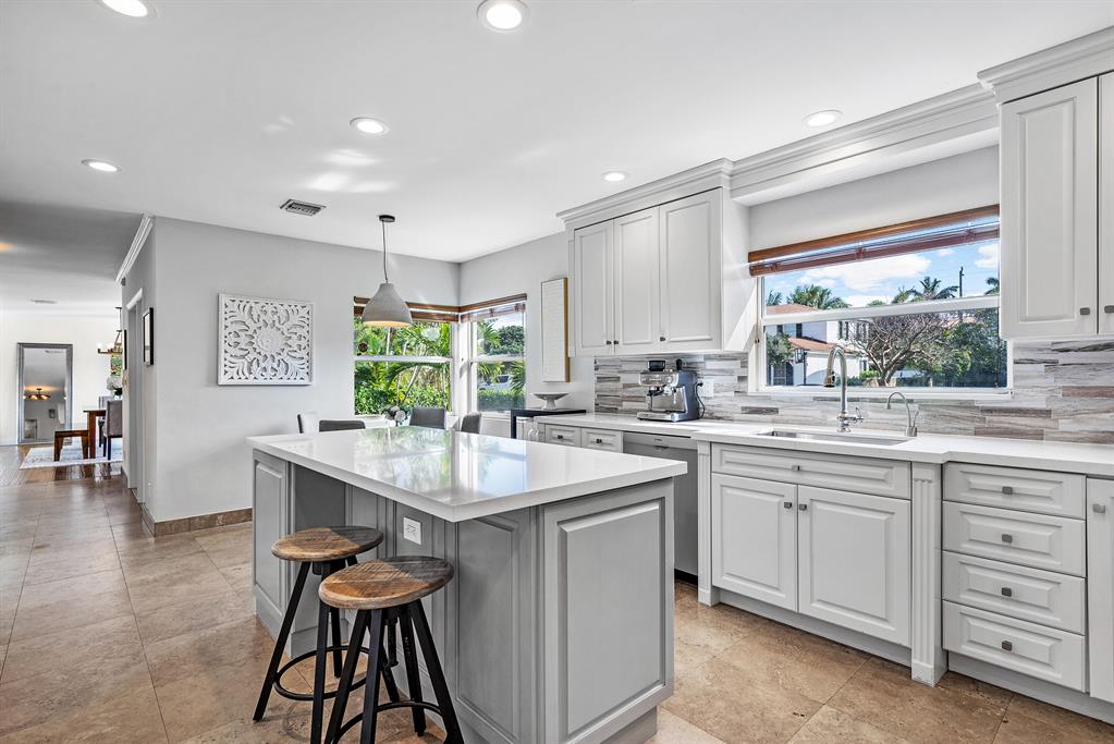 It's all about the location! This fully renovated home is just steps away from S Flagler Drive and the intracoastal waterfront in the sought-after SoSo district; South of Southern. From the outstanding kitchen and bathrooms to the floors, impact glass throughout, stunning landscape and backyard oasis; this beautifully renovated home has been updated with every detail attended to. The home features a 2-car garage, walk-in closets in every bedroom, fully fenced w/ full privacy hedge, heated custom pool, ample sized totally private backyard for entertaining and expansive front yard with thoughtful landscape design. One block to riding your bike or walking along intracoastal off S Flagler, minutes to the best restaurants, stores, and entertainment the area offers, Palm Beach is one short