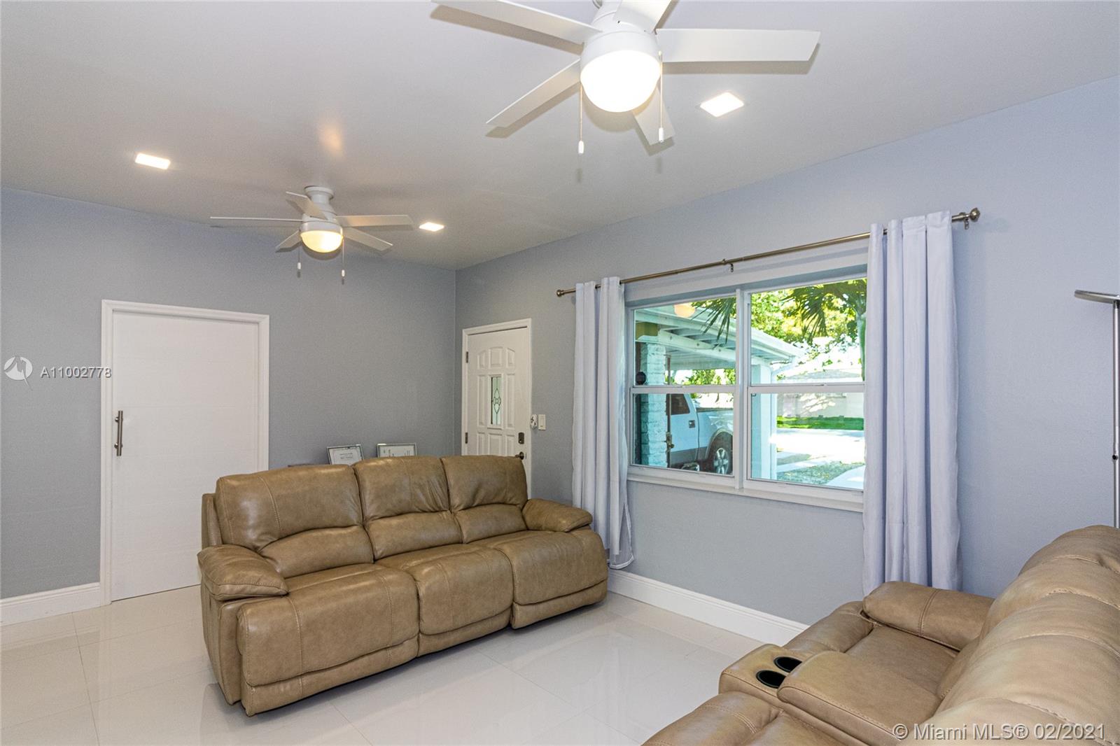 COMPLETELLY AND TASTEFULLY RENOVATED BRIGHT HOME. 3 BEDROOMS, 3 FULL BATHS. THE THIRD BEDROOM IS ANOTHER SUITE, WITH PRIVATE ENTRANCE, PERFECT FOR IN-LAWS, GUESTS, OR A TEENAGER. ALL WHITE 36" TILES THROUGH OUT, HURRICANE PROOF WINDOWS, SOFT CLOSE KITCHEN, BATHS, AND TOILETS, SPACIOUS LAUNDRY ROOM, GREAT BACK YARD W/ ELECTRONIC GATE, FRUIT TREES, OUTSIDE SHOWER, ROOM TO PARK 2 CARS, OR A BOAT, OR KIDS POOL, AND A 10 X 10 SHED. ALL AROUND GUTTER ROOF, NEW A/C, 2 NEW TANKLESS WATER HEATERS. BIG BONUS: LOREX SECURITY CAMERAS W/PHONE APP, AND ECOBEE THERMOSTAT ALSO CONTROLED BY PHONE APP. EXCELLENT LOCATION: 1 MILE FROM I 95, 1 1/2 MILES FROM THE PALMETTO AND TURNIPIKE, 1/2 MILE FROM BARRY UNIVERSITY, ABOUT 20 MIN. FROM MIAMI BEACH. THIS IS THE PERFECT HOUSE FOR YOUR FAMILY AND WON'T LAST!