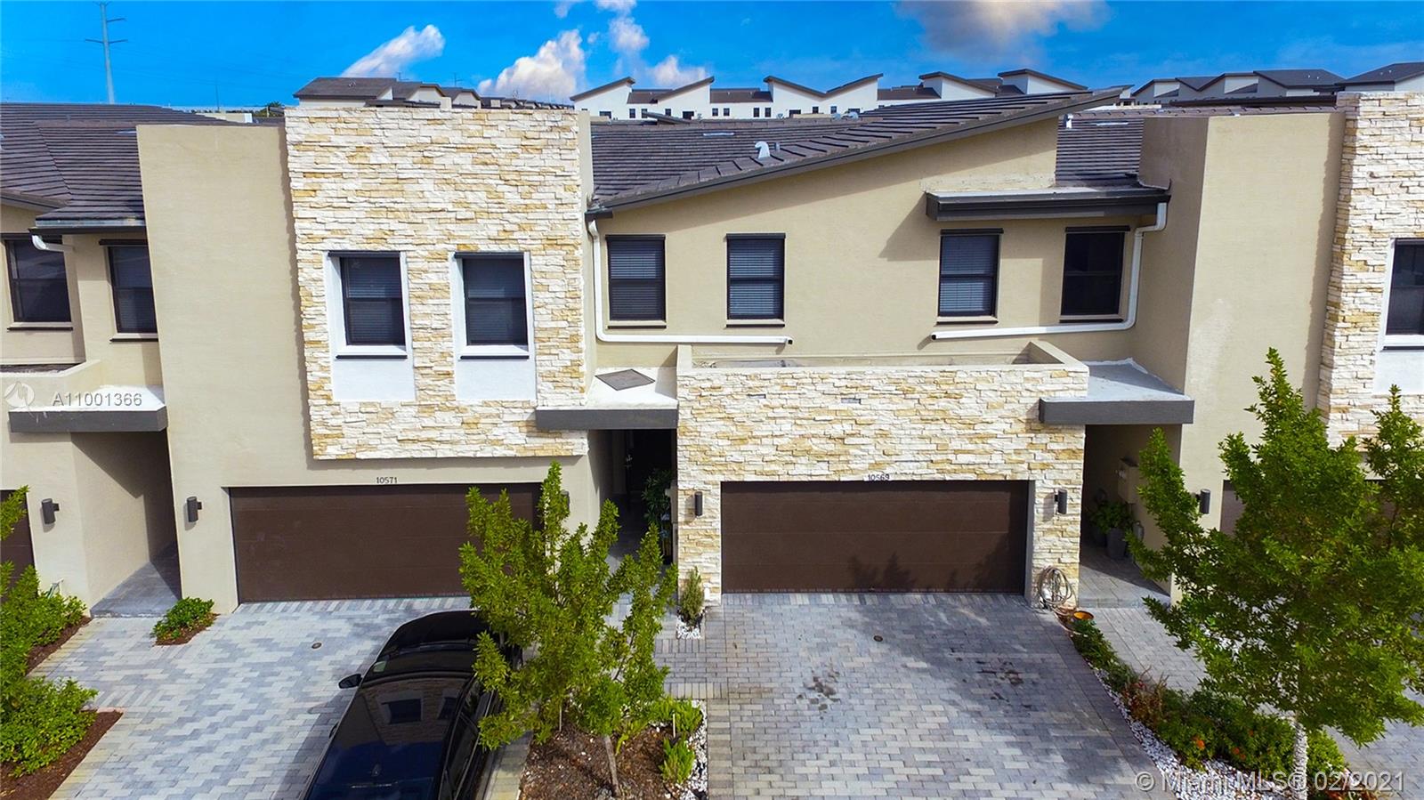 Amazing two stories townhouse in the beautiful gated community of summit in the heart of Doral. Modern architecture, concrete construction, fabulous modern kitchen with stainless steel appliances, open concept, 3 bedrooms, 2.5 bathrooms with ceramic floor on the first level and the second level. Stainless steel high end appliances, luxury finishes. This is a very cozy home with 4 parking garage spaces plus plenty of visitors parking. It has a modern community clubhouse with gym,pools and resort style, great schools.
