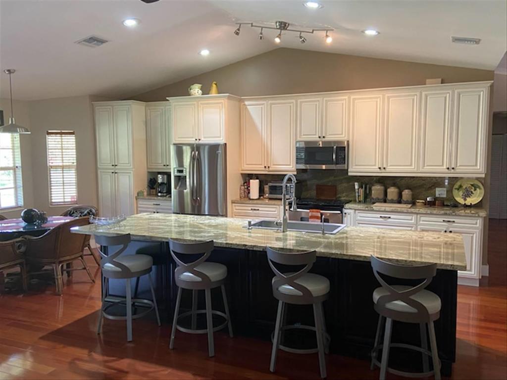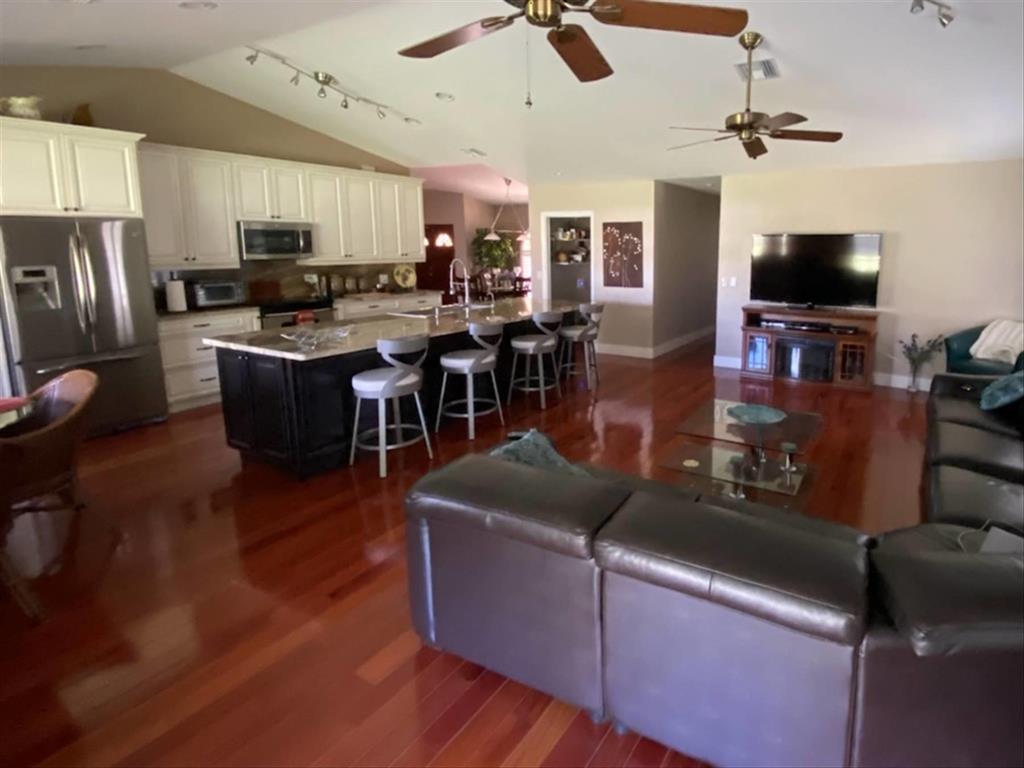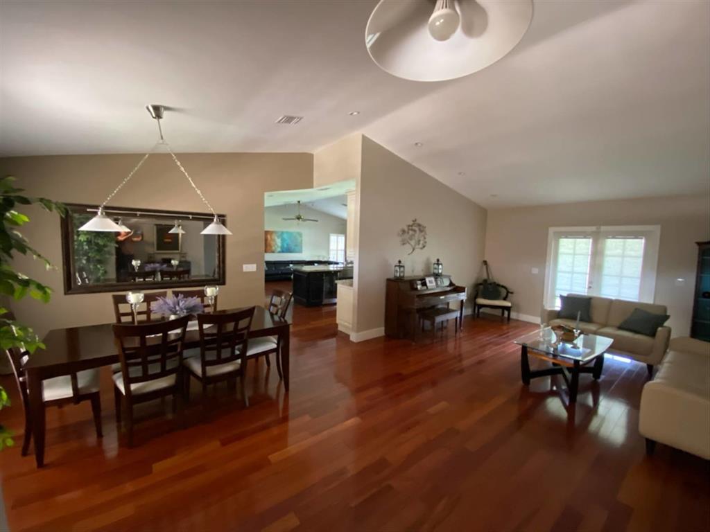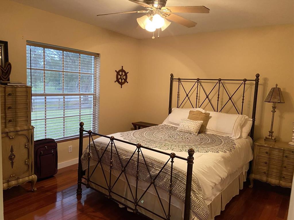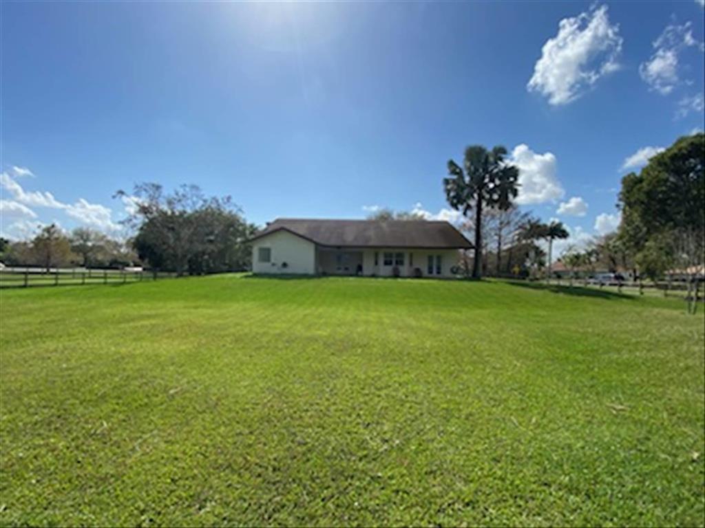 Beautifully renovated ranch style home on almost an acre, on a quiet street with cul-de-sac. Gourmet kitchen with granite counter tops, stainless steel appliances and wine refrigerator. Wood floors throughout, vaulted ceilings, plantation shutters. Split bedroom plan. Oak tree, cypress trees, and fruit trees. Property is full fenced. Yard is large and great for entertaining. Horses allowed. Fitted hurricane shutter panels for all windows and doors. Extremely low HOA and spacious, quiet neighborhood.