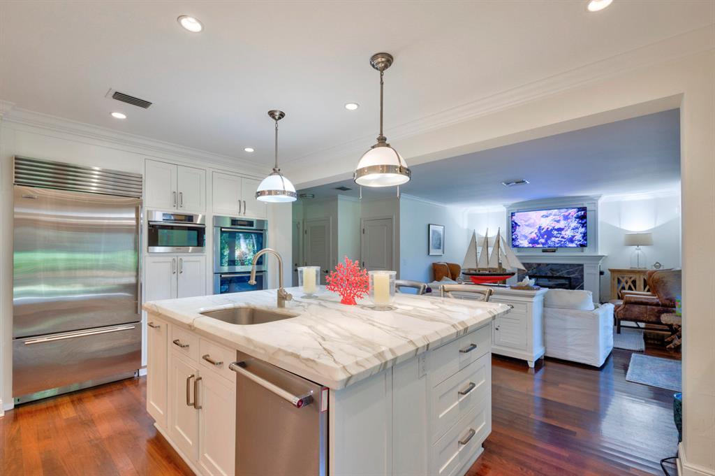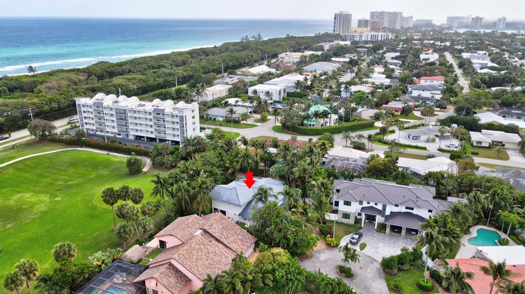 Absolutely beautiful furnished beach house located in the prestigious Sun and Surf neighborhood of East Boca. This home sits on an oversized lot on a quiet cul-de-sac and backs to Red Reef Executive Golf Course on A1A. Remodeled in 2017, features include Impact Glass windows and doors, gorgeous hardwood floors, vaulted wood ceilings, custom eat-in kitchen with Calacatta marble countertops and wolf and subzero appliances opening to a family room w/ fireplace. There are 2 bedrooms downstairs and Master and 2 additional upstairs. The Master has a morning bar, super large closets and a fabulous master bath. The Outdoor area is an entertainer's dream with tropical lush gardens, patios and terraces, Summer kitchen and a heated pool and spa.