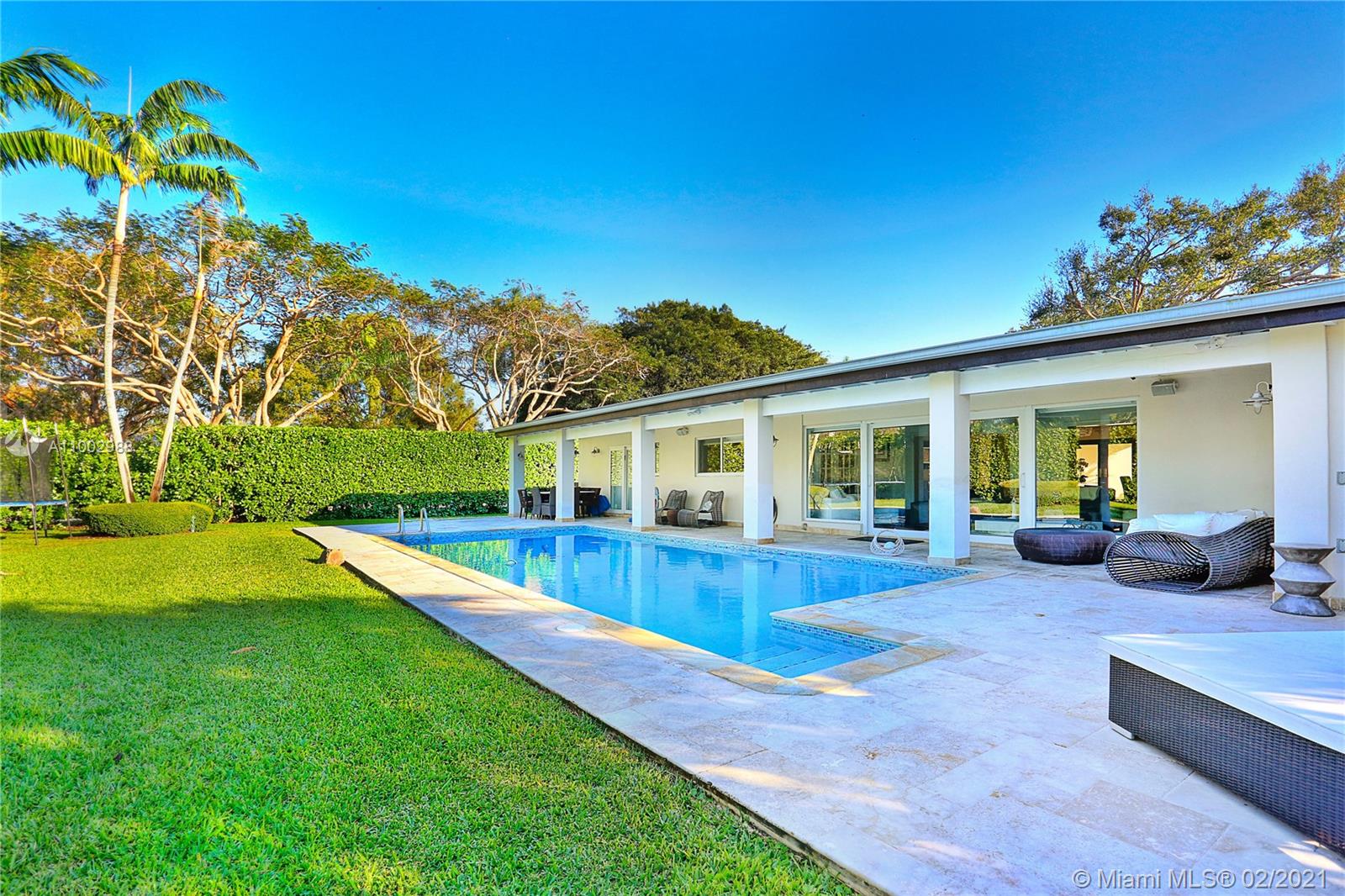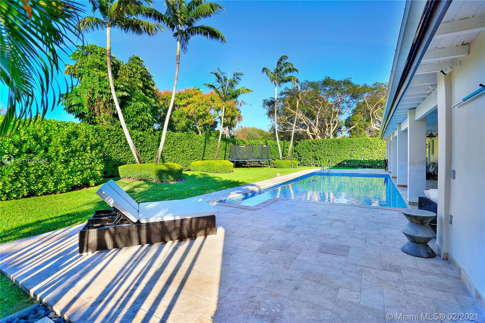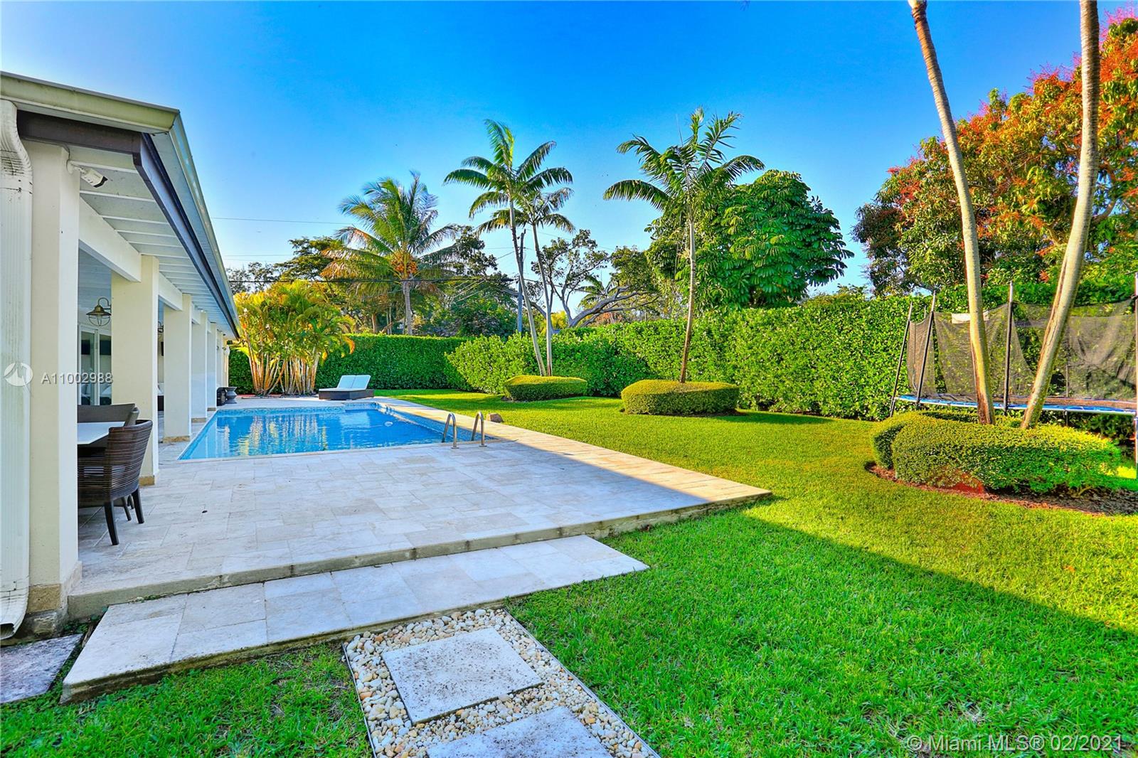 Chic, modern and spacious ranch style house ready to move-in on a stunning lush 16,988 sq ft corner lot in splendid Pinecrest. An oversized driveway with oak trees welcomes you to an updated 5 bedroom/4 full bath + den in a flowy split floorplan. Attractive features: great energy and natural light flows throughout the house with warm hardwood floors, impact windows and doors, a gourmet kitchen with s/s appliances incl double oven, separate laundry room and two-car port. The Master suite and bath designed with privacy in mind. The bedroom and full bath quarters all great sizes. Den opens to living room and connects to a bathroom. The family room feels it's part of the gorgeous patio overlooking the pool thanks to its wall-to-wall sliding glass doors perfect for relaxing and entertaining.