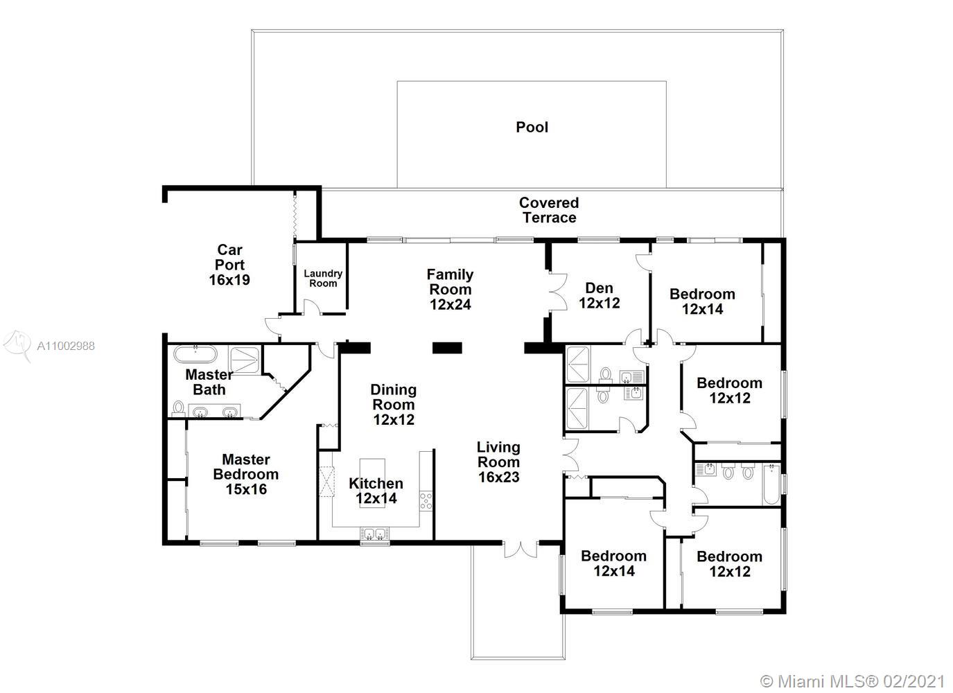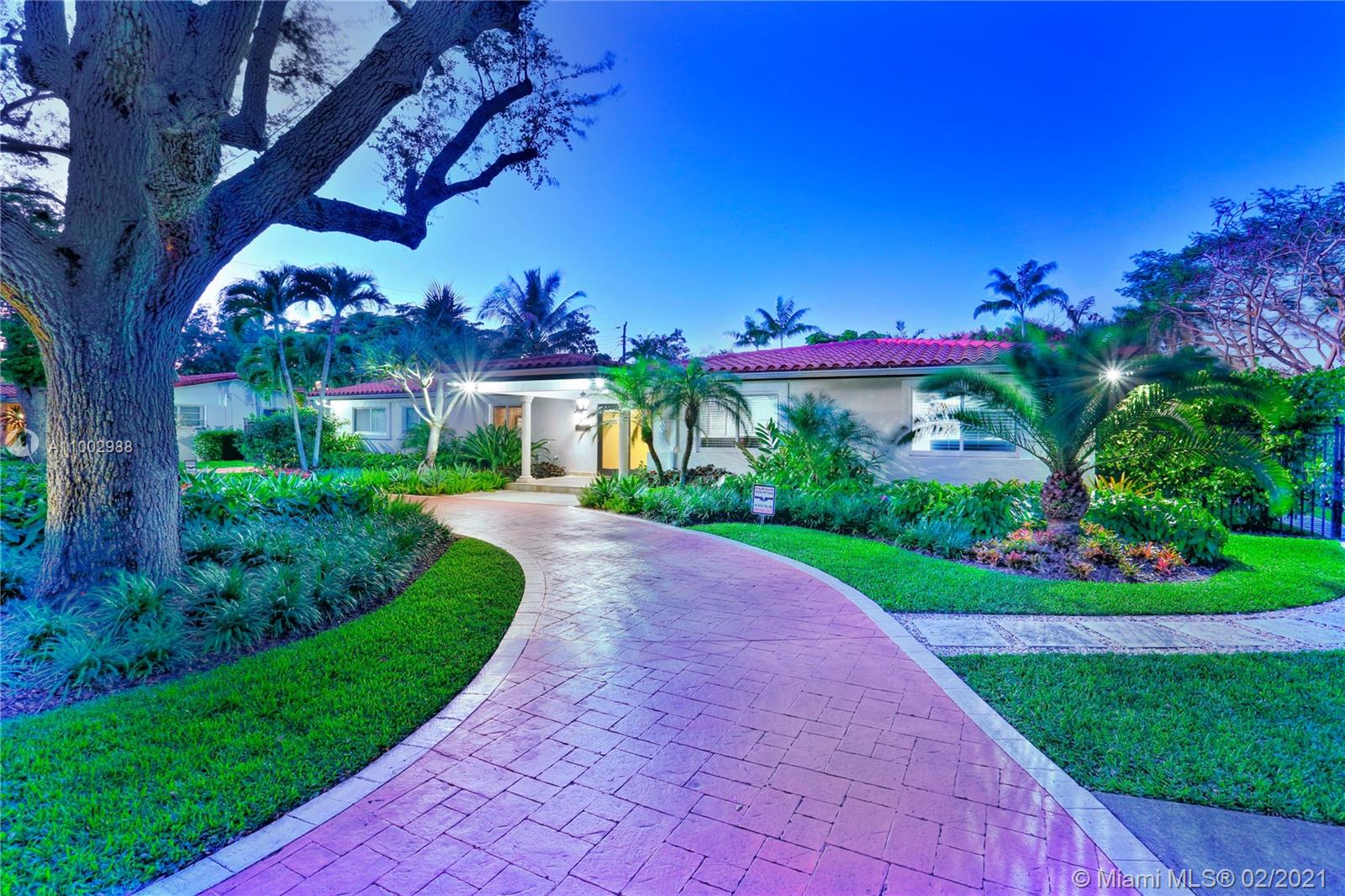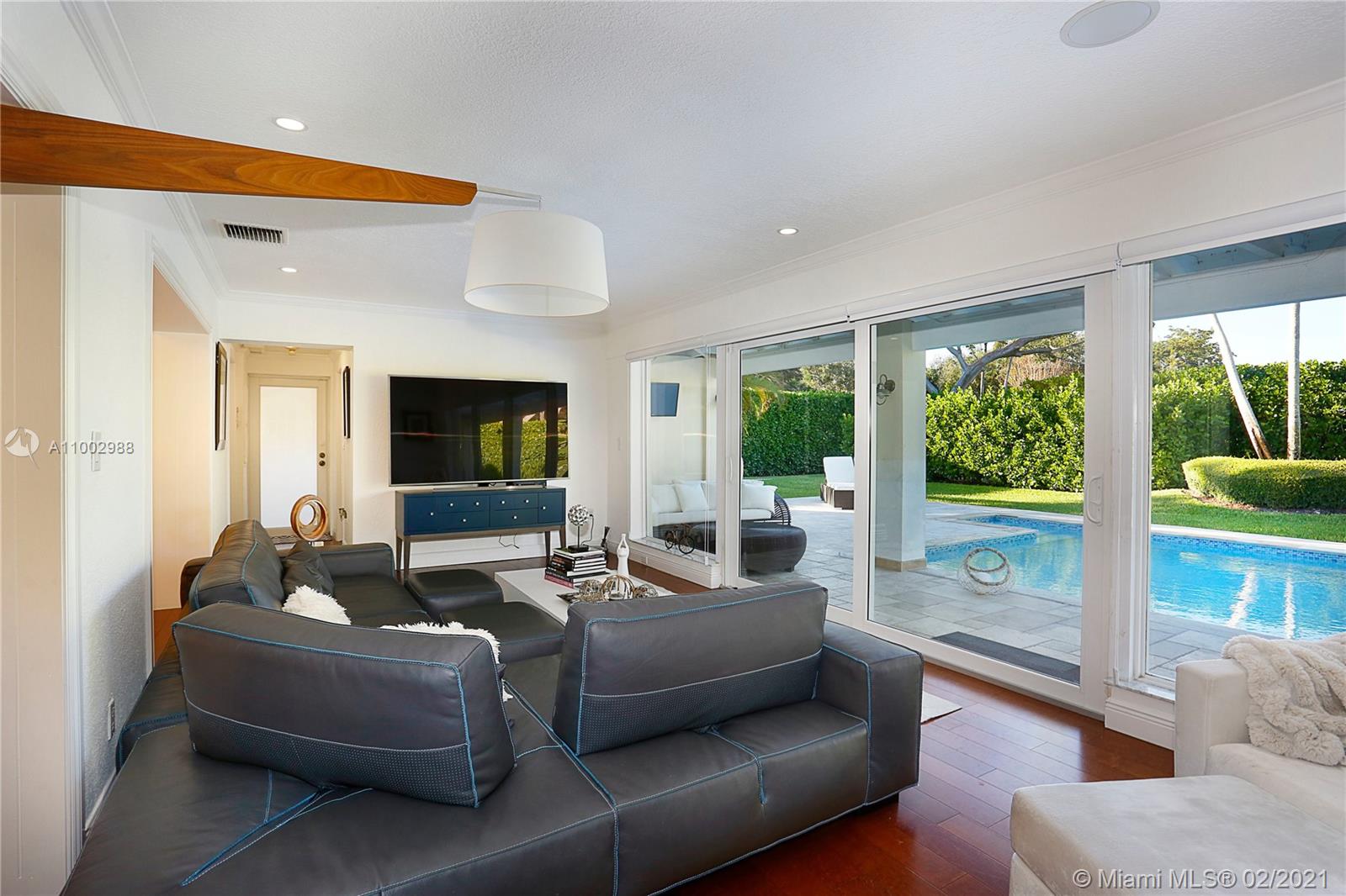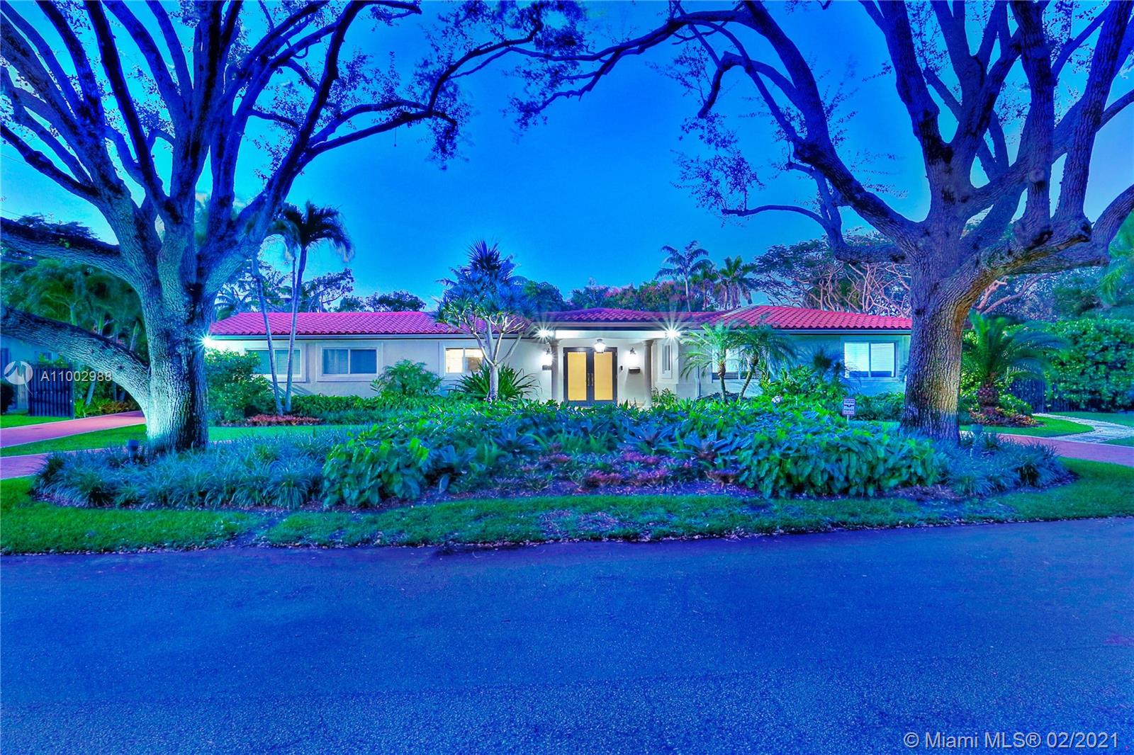 Chic, modern and spacious ranch style house ready to move-in on a stunning lush 16,988 sq ft corner lot in splendid Pinecrest. An oversized driveway with oak trees welcomes you to an updated 5 bedroom/4 full bath + den in a flowy split floorplan. Attractive features: great energy and natural light flows throughout the house with warm hardwood floors, impact windows and doors, a gourmet kitchen with s/s appliances incl double oven, separate laundry room and two-car port. The Master suite and bath designed with privacy in mind. The bedroom and full bath quarters all great sizes. Den opens to living room and connects to a bathroom. The family room feels it's part of the gorgeous patio overlooking the pool thanks to its wall-to-wall sliding glass doors perfect for relaxing and entertaining.