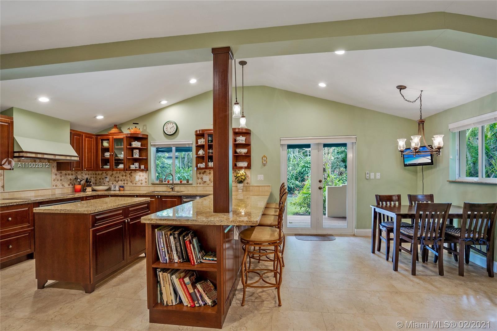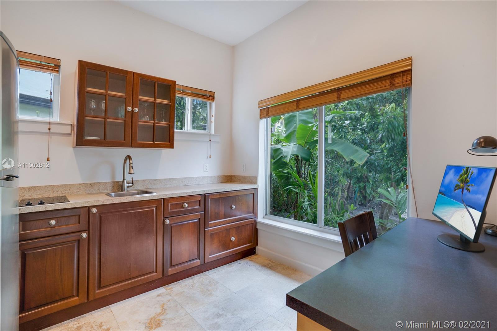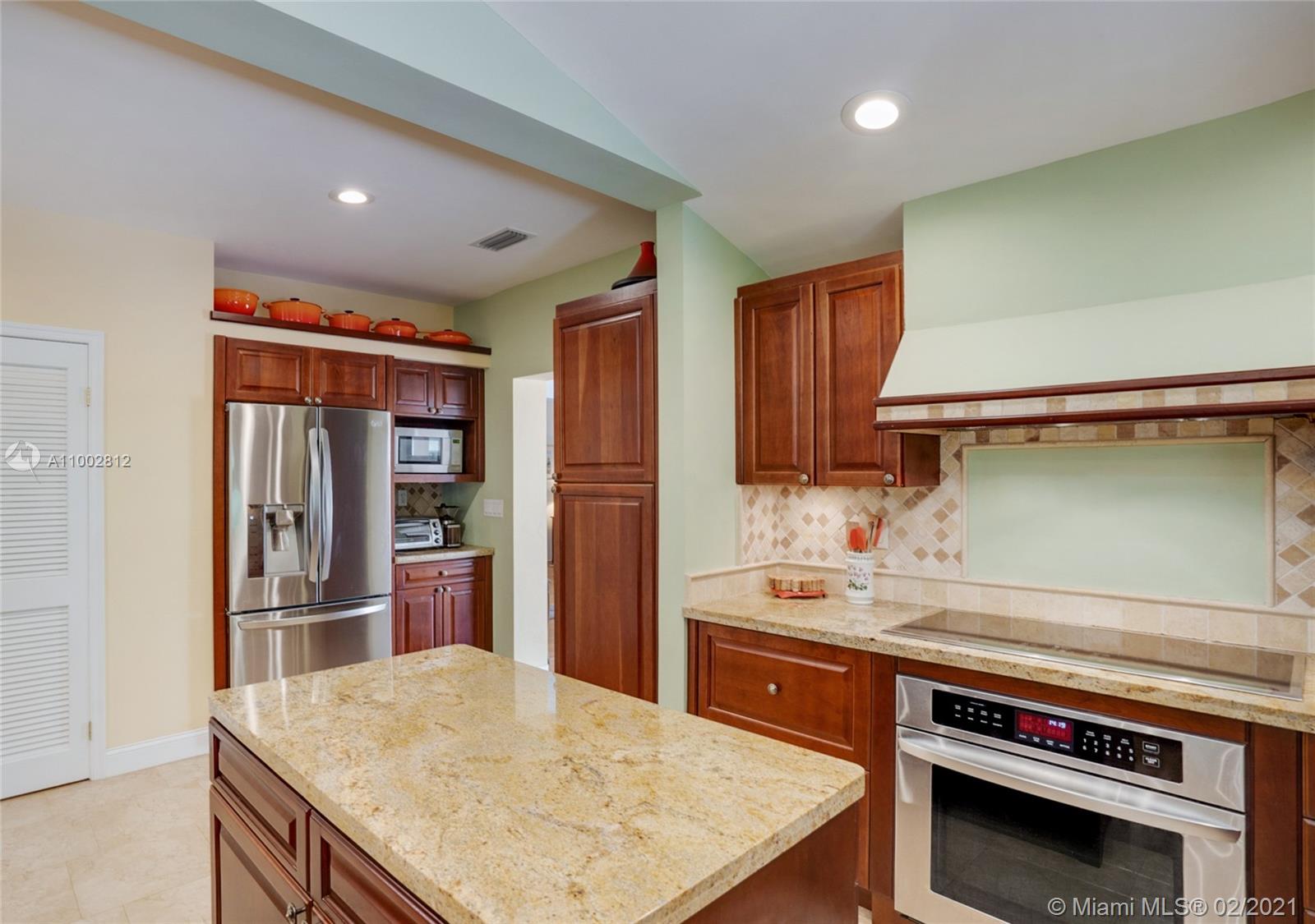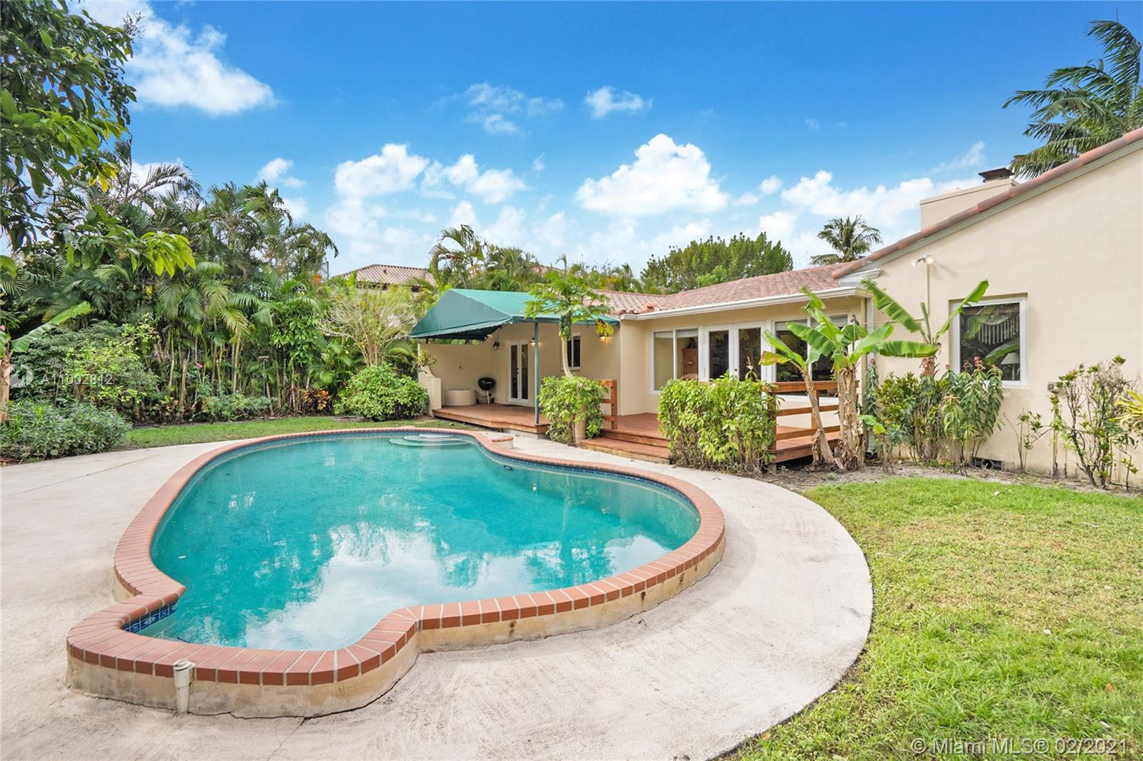 Located in a Prime Coral Gables location, behind a privacy wall, this 4 bd, 3 bath residence w/ cottage is on a quiet, low traffic street. The 12,000 sq. ft. lot is laden w/ exotic plants & fruit trees. Garden vistas from every rm. Charming details are exemplified by hardwood floors, fireplace in living rm & gabled ceiling in fam rm. Modern features incl Impact windows/doors/barrel tile roof. Large updated kitchen w/ granite countertops/island/ breakfast bar/eat in area/home office ideal for a family. Home offers a split plan: Master on west side features Bay window/window seat/ample closets. 3 bdrms & 2 baths on east side. The 592 sq ft cottage features high ceilings, saturnia flooring, large liv area/Murphy bed/full bath/kitchen & office space. All cast iron pipes have been replaced.