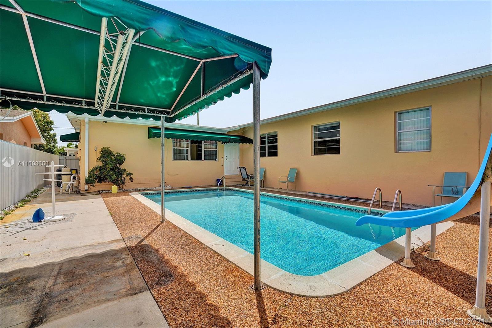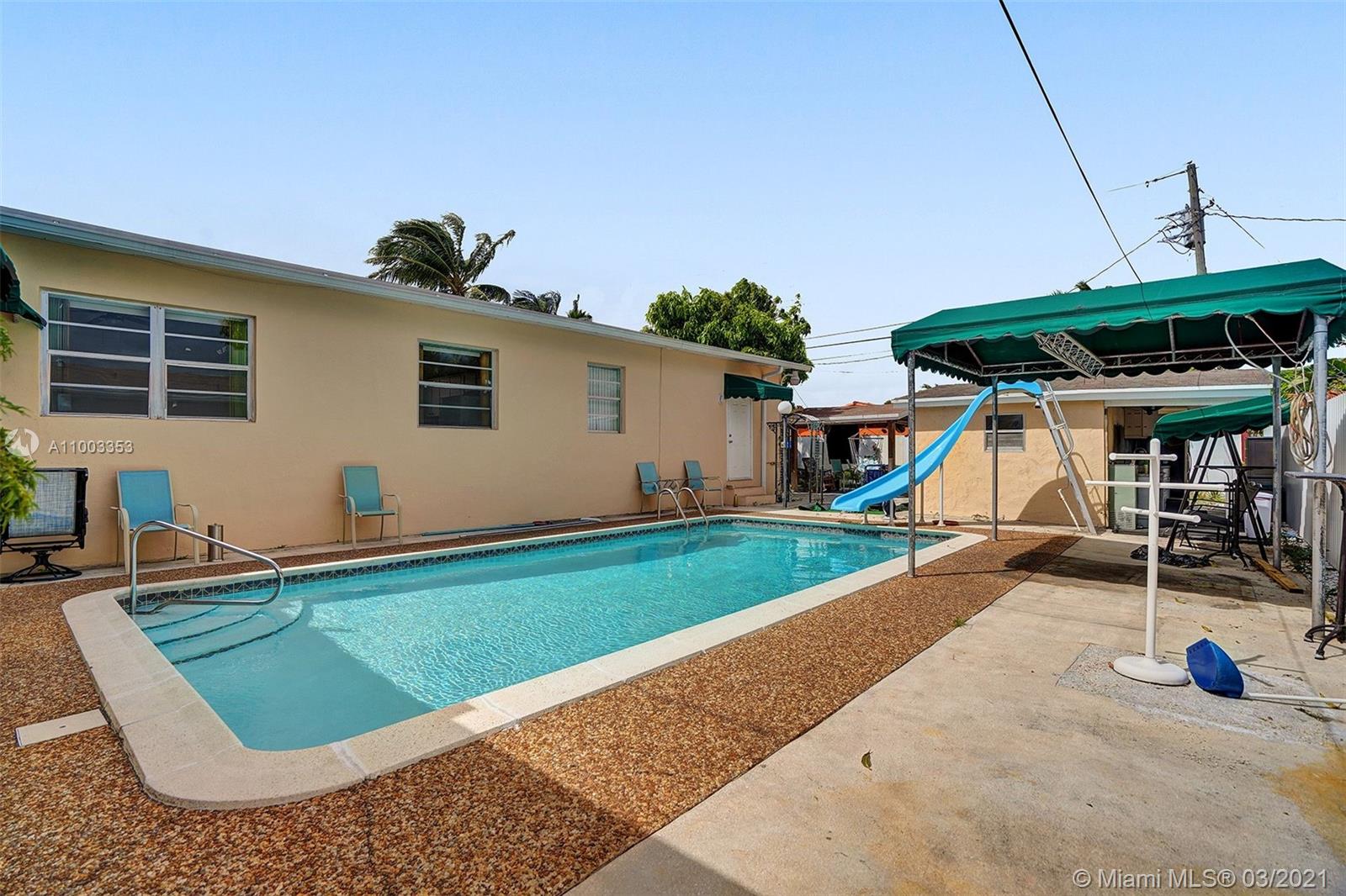 Look no further!!! The best one in Hialeah! Don’t miss this opportunity in a family-oriented neighborhood! Beautiful backyard oasis with a pool, slide, kitchen bar and an additional outside legal storage place for family entertainment! Excellent 4 bedrooms, 2 baths plus a family room and huge loft with an additional private area of a 1 bathroom and 1 bedroom. Many entrances to the house. One-story family home. Two outside carports, fenced. Open Kitchen with tile floors throughout the house. Rose/sunflower Garden in the front yard and a mango tree in the back. SELLER MOTIVATED!