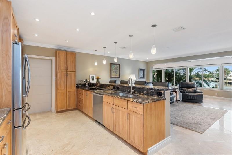 Embrace the tranquil tropical breezes of this ocean access, deep waterfront Lauderdale Harbors residence. This 3 bedroom, 3 bath boaters dream residence features 70 ft of deep water dockage and is positioned with gorgeous water views and ample dockage for multiple boats. Marble floors throughout, luxury baths with spa like features and a chef's premium eat in kitchen with Miele appliances, Miele Induction Cooktop, granite countertops, red birch cabinetry and all the creature comforts of a food lovers kitchen. Master suite features a beautiful veranda to relax and enjoy the South Florida sun. Great location..Just minutes to beach, shops, restaurants and airport.