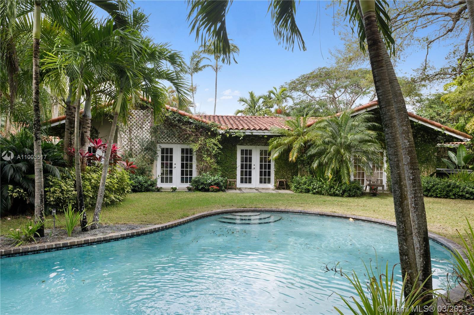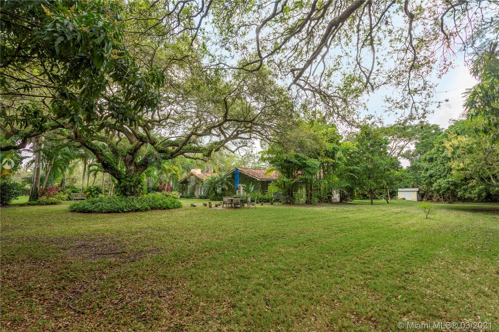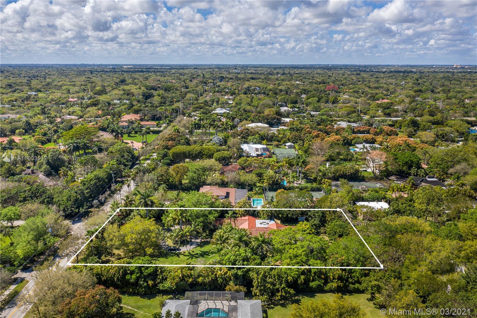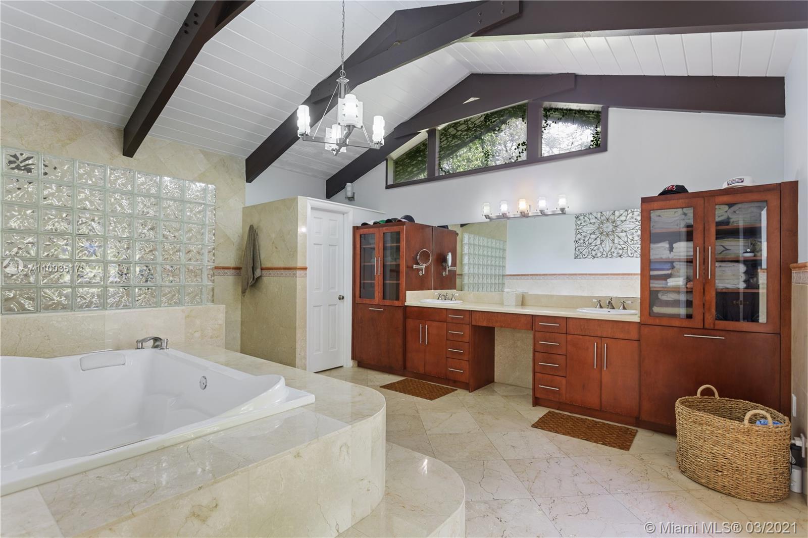 Beautiful Pinecrest ranch style pool home surrounded by lush tropical fruit trees on huge lot (52,000+ sq ft). Five full bedrooms plus an office or den or both, you choose. Master suite is enormous with sunken tub, separate shower, large walk-in closet and dressing room. Features a formal living room with a working fireplace, formal dining room plus a light airy Florida/family room with skylights. Vaulted ceilings with exposed wood beams and plenty of natural light in every room. Other features include a large circular driveway, an electric gated entrance for privacy, a hot tub just outside the master bathroom. Inside the Pinecrest elementary school district.