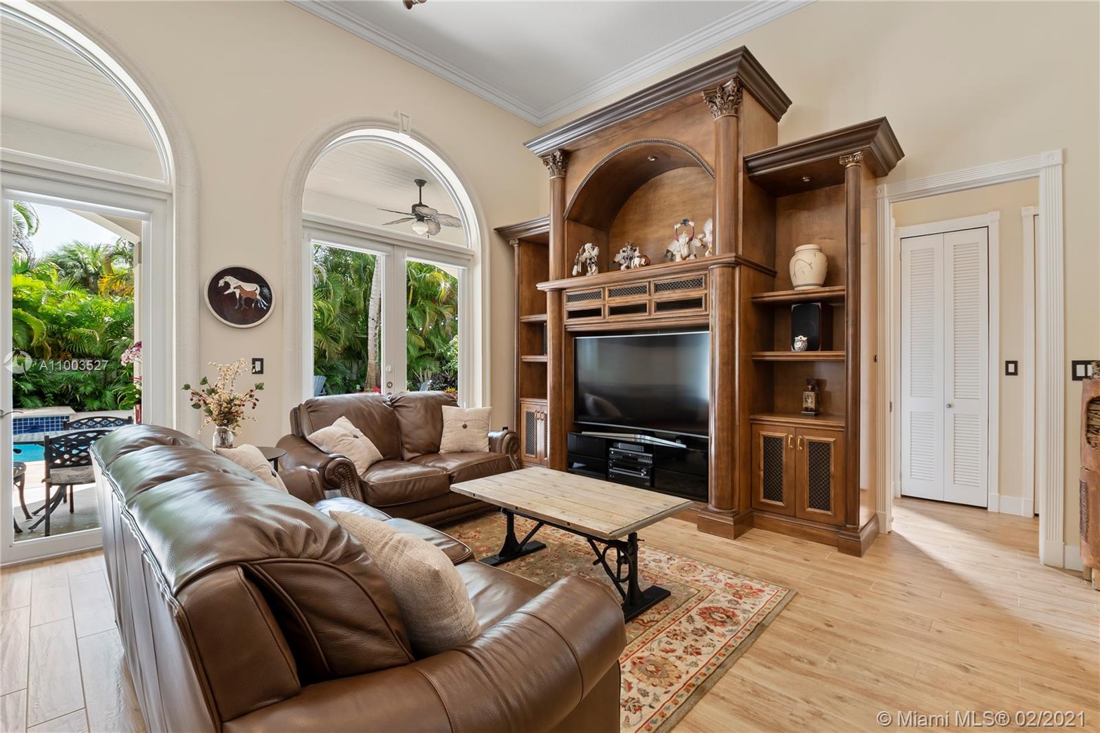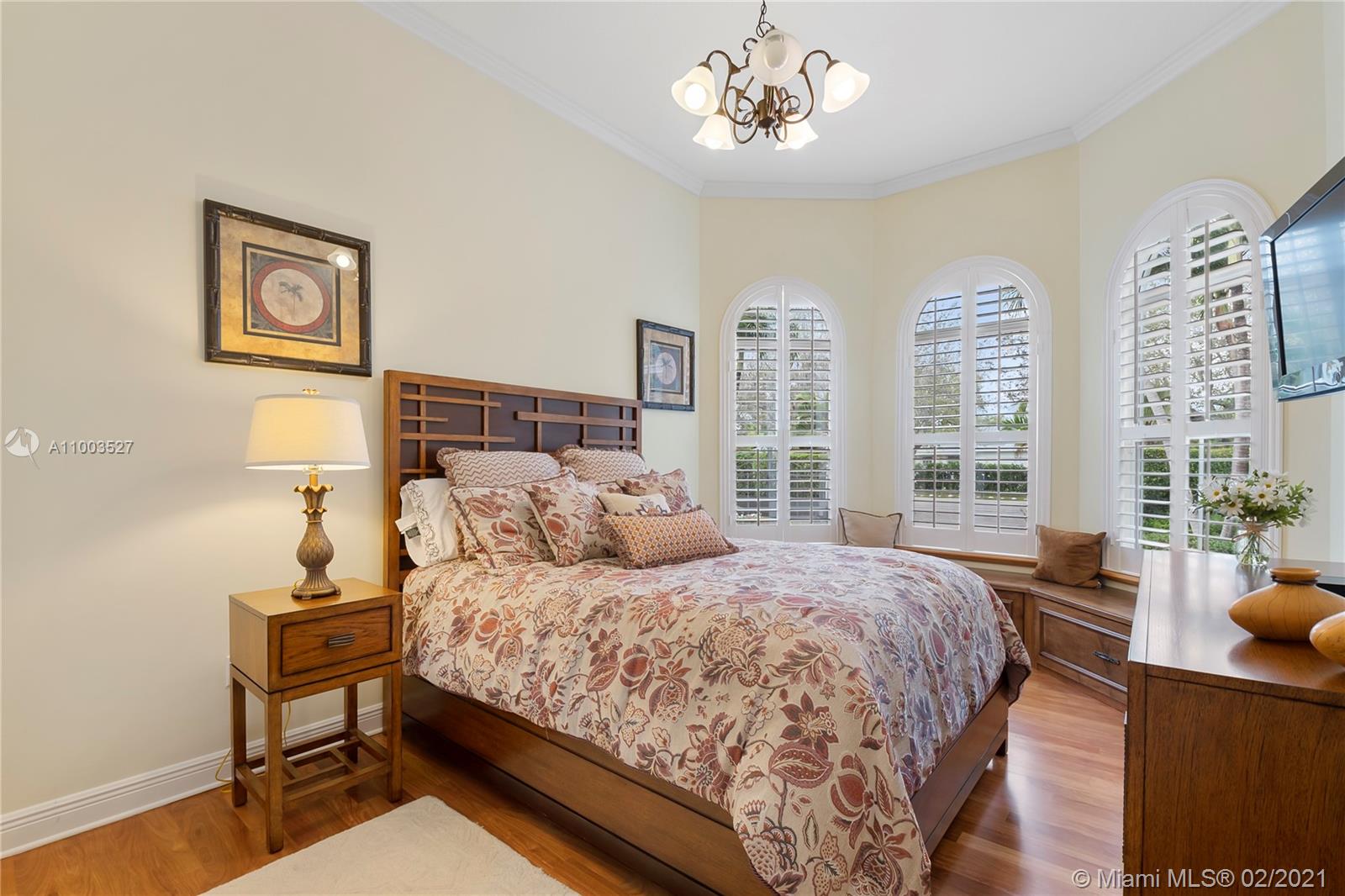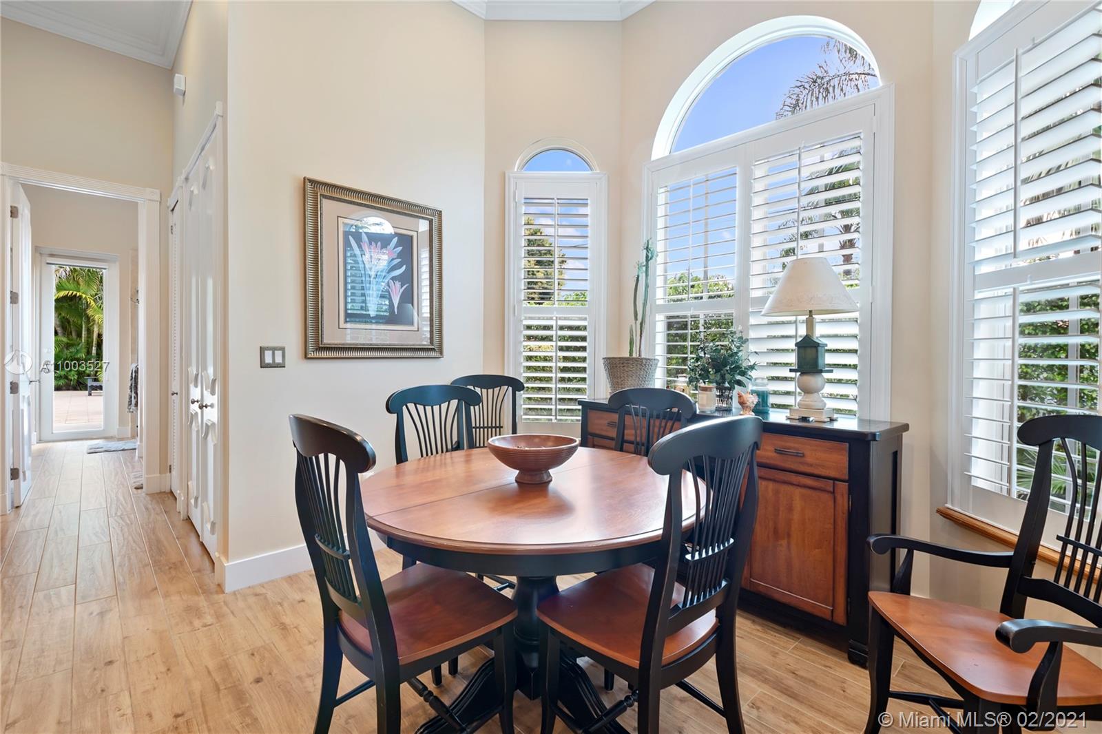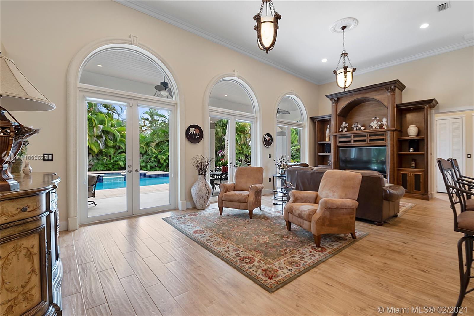 Pinecrest gated estate! This 5 bedroom, 4 bath home has it all---impact windows and doors, high ceilings fill the house with natural light, plantation shutters, large open kitchen with breakfast nook, formal living room, formal dining room with wet bar, new roof, new ac units, split plan with guest 1/1, spacious master suite with sitting area, huge walk-in closet and spa like bath, wonderful patio with summer kitchen and pool area on lush tropical lot. Indoor laundry room, 2 car garage.