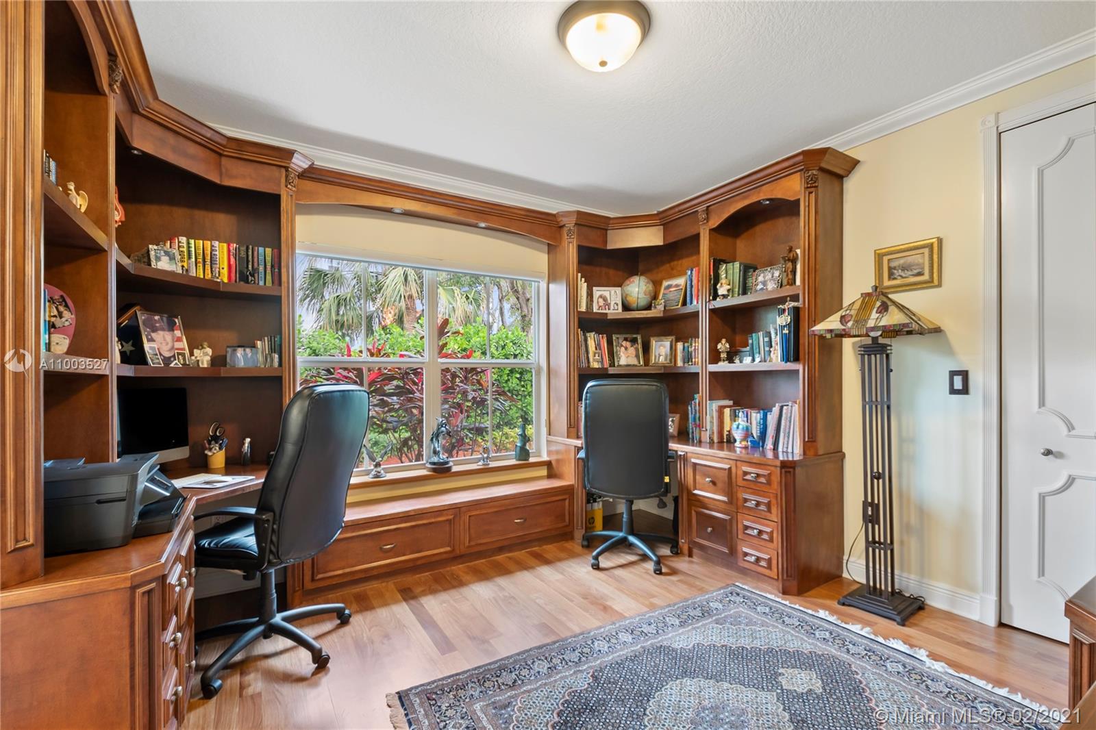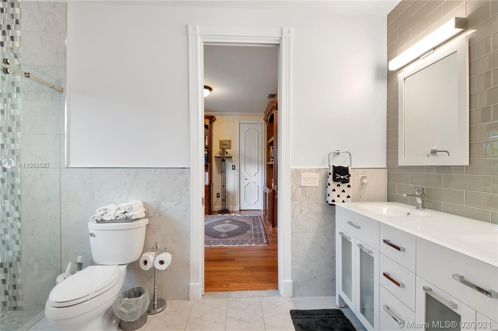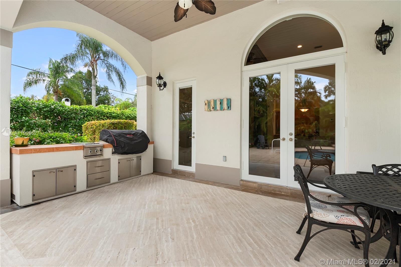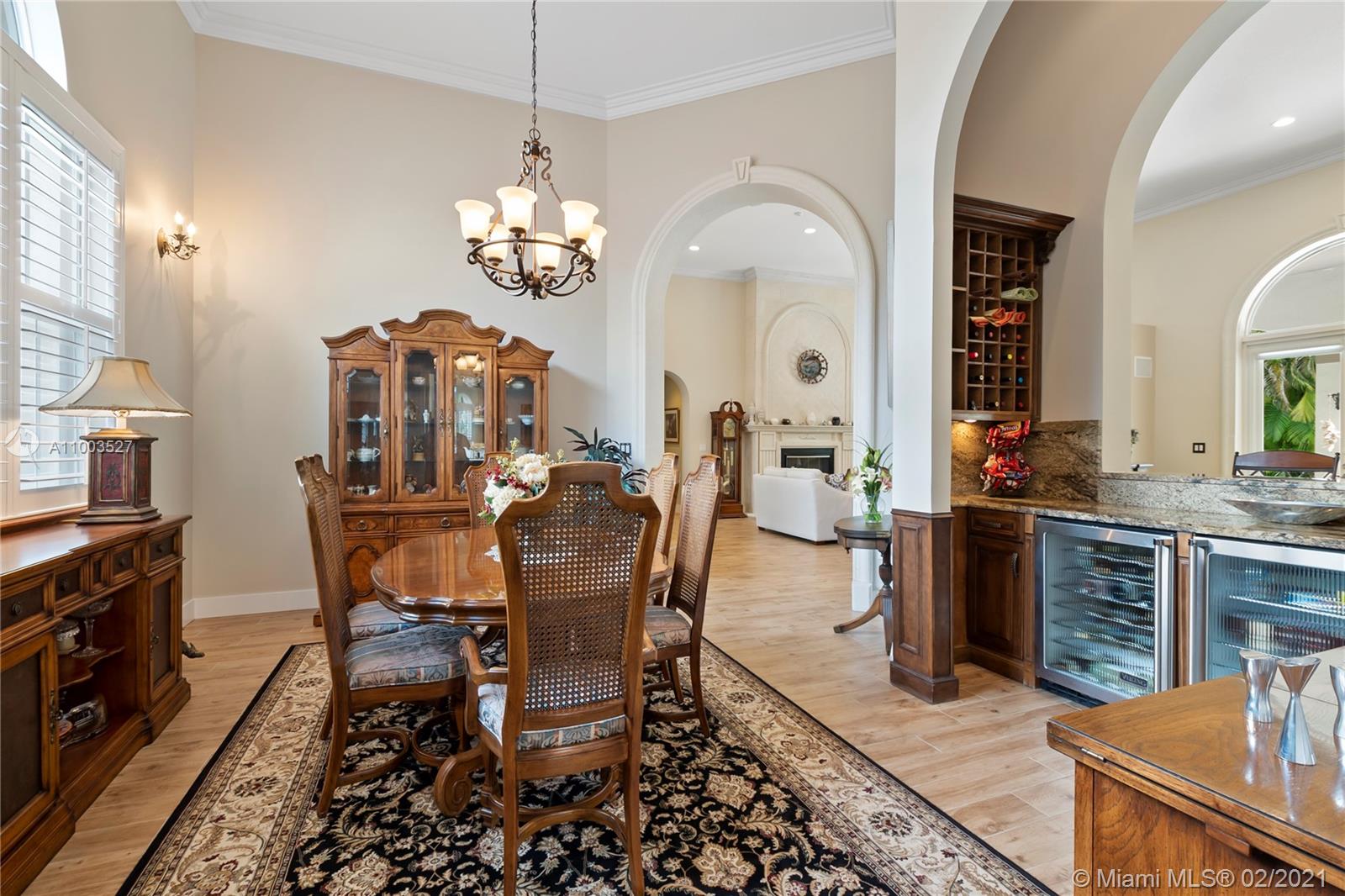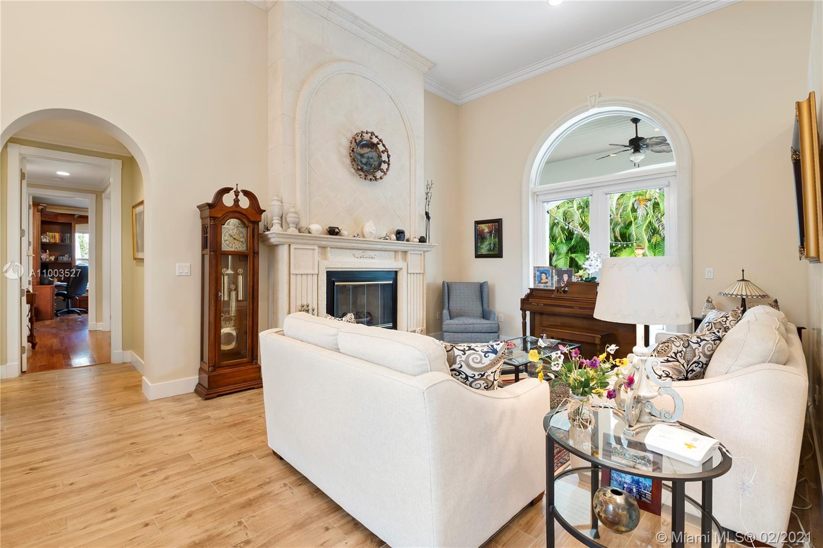 Pinecrest gated estate! This 5 bedroom, 4 bath home has it all---impact windows and doors, high ceilings fill the house with natural light, plantation shutters, large open kitchen with breakfast nook, formal living room, formal dining room with wet bar, new roof, new ac units, split plan with guest 1/1, spacious master suite with sitting area, huge walk-in closet and spa like bath, wonderful patio with summer kitchen and pool area on lush tropical lot. Indoor laundry room, 2 car garage.