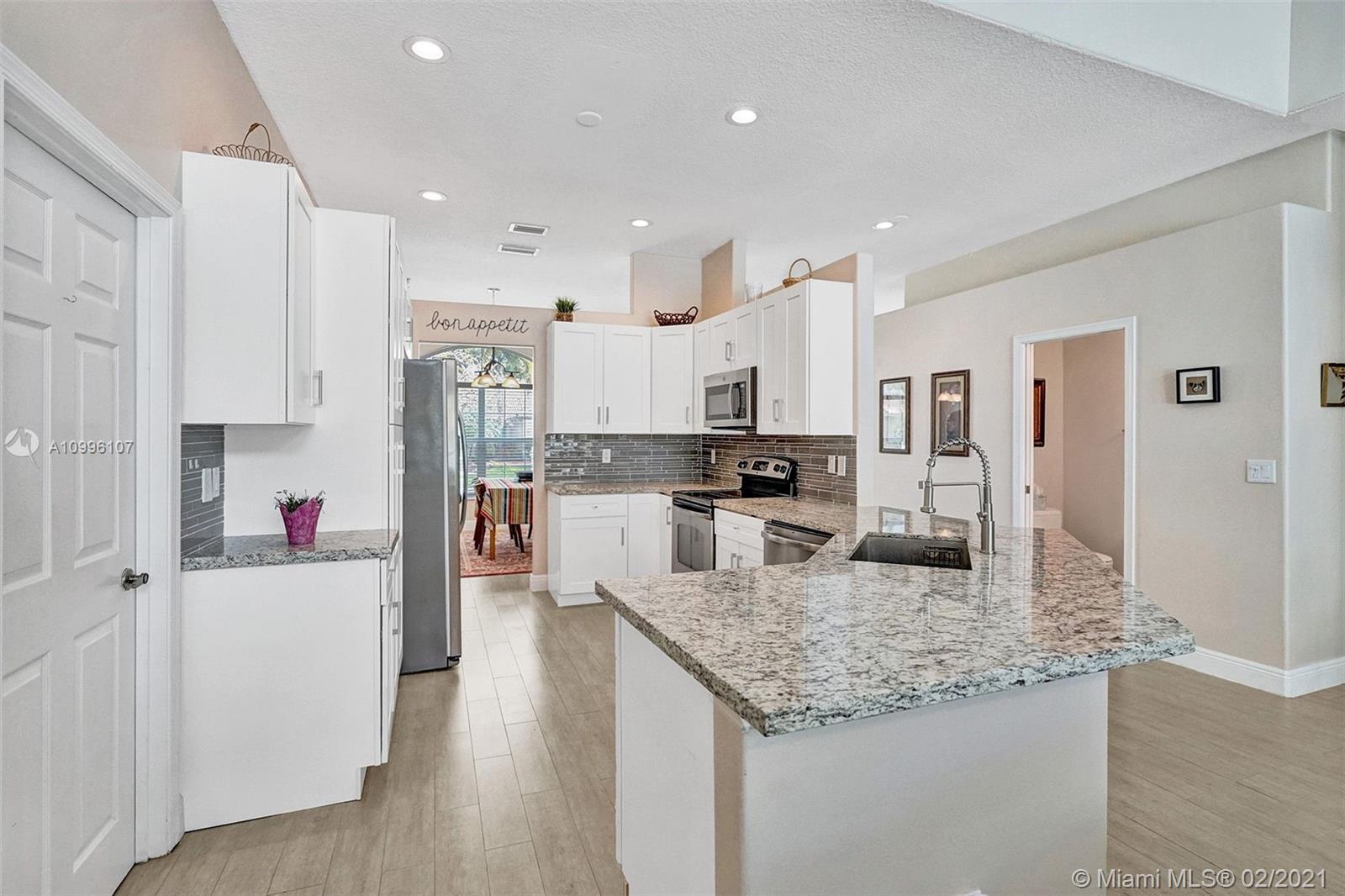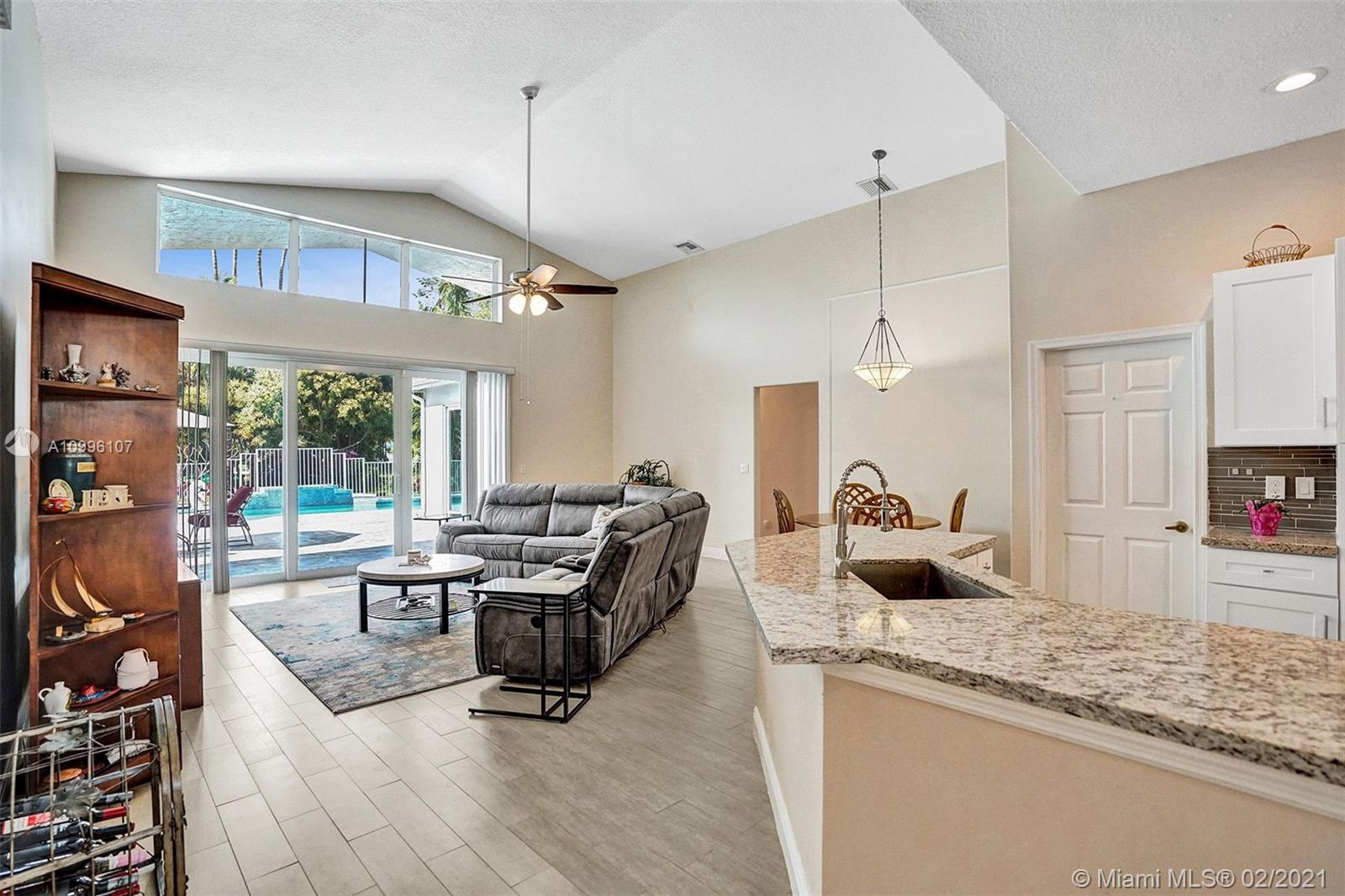 Wow! Spectacular Lakefront Pool home. Totally updated. Single Story 4/BR 2.5/BTH. Split, Open Floor Plan. Huge lot with giant backyard & patio has lots of privacy and is ideal for Pool Parties. Kitchen features beautiful granite counters, High-end Stainless Steel appliances, & double pantry. Large master suite. Contemporary shower and separate soaking tub; dual sinks; and two walk-in closets. Modern tile floors throughout. Formal living and dining rooms. Large bedrooms. Foyer entry. Cabana bath. Vaulted ceilings. Recessed lighting. Laundry room with utility sink & newer washer/dryer. Hurricane impact windows. Boat access to Silver Lake from your backyard. The Mango trees are in bloom! Excellent Schools. Great community. Perfect family neighborhood! OPEN HOUSE. Saturday Feb 27, 12:00-3:00pm