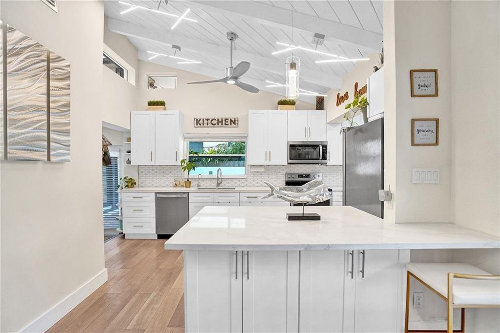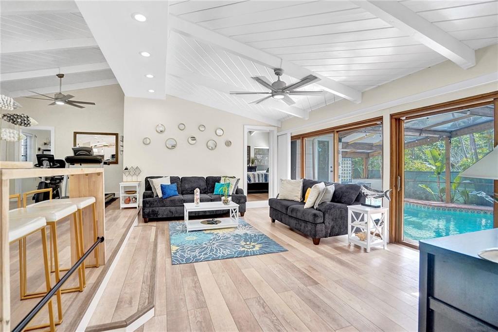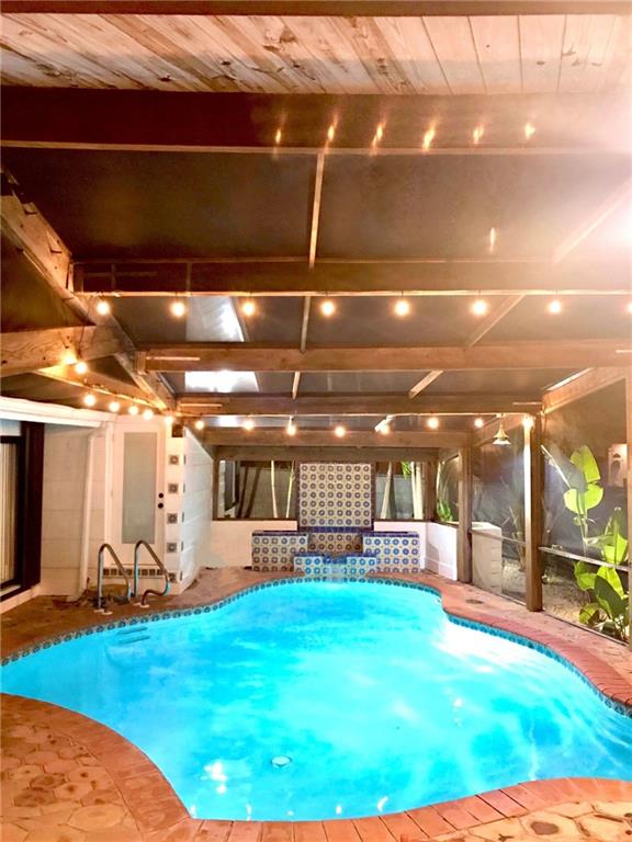 Tranquil Oasis in Sought after Rio Vista. Completely updated and renovated in 2020. Gorgeous open floor plan with high exposed wood beamed ceilings, cabana bath, private outdoor courtyard cafe with brick patio. A resort like feel is evident with the breezy landscaping and outdoor saltwater pool system equipped with solar heater and electric heat pump system that you can enjoy on the spacious patio area with an outdoor kitchen. Unique to the neighborhood ranch-style home with 3 bedrooms, 3 baths and a 2 car garage, Located on a rarely available corner double lot! All underground sewer piping replaced in 2019. Tented for termites in 2020 with transferable warranty. This is a beauty!!! Bring all offers.