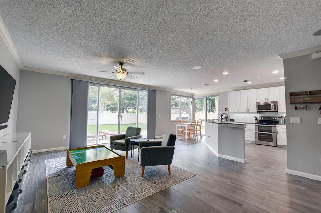 Spacious 2-story home located on private corner lot! Large open floor plan, beautiful new plank wood tile throughout 1st floor, vaulted ceilings, crown molding, LED lighting, and renovated powder room with new floors, vanity, mirror, and light fixtures. Gourmet kitchen with solid wood cabinets with soft-close doors, striking Quartz countertops, decorative tile backsplash, Whirlpool stainless steel appliances and separate extended breakfast bar.Second story living boasts split floor plan, plush carpet, huge master suite with crown molding and AMAZING walk-in closet. Master bath has separate soaking tub, dual sinks and vanities. 3 additional bedrooms upstairs, joined by Jack and Jill bathroom. Spacious laundry room with tons of storage. 2 NEST thermostats control dual a/c units replaced i