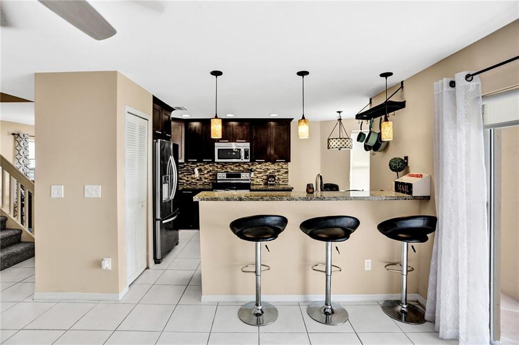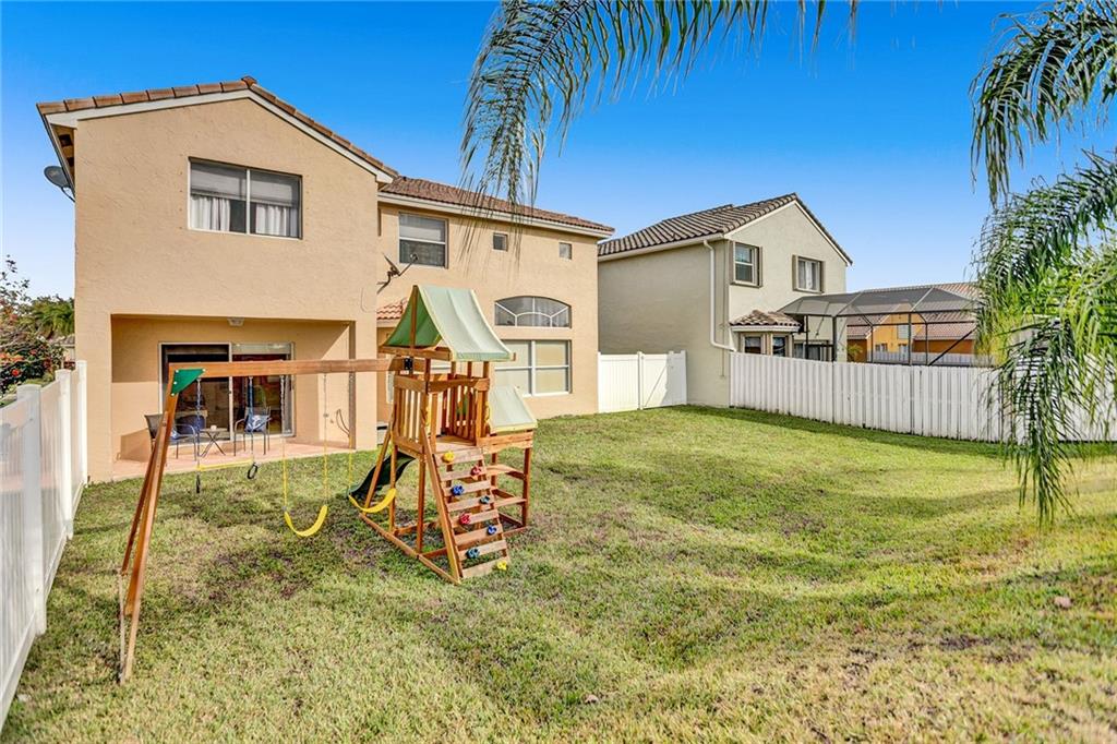 Light-filled and open, this spacious home is located in the guard-gated community of Estancia, with access to a pool & outdoor recreation. A flagstone style driveway and arched entry leading to the formal living & dining room, where double-height ceilings and large windows create a sun-kissed ambiance. A separate family room features oversized sliding doors that open to the backyard, with a bar area connecting to the kitchen. Tastefully upgraded with granite counters and an eye-catching backsplash, the eat-in kitchen offers dark espresso cabinets, statement lighting & SS appliances. Four upstairs bedrooms give the option to create a home office, gym or playroom; with a master that includes an ensuite bath with dual sinks & a soaking tub. The large backyard is fenced, with a playground set.