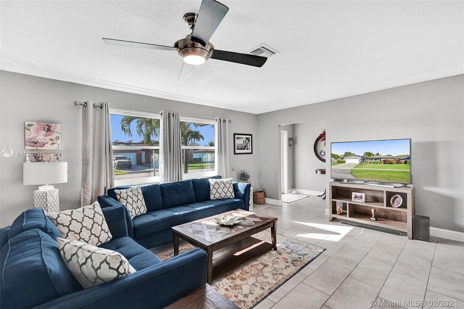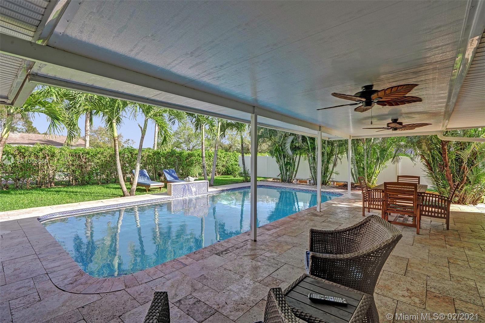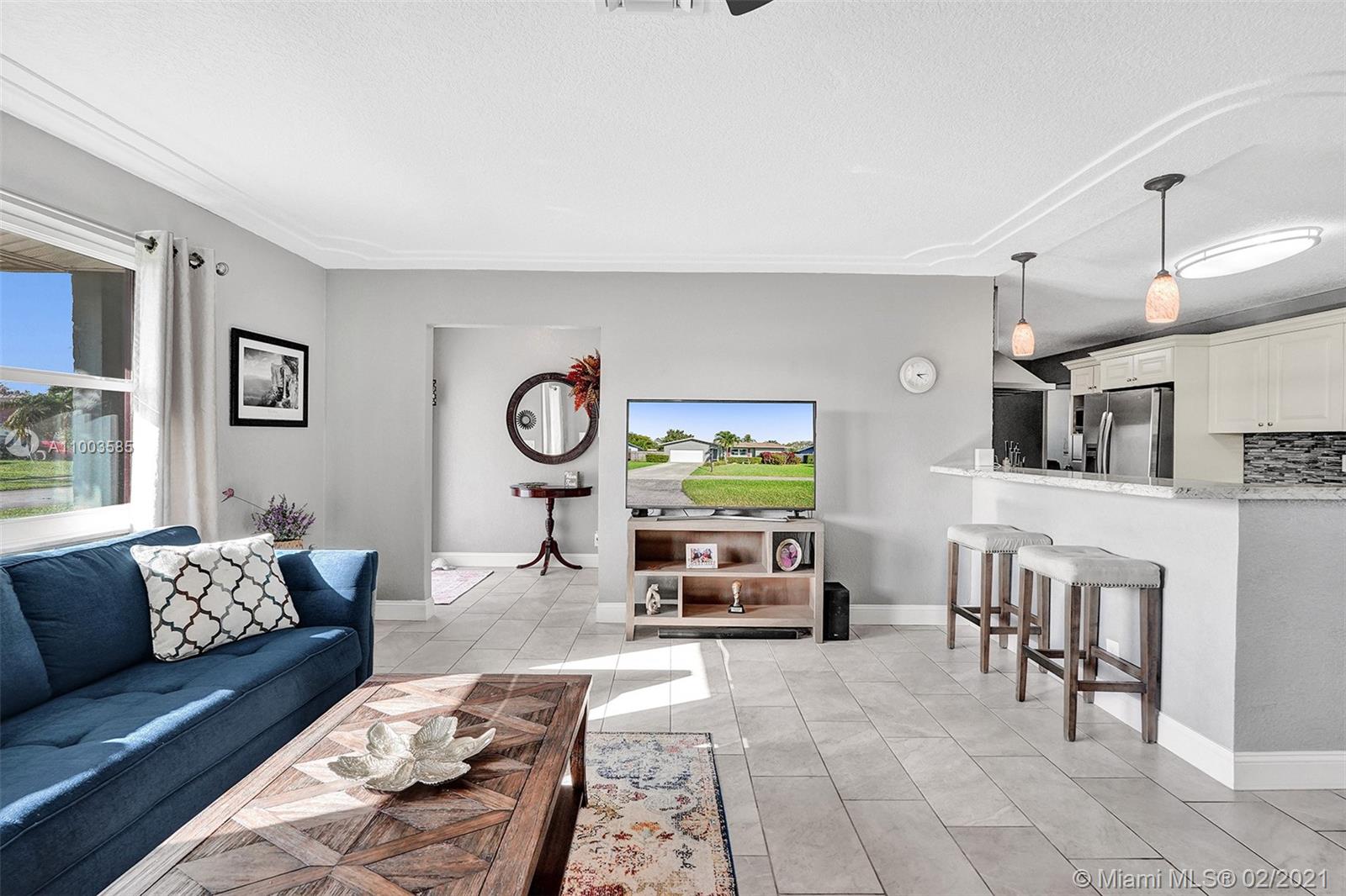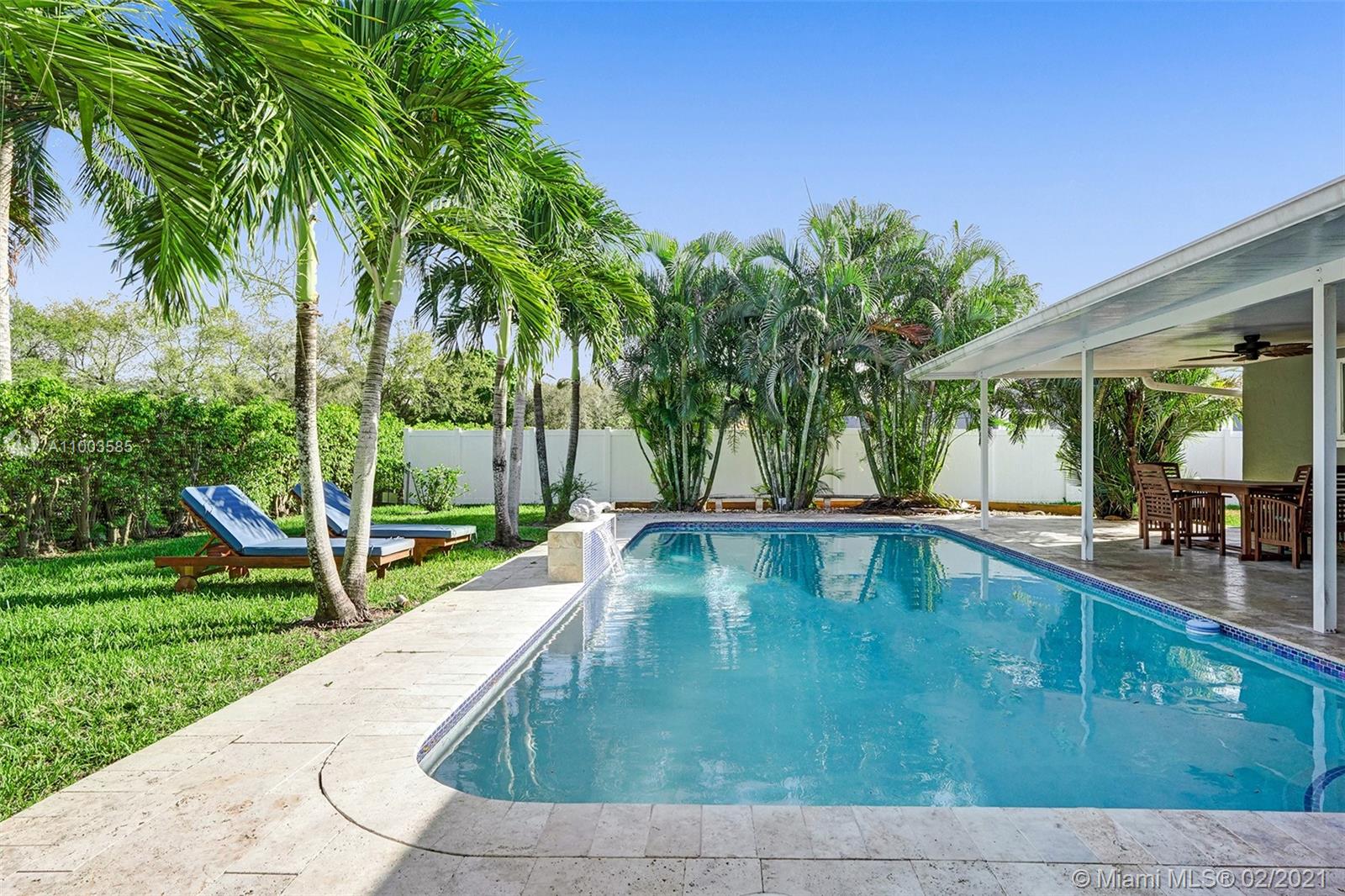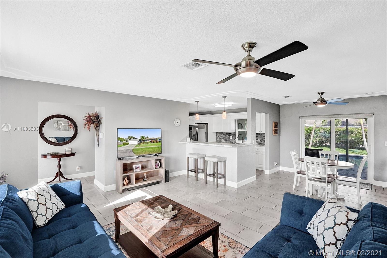 Come fall in love with this stunning 3 Bedroom 2 bathroom plus a large bonus room that can be used as a 4th room or a 2nd entertaining area. This gorgeous pool home is nestled on an oversized ¼ acre private lot that is settled on a beautiful & peaceful cul-de-sac street. This home features a bright & spacious split-floorplan with an impressive open-concept kitchen perfectly completed with crown moldings, exotic stone countertops, and room for a dinette. The backyard feels like a tropical paradise with lovely palm trees, marble-stone deck, resort-style pool w/ waterfall, and a brand-new hot tub that will have you feeling like you’re in heaven! Newly completed renovations include Impact Windows & Doors, A/C, Patio Roof, Pool & pump Hot tub, Kitchen & Baths, bring your boat, RV, trucks No HOA
