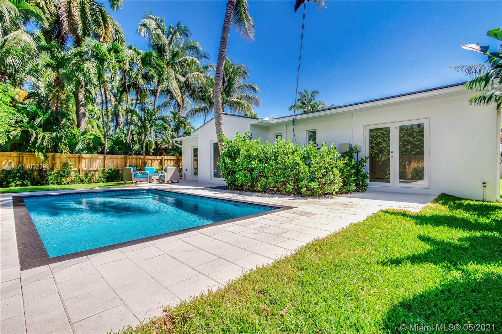 Golf Course and Pool Home in Miami Beach. Renovated in 2015. Tile roof, ceramic tile flooring, updated electric, impact windows and doors. The plumbing has been updated to PVC. Stainless Steel appliances include gas stovetop. Superb landscaping, paver driveway, electric entry gate, and sprinkler system. Each bedroom has its own bathroom and walk-in closet. Great floor plan and layout with rotunda designed living room. Attached one car garage. Across from the Miami Beach Country Golf Club and walking distance to Lincoln Road, Publix on the Bay and Sunset Harbour neighborhood restaurant and shopping community. Large private backyard ideal for relaxing and entertaining. Primary bedroom and guest room has private access to the backyard and heated swimming pool.