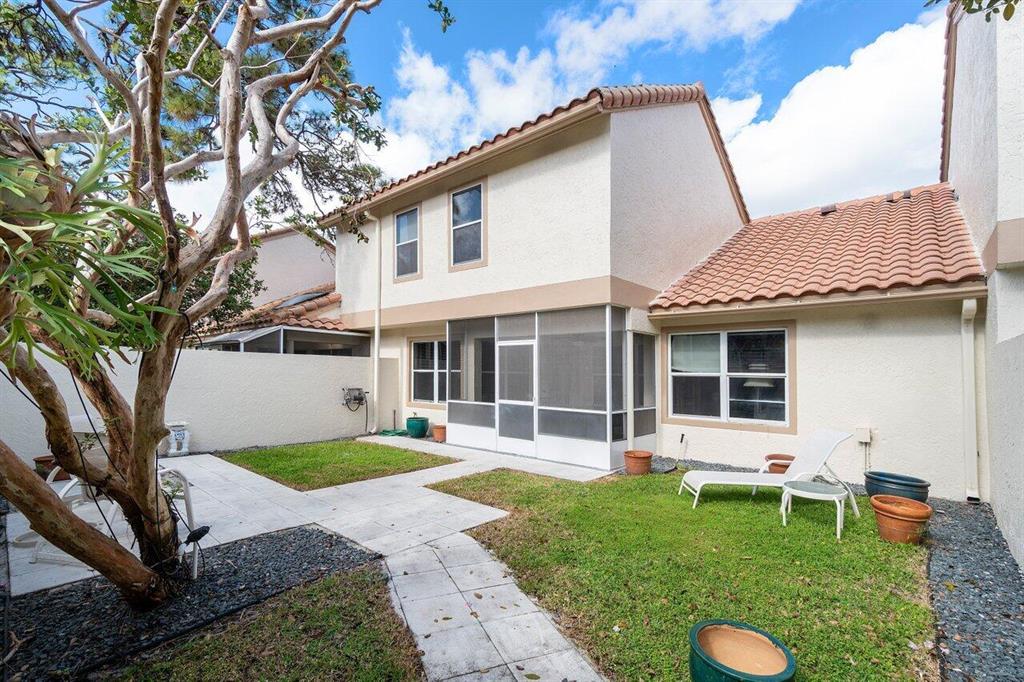 RARE OPPORTUNITY to live in central Boca with A+ rated schools. This beautiful TH sports neutral floors, 1800 SF, 3/2.5, 2CG, and the Master bedroom on the first floor. Vaulted ceilings with skylights, separate dining room, breakfast area in kitchen, family room, living room, screened patio, large yard, a true paradise. Gated community of 74 homes, heated community pool in walking distance. 2.5 miles to Boca Town Center, easy access to I95, turnpike, Mizner Park, beaches, universities and shopping. Will not last long. Seller offering 1 year AHS home Warranty. FANTASTIC PLACE TO CALL HOME. Additional photos to come, they will be uploaded by Saturday.