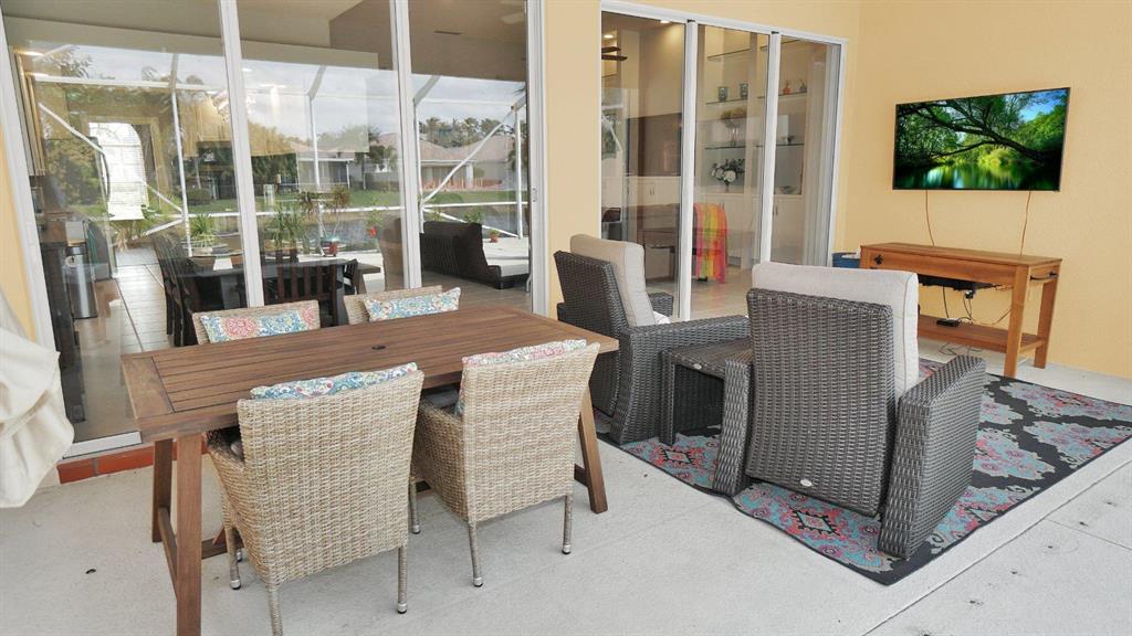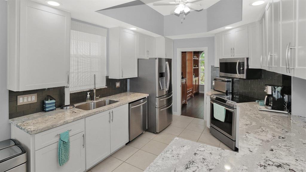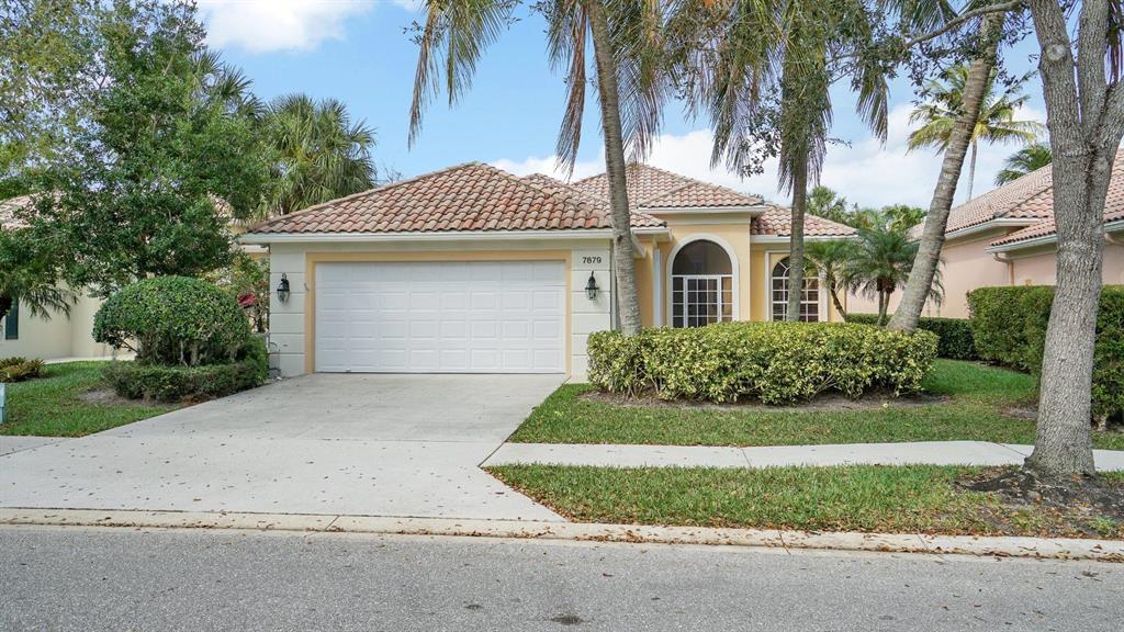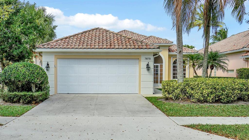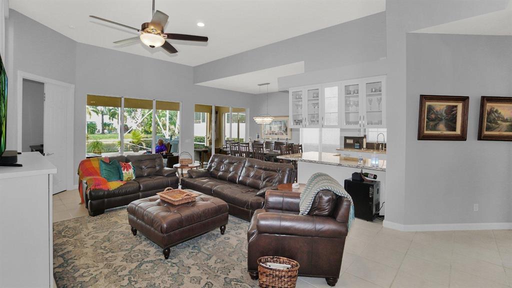 Popular DiVosta home with 3 bedrooms plus den, 2 Bath, 2 car Garage and large screened patio overlooking water in the beautiful gated community of Riverwalk. Open floor plan with built-in wall units in the living room and den . Updating includes newer kitchen with shaker white cabinets, Cambria quartz, stainless steel appliances, convection oven/microwave, new countertops in bathrooms, new HVAC (2017), accordion shutters, garage storage racks, LED lighting and much more! Riverwalk is a fantastic development with Clubhouse, 3 heated community pools, Tennis courts, pickle ball, fitness center and It's own Post Office. The community has 24 hour manned Guard Gate. Riverwalk is minutes to the turnpike and airport and easy access to restaurants/stores along Okeechobee Blvd.