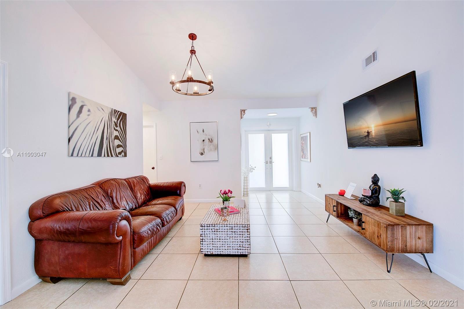 Nestled between the Dade and Broward County line, this 3/2 home with garage. This newly painted exterior and interior. Paved Driveway and backyard. Six-foot hedges for privacy. The obscured double doors welcome you to the popcorn-free vaulted ceilings. The open concept lends itself to holding conversations from the living room to the dining room area. White quartz countertops and backsplash that draw the light from the sliding glass doors and new windows. Updated kitchen cabinets and stainless-steel appliances. Porcelain tiles throughout the house and newly painted white walls. laminate floors in the bedrooms. The backyard is ready for hosting barbecues under the shade of the patio porch. Quick access to major highways, minutes from The Shops at Pembroke. This home is move-in ready!