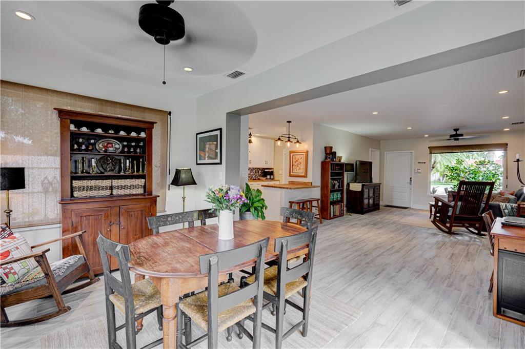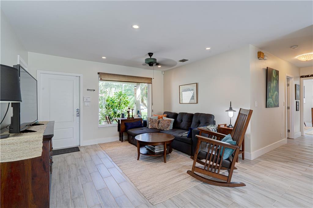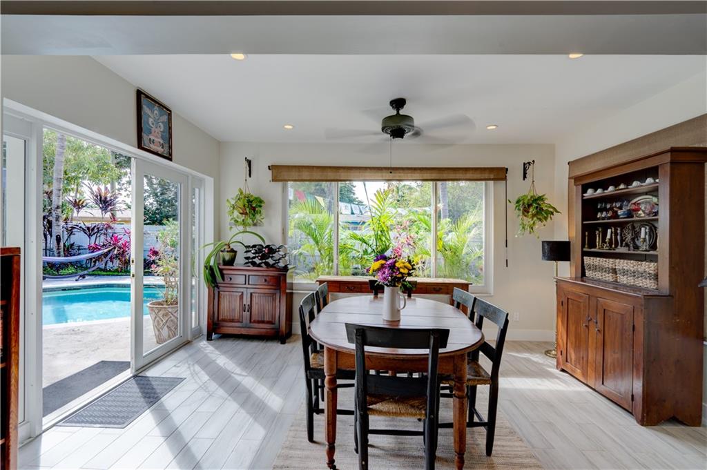 Ultimate indoor/outdoor living with South Florida vibe! Lovely upgraded 3bedroom/2bath home minutes from Hollywood beach but still in a cozy quiet neighborhood. Ceramic tile floors throughout an open concept living rm/dining area w/large kitchen w/loads of cabinets, pull out drawers + butcher block countertops. Recessed lights w/dimmers, ceiling fans throughout + impact windows all create that bright open feel. Bedrooms have black out shades and bathrooms have been newly retiled. One bedroom presently is perfect home/school work space. Indoor laundry room w/extra closet hosting tankless gas water heater + extra storage. Tropical paradise yard affords heated pool w/colored lights. Outdoor Kitchen w/mini fridge + gas bbq, all enhance this friendly gathering spot 4 family + friends to enjoy