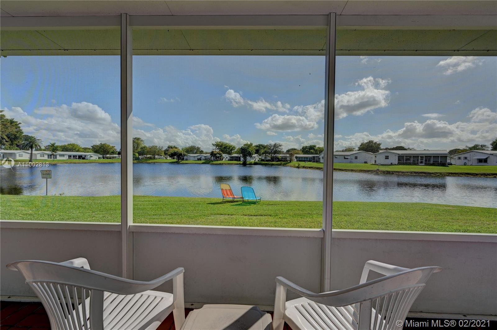 WATER,WATER EVERYWHERE! Breathtaking views & sunsets from this 2 bed 2 bath home! A waterfront gem--one of few directly positioned on wide tranquil lake with highly sought after north/south setting. Generous 55+ community amenities--2 heated pools & spas, tennis courts, fitness center, clubhouse, free TV/internet, all outside maintenance, free shuttle to stores. Expanded Florida room and screened porch overlooking water with large grilling space. Upgraded LED ceilings with remote controlled fans throughout, extensive security system, walk-in closet, one car garage, doublewide driveway, hurricane awnings/shutters, newer roof. A/C unit under warranty, seller funded home warranty through 12/31/21. BEST OF ALL, VAST GRASSY LAKEFRONT ACCESS IS ALL YOURS!