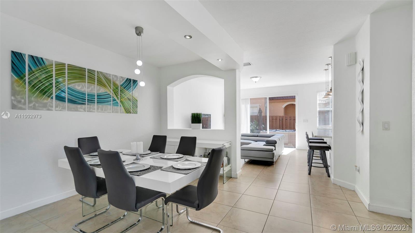 Great corner townhome in a wonderful Doral Community. It is move-in ready and home features 1 car garage with 4 bedrooms and 2.5 bathrooms, with tile throughout, including second story. Home has a nice flow, lots of natural light, with high ceilings. Kitchen is completely and tastefully remodeled and has an open concept with stainless steel appliances including farmhouse sink. Garage has been converted to a gym with AC, with enough space for storage. Garage door is still operational and can be easily converted back. It has a fenced patio, 24 hour security patrol. Easy access to highways, shopping and great schools.***Open House this Saturday February 27th from 1pm - 3pm. Showings will only be held during open house. Call or text listing agent