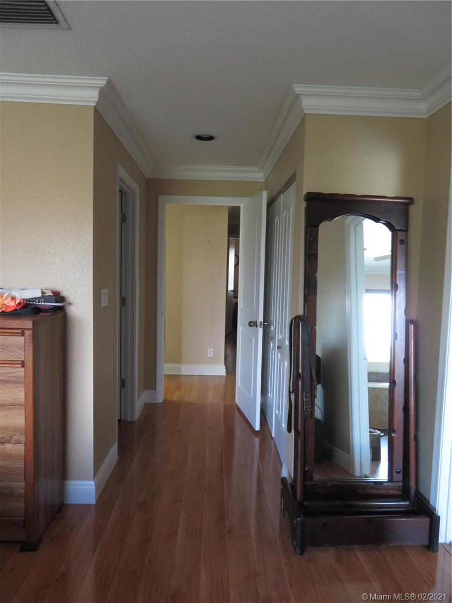 Large 2 story townhouse, corner unit with many upgrades; wide view of the lake; 1 car garage; 2 car private parking in front of your door; home has all impact windows and doors with complete accordion shutters to protect all windows and sliding glass doors; laminate and tile flooring; kitchen has granite counters; bathrooms redone; large main bedroom/bathroom overlooking the lake; newer AC; newer hurricane rated front door and garage door; incredible amount of closet space both upstairs and down; large screened porch is tiled with great lake view; crown molding and lots of attention to detail.
