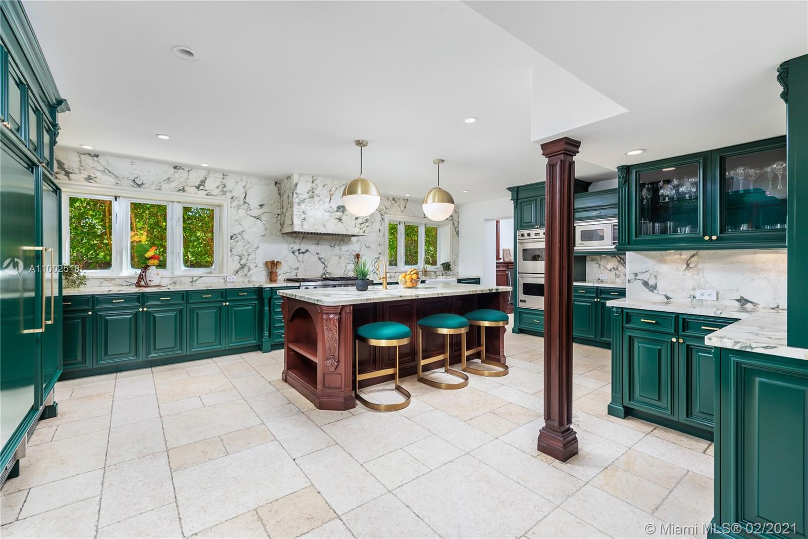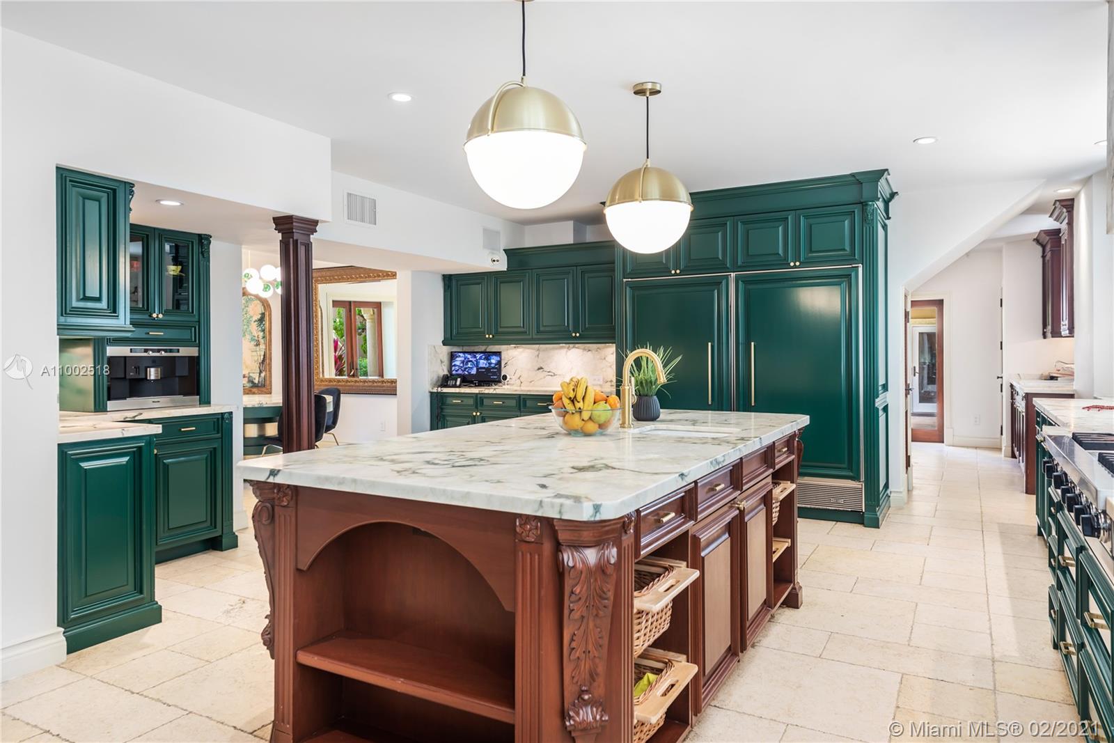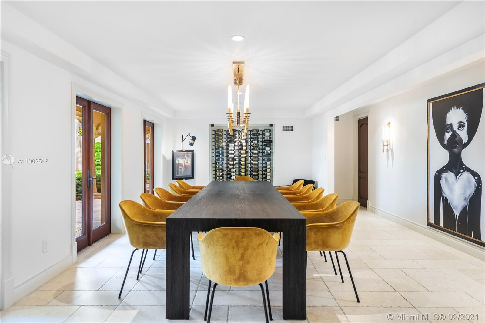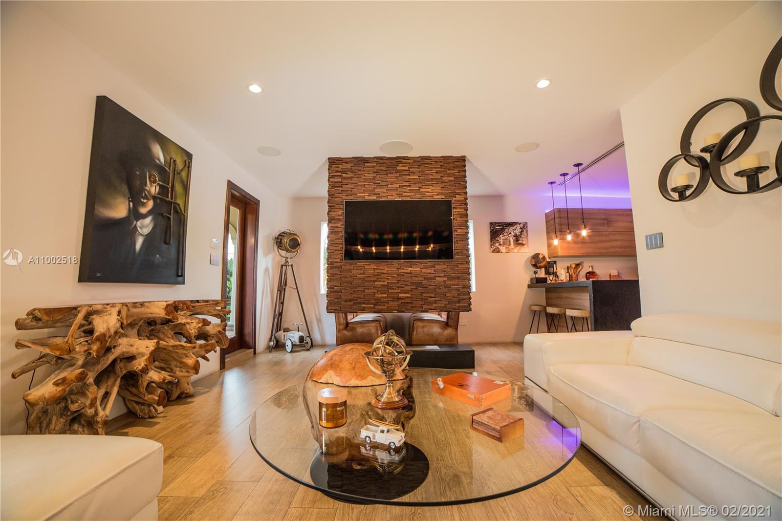 One of a kind estate on a 39,000 sq ft lot. Beautiful open courtyard. A recently renovated grand estate offering exquisite mahogany wood details, 25' fireplace, game room, 2 separate private guest houses, staff room, office, gourmet kitchen w/island, impressive large master suite, terraces, loggias, fountains, resort style pool, gazebo, summer kitchen, and outstanding grounds. 10 bedrooms, 10 bathrooms, 3 half baths. A total of 4 kitchens throughout the property. Excellent dockage for large 100ft+ yacht plus additional boat lift and jet ski lift. Equipped with natural gas generator to power the complete home. Luxury abounds throughout this extraordinary waterfront estate. Impressive views to the historical founainebleau hotel. No neighbors to your left side.