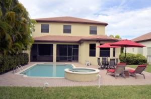 MOST FABULOUS 4/5 BEDROOM HOME ON LARGE LOT WITH WATER VIEW. THIS HOME HAS BEEN RECENTLY RENOVATED WITH NEW PAINTED KITCHEN CABINETS, DOUBLE OVEN & MICROWAVE, ALL STAINLESS STEEL APPLIANCES, GRANITE COUNTERS, LARGE PANTRY WITH PULL OUT CABINETS. FAMILY ROOM WITH BUILT-IN BAR & WINE COOLER. MASTER BEDROOM IS ON FIRST FLOOR WITH PRIVATE DOORS LEADING TO A SCREENED LANAI OVER-LOOKING PRIVATE POOL/SPA. UPSTAIRS INCLUDES 3 BEDROOMS + LARGE LOFT + 2 FULL BATHS. ENTIRE HOME HAS BEEN PAINTED IN NEUTRAL COLORS WITH NEW WINDOW DRAPES & BLINDS. THIS HOME SHOWS LIKE A BUILDER MODEL. FURNITURE NEGOTIABLE.