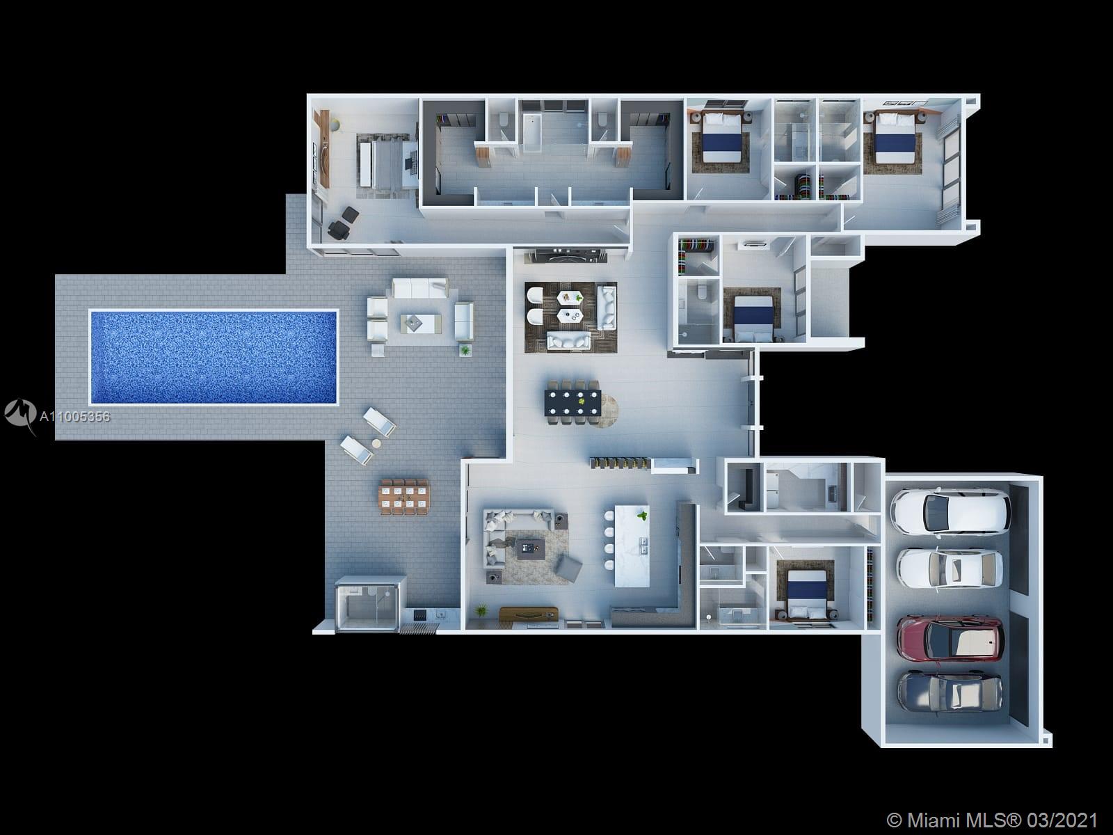2021 new construction. Magnificent contemporary home in Weston Florida! Built to the highest standards with impeccable finishes. Buyers get to choose the finishing touches. This home will overlook a beautiful lake and has an outstanding large pool. This property is perfect for a family, with a large variety of A+ schools nearby. This home boasts 6174 SQFT (4624 SQFT under air) large sized bedrooms. This widely spread-out home is the perfect design for an indoor/outdoor feel. This home will also have high ceilings throughout the living area. A large outdoor cabana bathroom, built-in grill and surround sound system through the backyard. The master bedroom will have a magnificent pool/lake view from your bed and will have a large four-car garage plus extra room for storage. Contact asap!