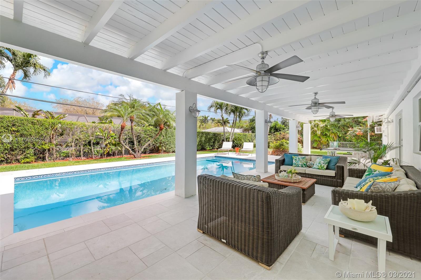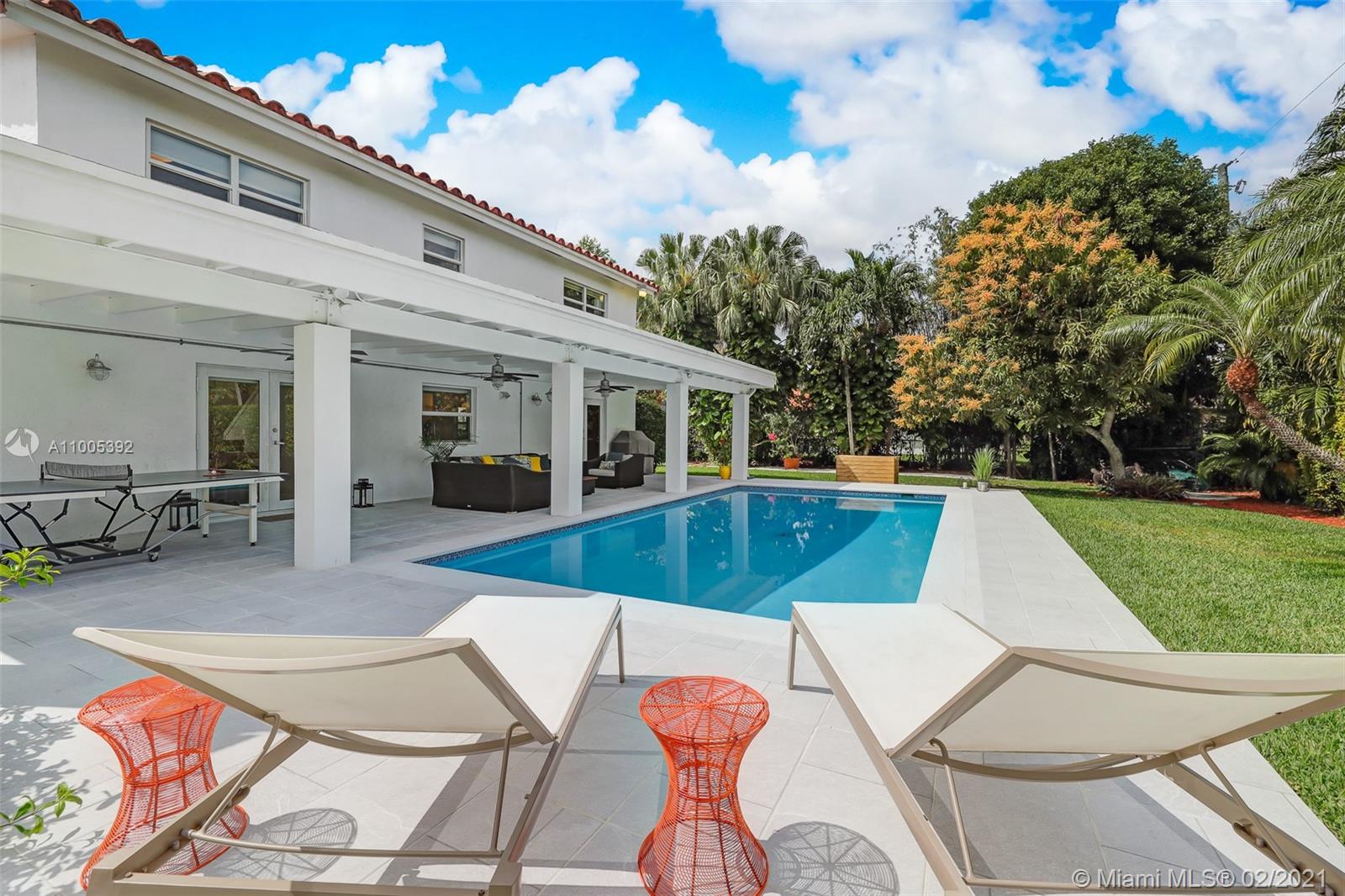 Light and bright 2 story home in North Pinecrest location. 4 bedrooms, 3 full baths, gas range, impact windows, and double car garage. Easy flow through its formal living room, dining room, kitchen, breakfast nook / bar area and spacious family room. French doors open to the newly renovated pool and deck, to enjoy the peace and quiet of the backyard under a large covered terrace. Refer to floor plan in pictures for layout. 109th Terrace is a quiet street in a charming Pinecrest neighborhood with beautiful homes, tree lined streets, landscape lighting and minutes away from everything: highways, excellent public and private schools, tennis courts, bike paths, food and entertainment, shopping, parks and more.