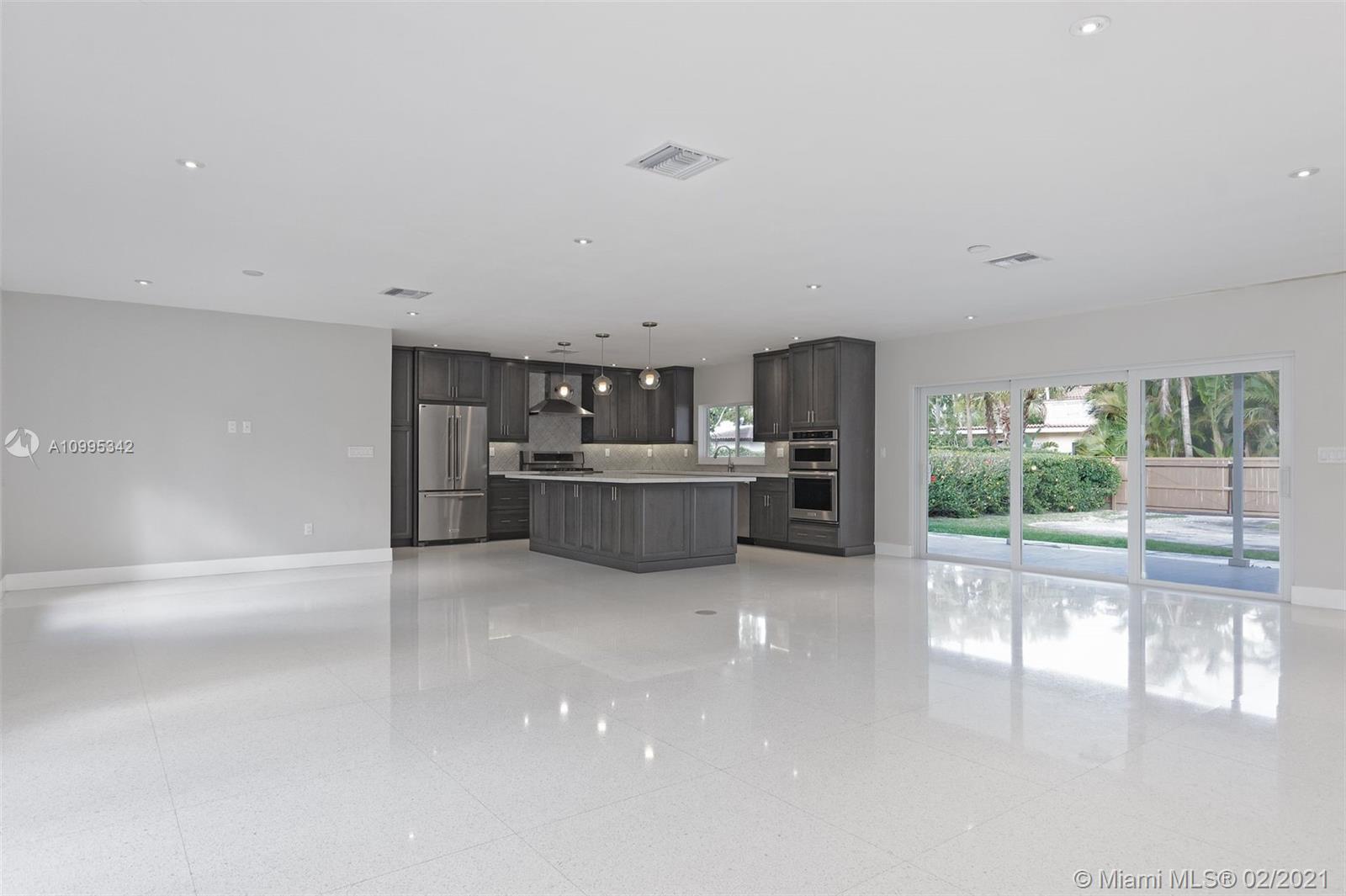 Entertainer’s dream. This renovated contemporary home in the heart of Miami Shores features a completely open floor plan with new Italian terrazzo floors, LED lighting, all new impact windows, Nest thermostat, a new roof and upgraded electrical, A/C ductwork and plumbing. Walk to Starbucks, Dunkin Donuts, Pizza Fiore, cafes, parks, O Cinema, downtown Miami Shores, Farmer’s Market and lots of other shops, banks and things to do. A short drive to Miami Shores rec center, tot lot, swimming pool, water park and golf course .Massive kitchen features custom Omega cabinetry with tons of storage, top of the line Frigidaire appliances, a gas range, built-in wine fridge, large eat-in island, garbage disposal, quartz counters and so much more. Attached 2 car garage and room for a pool in the yard.