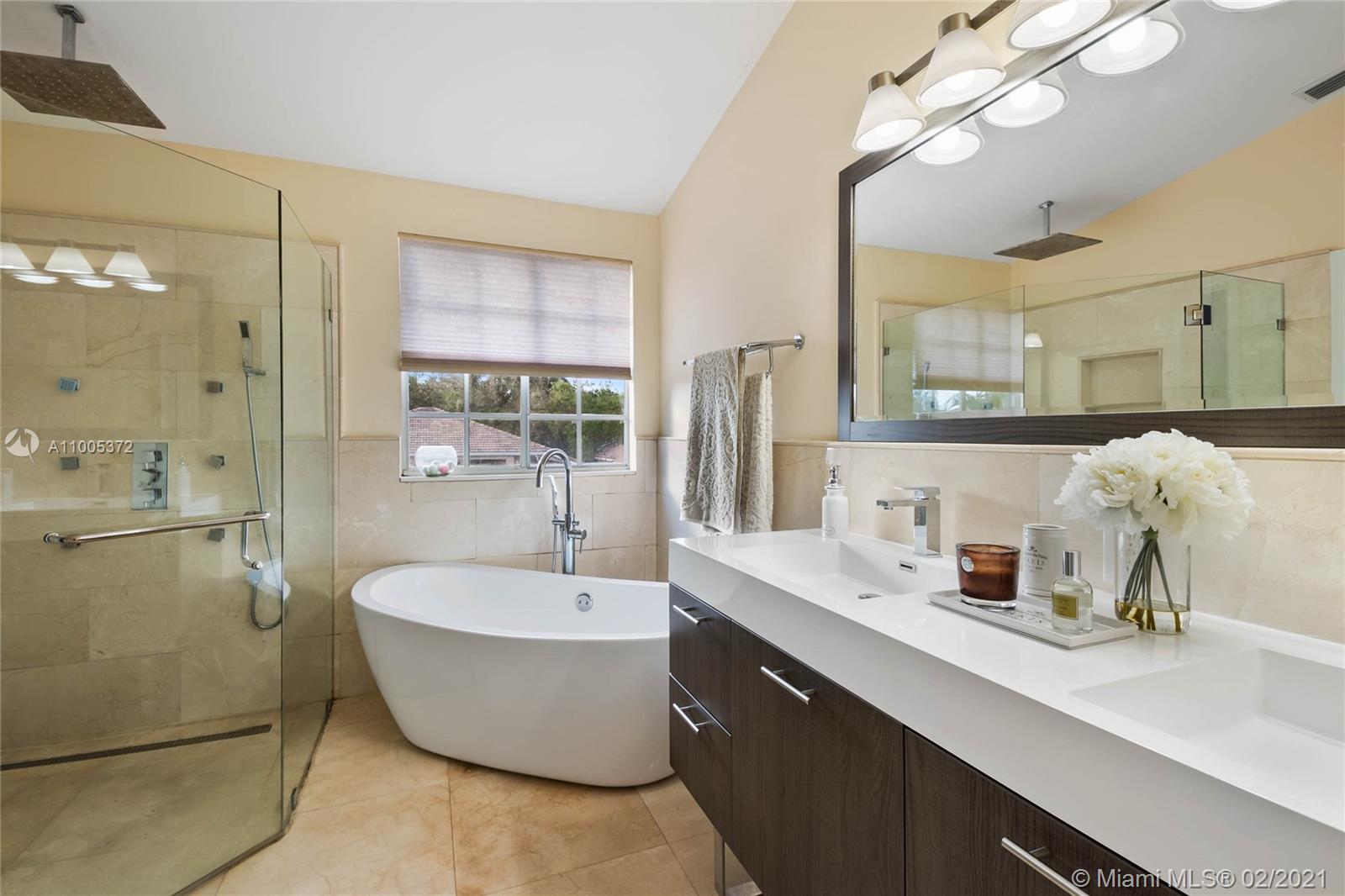 Situated in Weston Hills, one of the most prestigious communities in Weston, this home has been entirely and gorgeously renovated, top to bottom! You will be greeted by volume ceilings & marble floors. Home offers Italian kitchen cabinetry in the kitchen & gorgeous quartz island with a breakfast nook that overlooks your swimming pool. All bedrooms are upstairs, with a split plan. Owner's suite is a oversized bedroom with two sitting areas and offers a bathroom with glass shower doors and a modern tub. Home sits on one of the largest lots Oakbrook. Screened in swimming pool. Full accordion hurricane protection. Drive your golf cart to the pristine golf courses within Weston Hills. A rated schools. Tot park, volleyball and b-ball court within walking distance. Click on 3-D Tour!