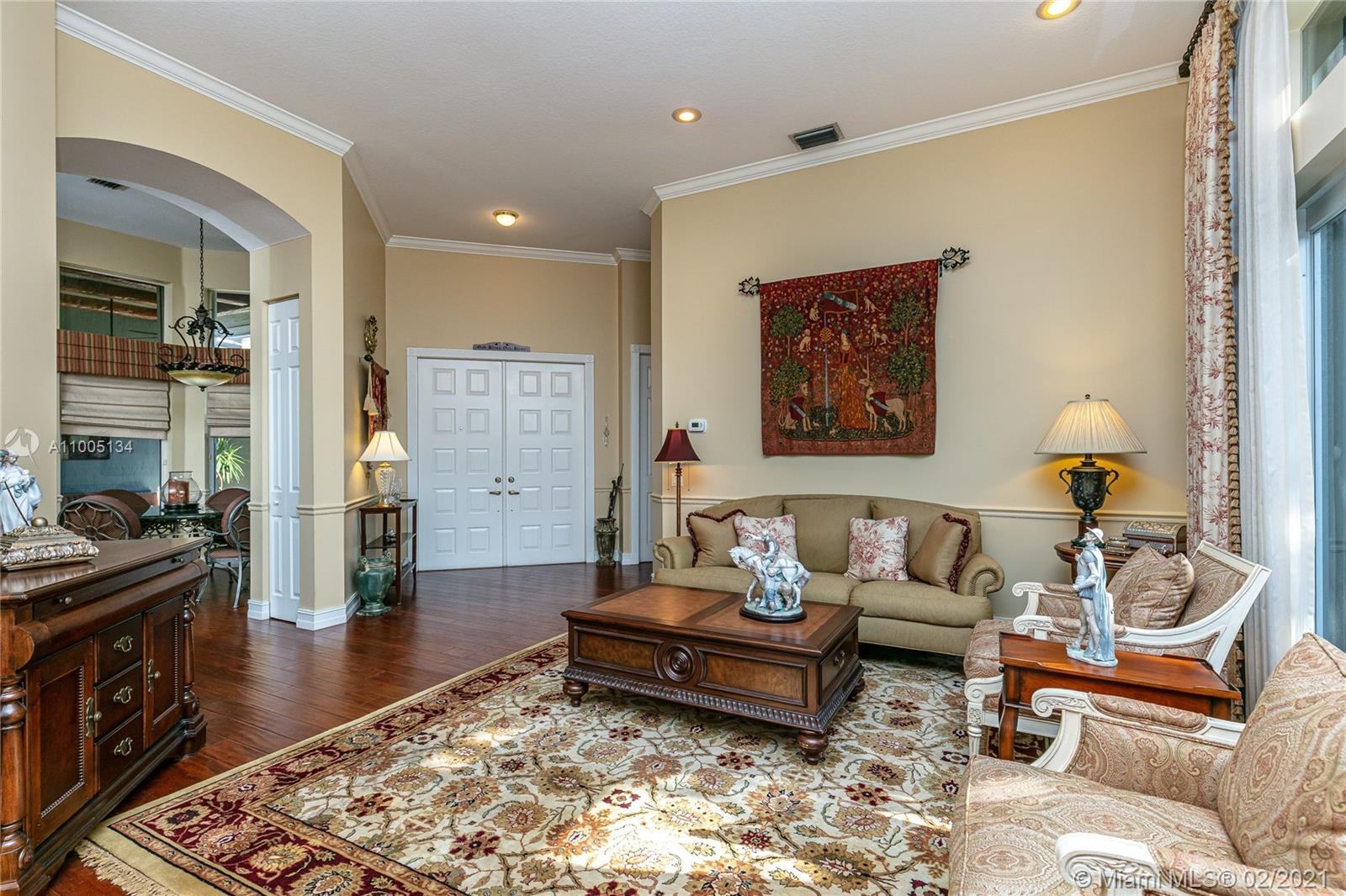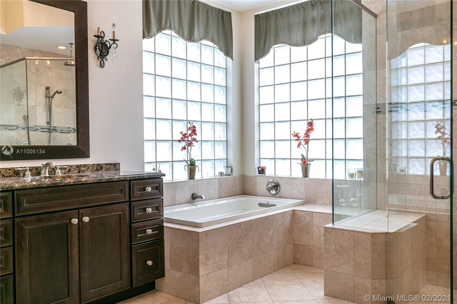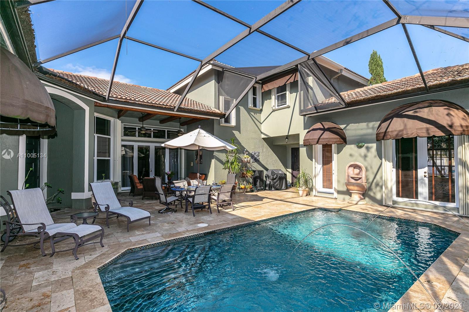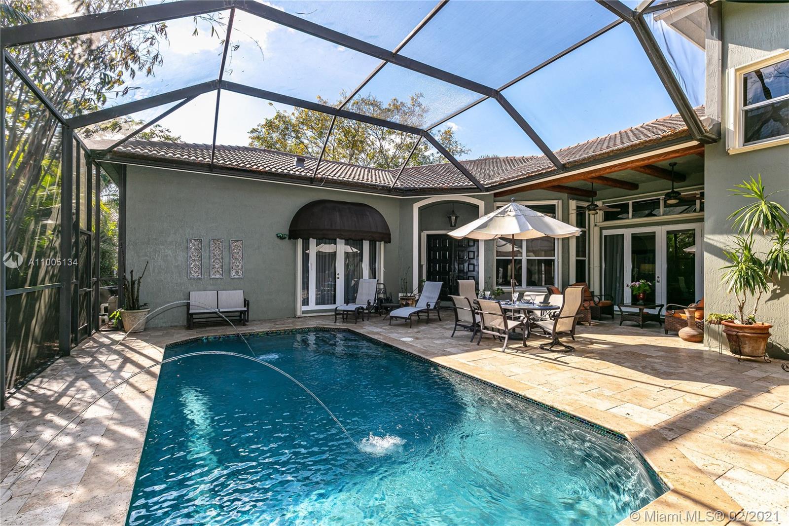 A RARE OPPORTUNITY TO OWN THIS SPECTACULAR HIGHLY UPGRADED 5 BDR, 3.5 BA+LOFT, 3CG COURTYARD HOUSE W/ RESORT STYLE TROPICAL SCREENED IN POOL AREA. DIAMOND BRITE POOL W/FIBRO OPTIC JETS. LUSH LANDSCAPING. GUEST HOUSE HAS A SEPARATE ENTRANCE. FIRST FLOOR MASTER BEDROOM SUITE W/SITTING AREA OVERLOOKING THE POOL. LUXURY MASTER BATHROOM WITH ALL NEW BEAUTIFUL FINISHES, NEW JACUZZI TUB. 2 WALK IN CLOSETS. ALL BATHROOMS ARE REMODELED W/EXOTIC GRANITE COUNTERTOPS, WOOD CABINETS, BEAUTIFUL MARBLE & TILE. SOLID WOOD FLOORS IN THE MAIN AREAS. OPEN GOURMET KITCHEN W/NEWER SS APPLIANCES, GRANITE COUNTERTOPS AND MATCHING BREAKFAST TABLE. CUSTOM LIGHTNING & WINDOW TREATMENTS. LARGE LAUNDRY ROOM W/NEWER WASHER/DRYER. ACCORDIAN SHUTTERS. IMPACT SLIDING DOORS. CUSTOM WINDOW AWNINGS. GATED COMMUNITY. LOW HOA