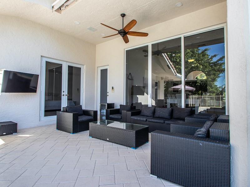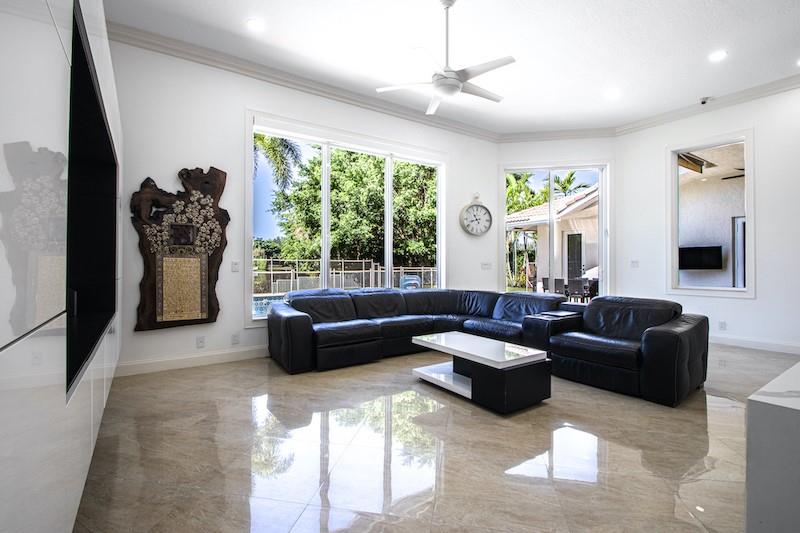 Come see this spacious, open floor plan one-story home. Recently renovated, The water view home has an oversized lot and outdoor area. Upgrades include but are not limited to impact windows throughout the home - camera surveillance system - surround sound system- electric awnings - and pool heater. The exclusive,sought-after Hawks Landing gated community offers fully staffed guardhouse entry, clubhouse, fitness center, spa, pool, tennis courts & more. Schedule your showing for this one-of-a-kind home.