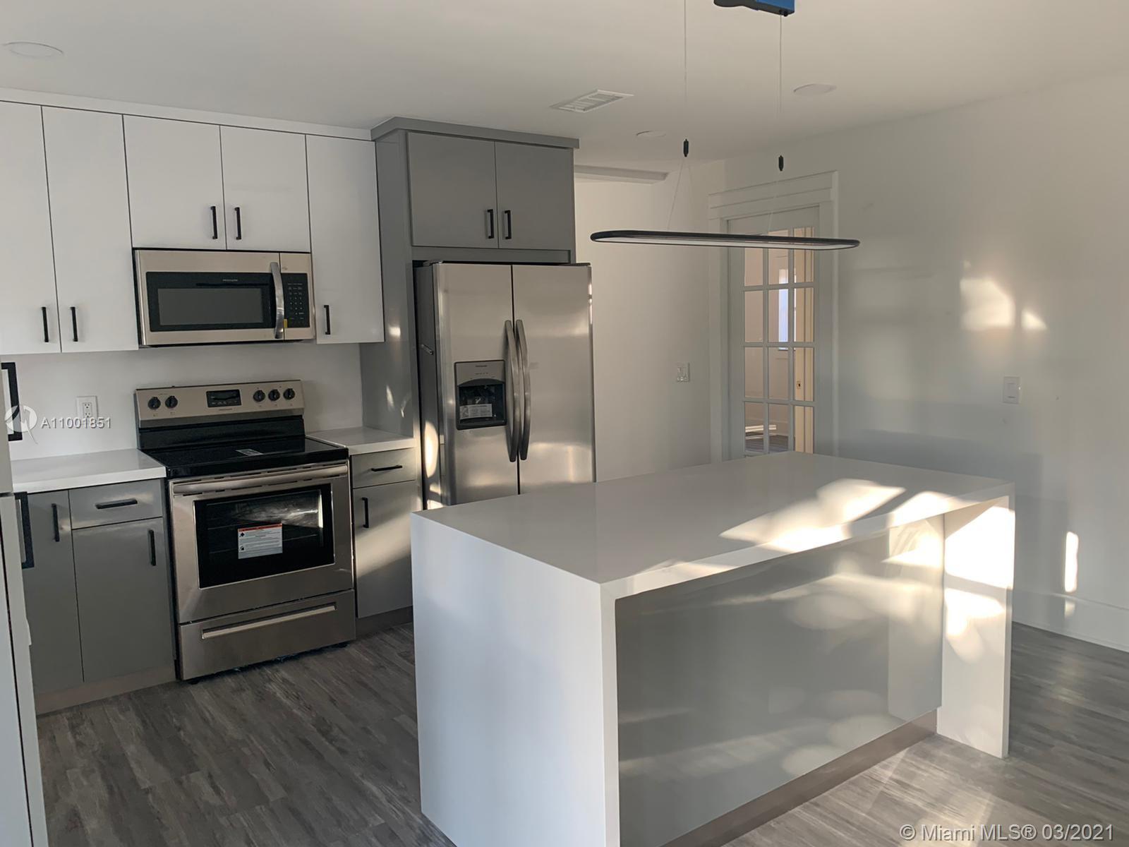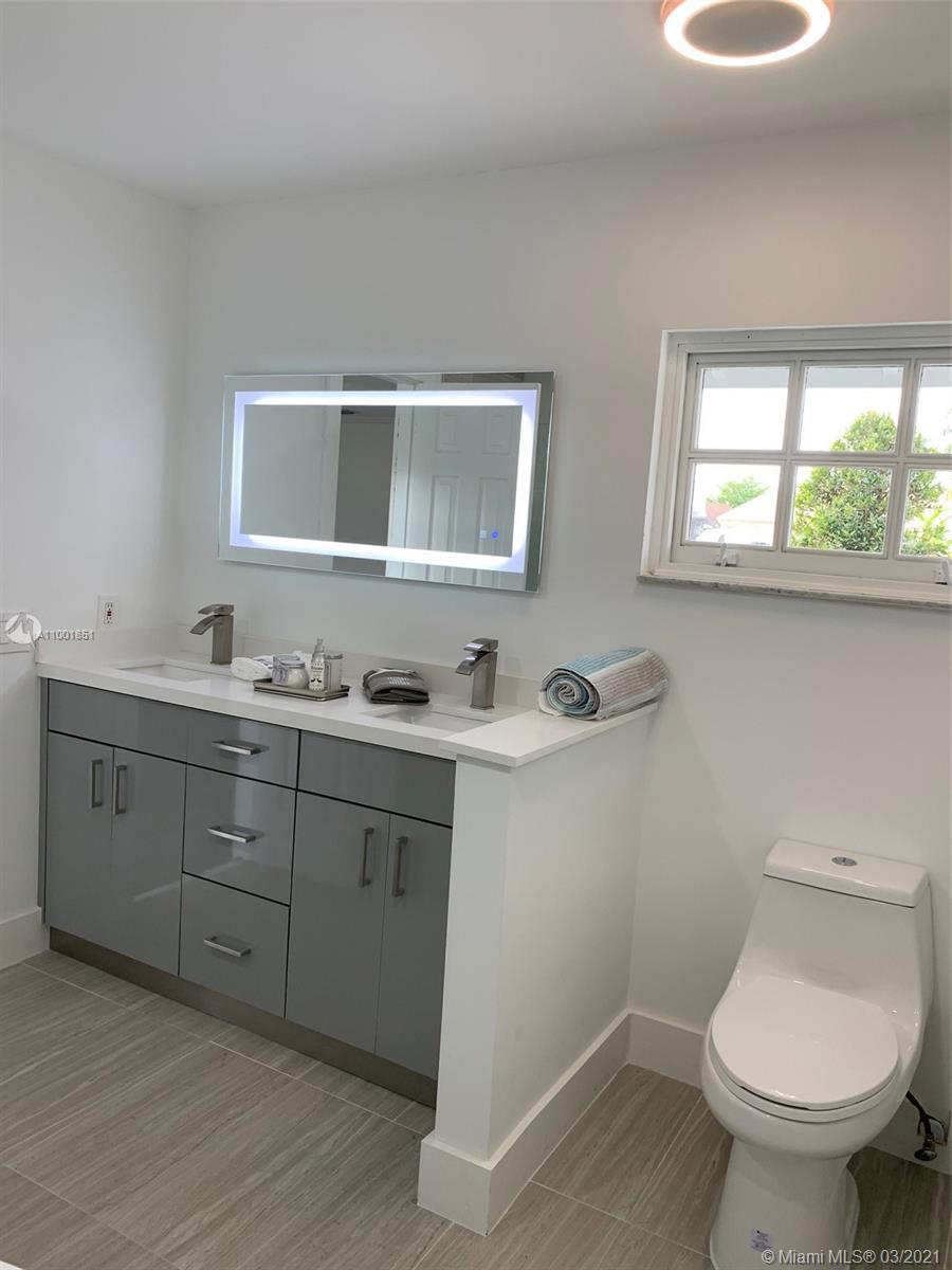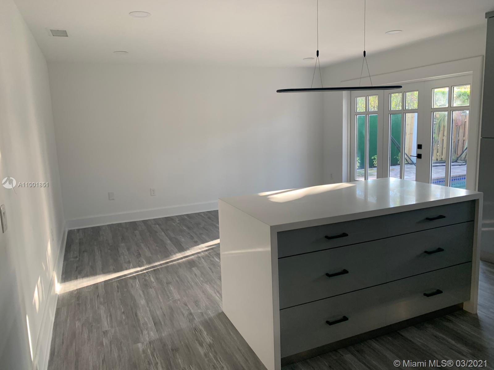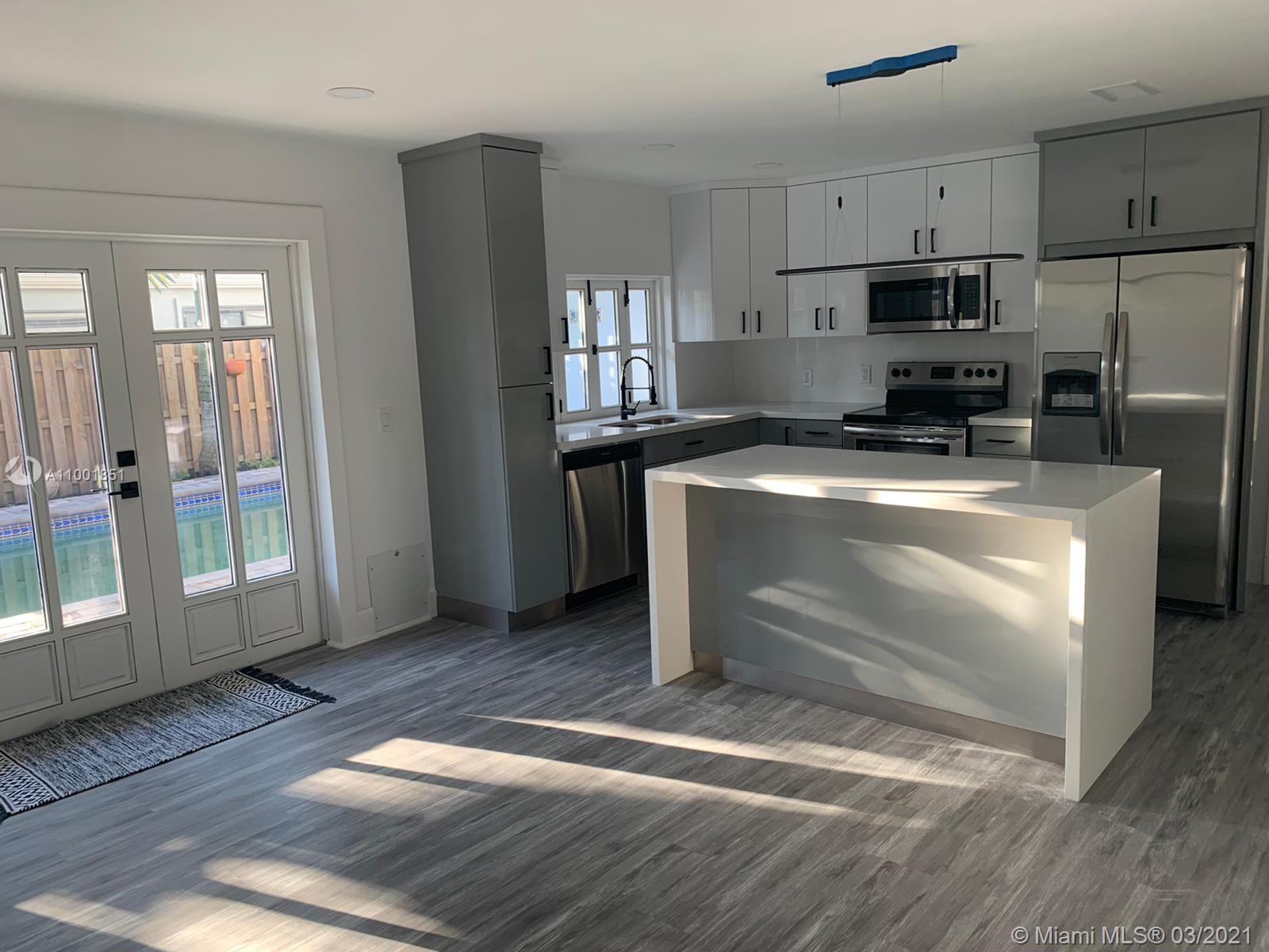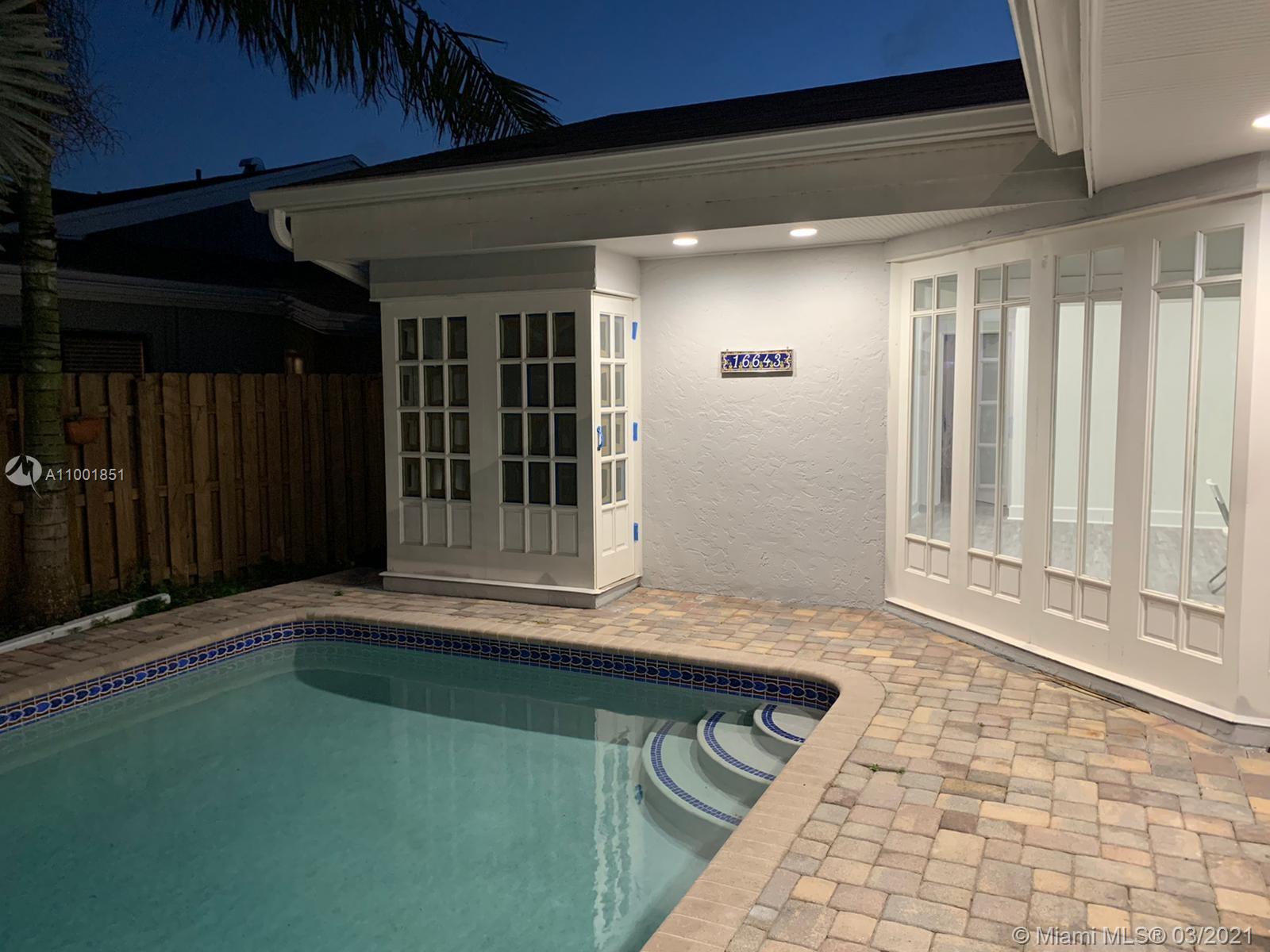 Tastefully recently renovated one-story oversize home 5 bed + 3.5 bath + Pool (garage converted). The house features a luxury waterproof laminated floor & tall baseboard trim throughout. Triple split floor plan, formal living and dining room. Huge brand-new kitchen with elegant cabinetry and waterfall island. All new SS appliance. White quartz counter tops everywhere as well as backsplash. Renovated modern bathrooms with speaker LED lighted mirrors. Fully costumed laundry room plenty of cabinetry and counter. All new LED lighting accessories. Master bath includes 2 vanities, shower & soaking tub. Fully fenced backyard with pavers patio and extra storage room. Freshly painted Exterior & interior areas. Roof done 2016. A/C approx. 4 years old. Showings starting on 03/05/21.