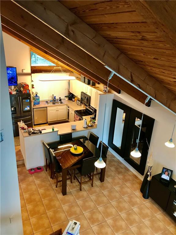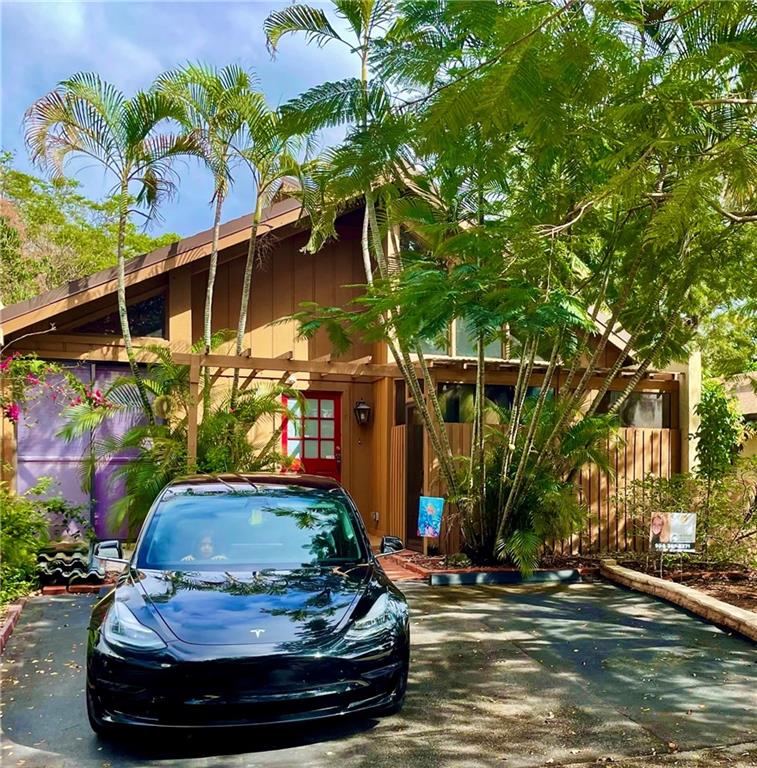 HIGHLY SOUGHT! Largest two-story loft. A Smart home. Master bedroom w/walk-in closet w/built-in cabinets on 2nd floor, custom designer drapes, & adjoining loft/studio overlooks the ground floor & kitchen. Updated bright kitchen, cabinets & hi-end appliances, bathrooms elegantly appointed.The kitchen, office/library, living/dining room, bath room, bedroom an entertainment/exercise room all on lower level. Designer details & upgrades. Vaulted exposed wood beams & tongue-in-groove ceiling. Fenced-in yard w/private pool also a handy shed. Newer AC, hot water heater, alarm, roof replaced, outdoor patio and partial storm panels for windows. Great location close to I95 & Turnpike. Near shopping, community pool, tennis court, handball court, picnic area, dog park. Maintenance is ONLY $78 a month!!